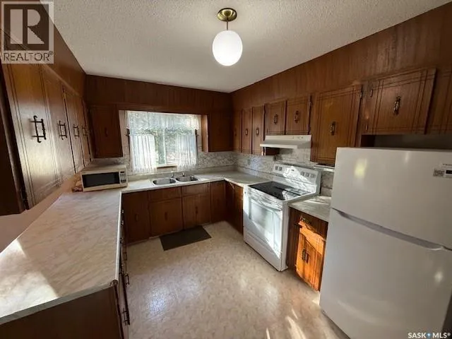 Welcome to this charming and affordable 1,120 sq. ft. bungalow, nestled in a quiet, family-friendly community. Built in 1978 and thoughtfully maintained, this home offers comfort, functionality, and space to grow. The main level features three inviting bedrooms, a bright 4-piece bathroom, a U-shaped kitchen with ample cupboards, a dedicated dining area, and a spacious living room highlighted by a cozy fireplace and a beautiful bay window. The fully finished basement expands your living space with a large rec room complete with a dry bar, a convenient office, a 3-piece bathroom, and a generous utility/laundry room with a cold storage area. The attached single-car garage, added in 1983, provides additional storage with built-in cabinets, while the wheelchair-accessible layout ensures comfort and accessibility for all. Enjoy the peaceful backyard with two garden sheds, a garden area perfect for growing your own produce, and back lane access for added convenience. All appliances are included; move in and make this wonderful home your own in a welcoming community that offers great value and small-town charm. (id:27476)