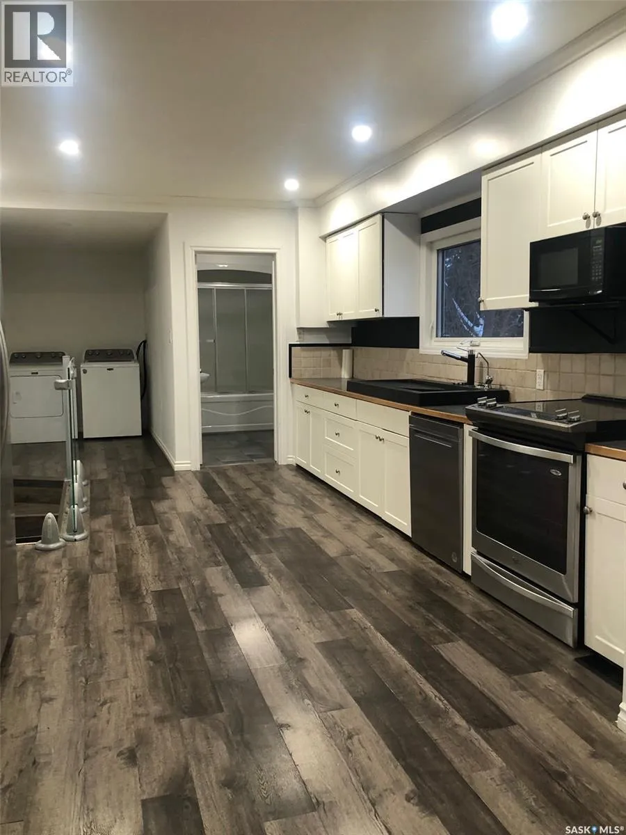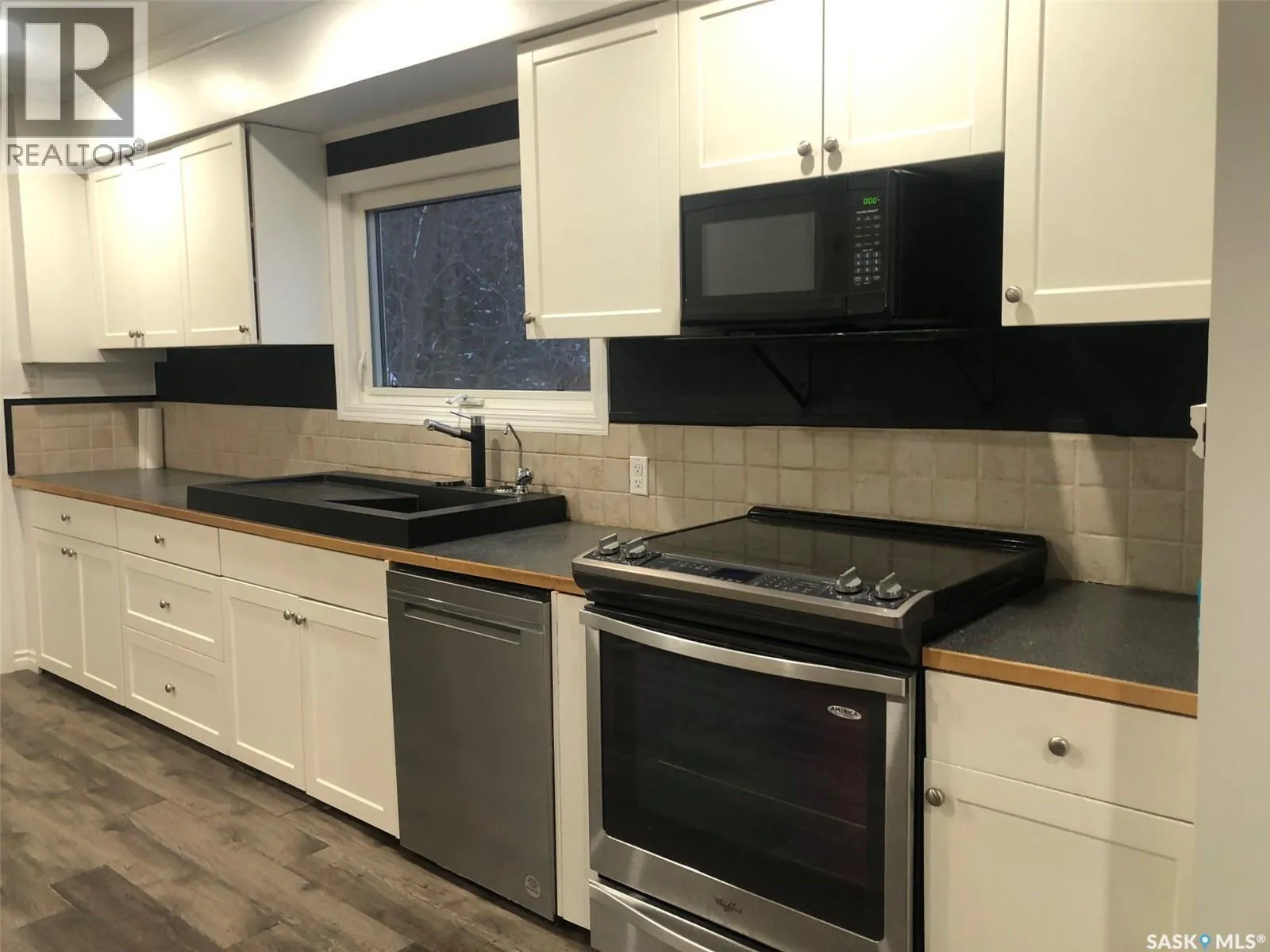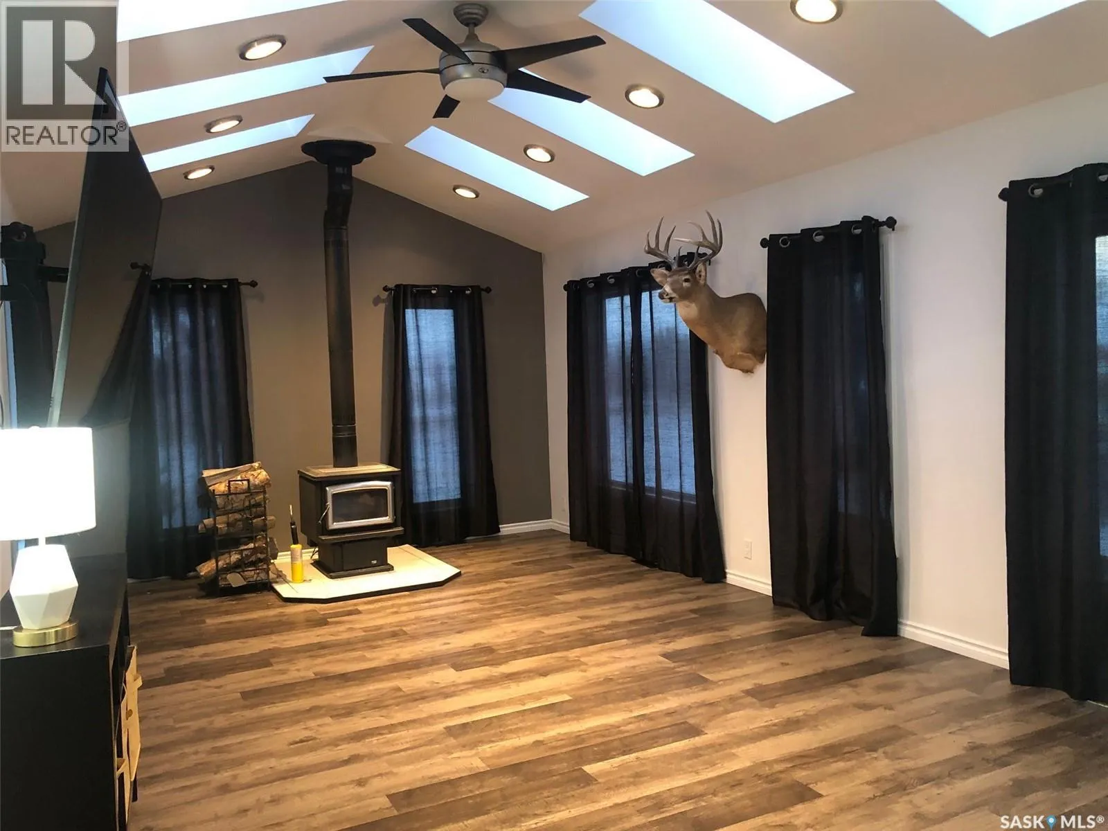 PARADISE AWAITS YOU IN THE TOWN OF NORQUAY SK!... Welcome to 224 Service Road. Upon arrival you are greeted to an exquisite design and unique parklike setting capturing beauty with modern day design. Do you dream about having a luxurious back yard with a state of the art patio area? This beautiful oasis is sure to tick off all the boxes boasting professional landscaping and meticulous design throughout! The spectacular views can be viewed along the edge of town on an elevated massive lot measuring 75' x 234'. Upon entry quality meets your eye... a spectacular wrap around deck, glass railing with a custom patio/firepit finished in quality stone, barkman products and tall majestic spruce trees that overlook the lush greenery of such a dreamy escape!. The backyard expands way back to an orchard of cherry, grape, saskatoon and apple trees as well as the detached 20 x 30 insulated garage with automatic garage door opener. Inside enjoy the fresh and brightly lit interior that features vaulted ceilings and skylights while cozying up to the wood burning fireplace. A large foyer upon entry connects to the open concept design leading to a state of the art functional kitchen featuring stainless steel appliances, built in dishwasher and Blanco Modex M60 granite sink. The main floor has been extensively updated with new paint, flooring, triple pane windows, kitchen cabinets, electrical, lighting, patio doors, and added insulation. Featured is main floor laundry and a second laundry facility in the basement. With 2 bedrooms, 2 baths and 1,156 square feet of living space this would make a great starter or retirement home. Norquay provides all basic amenities; k-12 school, gas station, grocery & hardware store, restaurants, and much more! One must view to appreciate, call for more information or to schedule a viewing. Taxes:$2,200/year. Heating; Natural gas/forced air; RO town water and town sewer. (id:27476)