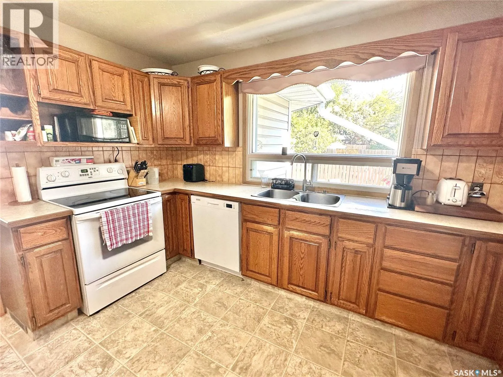 Lot 1-3 Blokc 60 Plan C1887 This beautiful home is situated on an oversized lot in sought-after West North Battleford, close to downtown and walking distance to schools. Upon entry, you will notice the bright and functional layout. The living room has a large bay window allowing for plenty of natural light and it has unobstructed views of the southern skyline. The kitchen and dining room have an open floor plan, and off the dining room youâll find patio doors that lead to the large deck with wheelchair accessibility. On the main floor are three generous sized bedrooms, a full bathroom, as well as the convenience of main floor laundry. The home has been modified to allow for wheelchair access with the main floor bathroom having an oversized door and a ramp added from the backyard up to the side deck. There is a mudroom off of the back entry with plenty of space for a freezer and all your families extras. The downstairs was recently renovated, and has new vinyl flooring, paint and baseboards. Thereâs a three-quarter bath and den as well as an updated furnace and water heater. The furnace room has additional space for storage and vinyl flooring throughout . The mature and beautifully landscaped backyard features a pond, a patio area which is nicely shaded, a rubber paved patio space off the back entry and so much room for the kids to play. The insulated garage is 24' x 24' with new garage doors and openers. There is also plenty of extra space to the east side of the driveway, which could make for a great garden area or additional parking. Additional updates include a new water softener and shingles were replaced in 2017. The property offers 163' of frontage with panoramic views of the river valley, stunning sunsets, and a great views of the fireworks! Call for your showing today, you donât want miss out on this home. (id:27476)