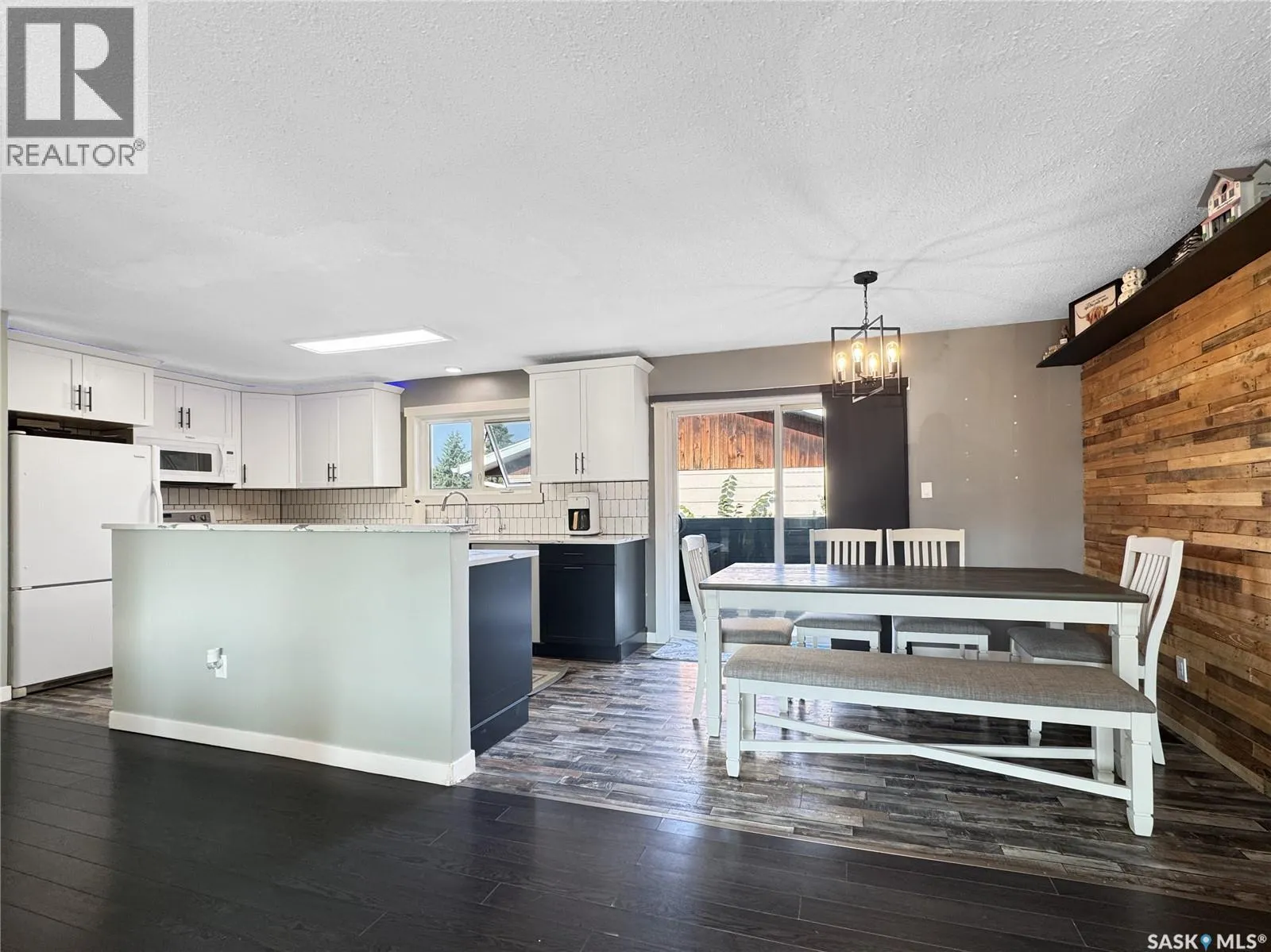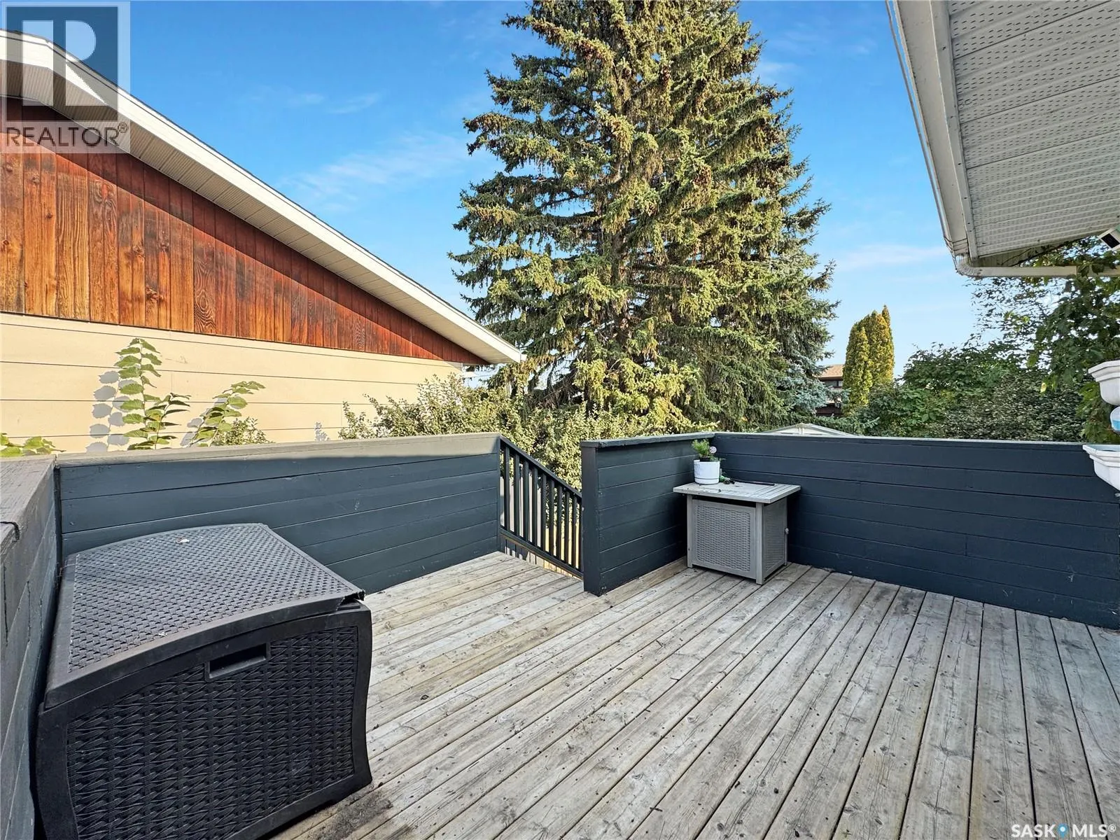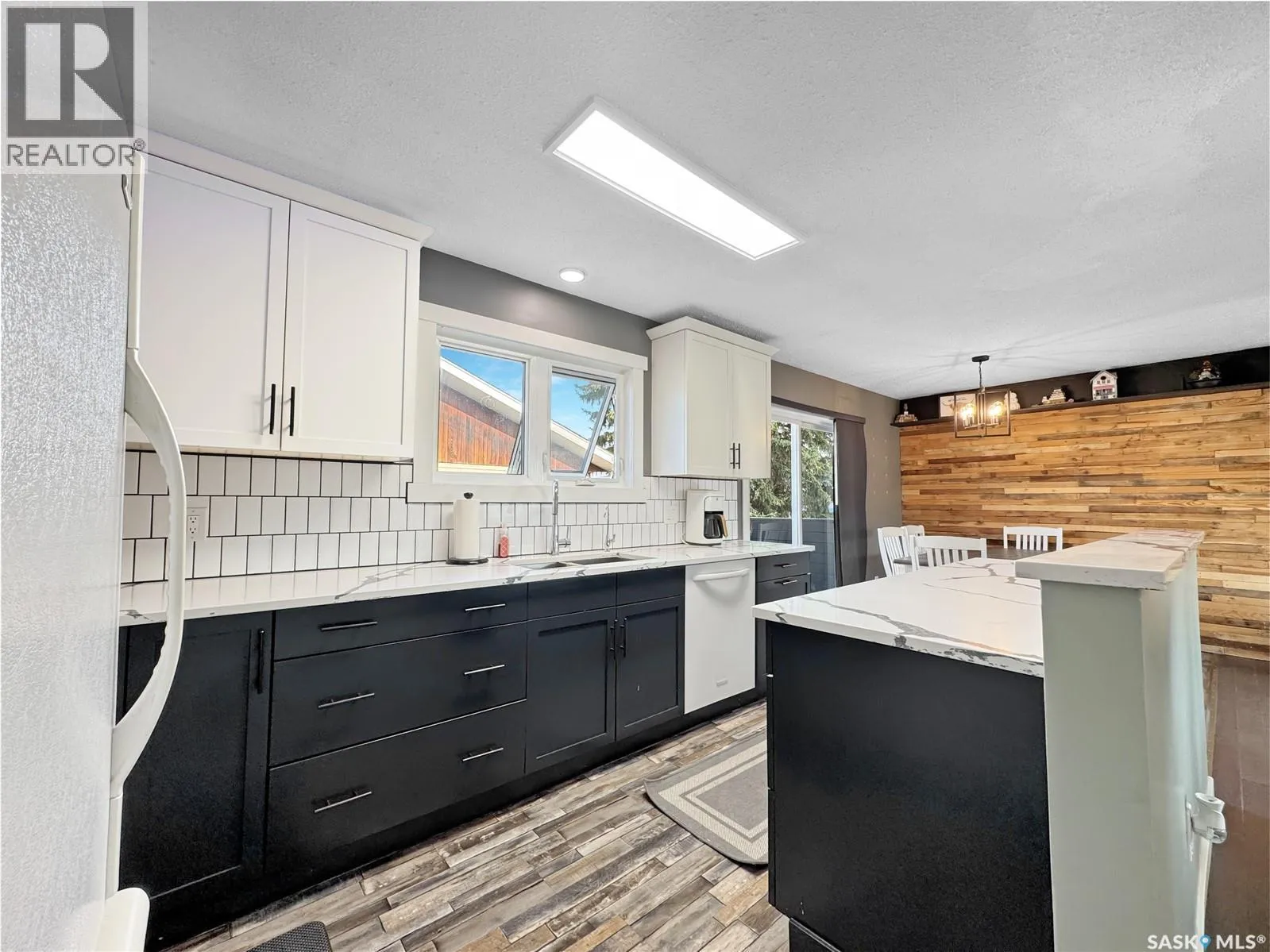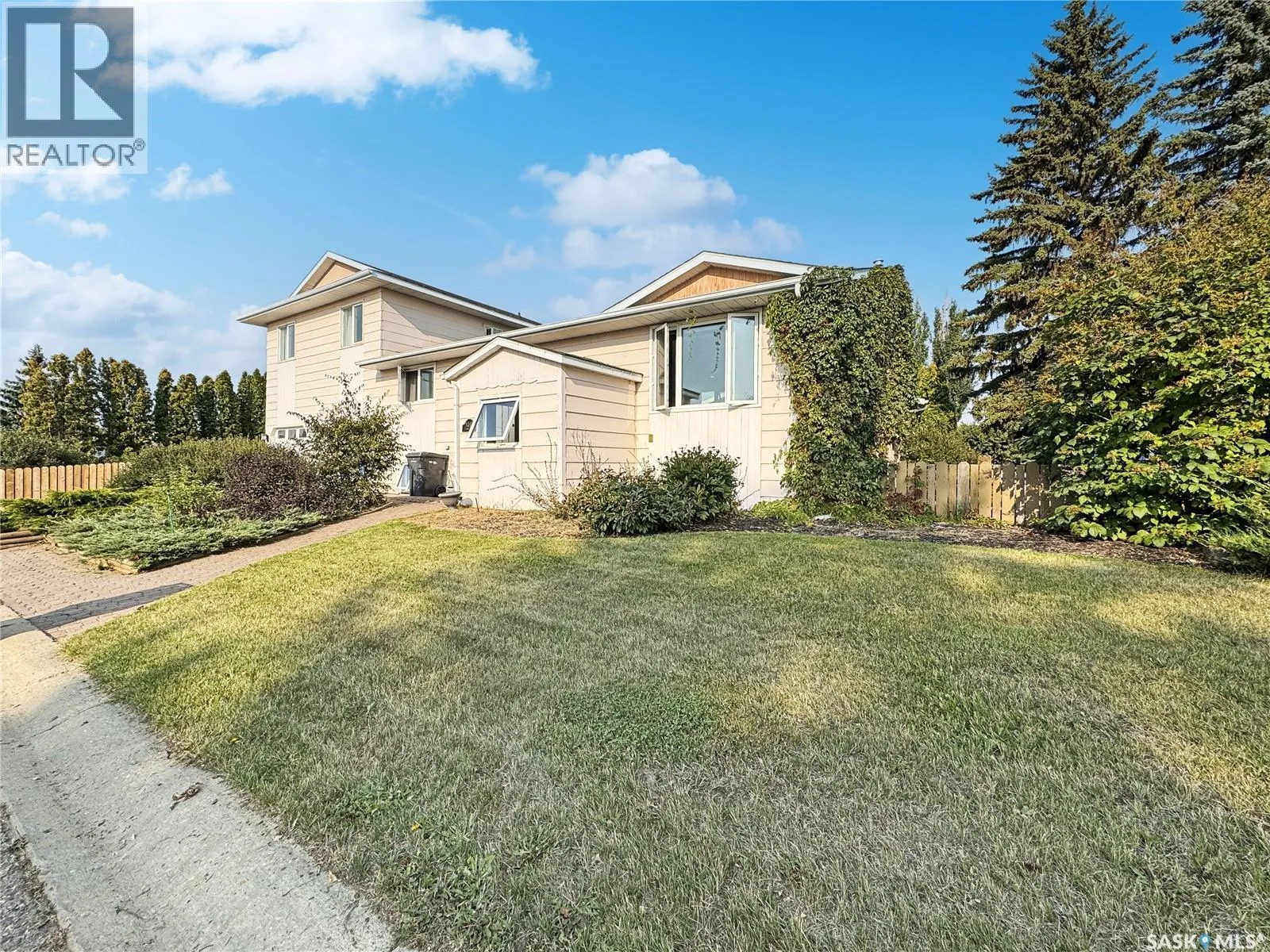 Welcome to this large family home perfectly situated on a desirable corner lot in the beautiful Centennial neighborhood. Originally built in 1979, with additional living quarters added in 1991, this home offers plenty of room for your family to grow and enjoy. Step inside to a welcoming foyer with heated floors that lead into the open-concept kitchen, dining, and living room. The remodeled kitchen was completed in 2021 featuring quartz countertops and tiled backsplash. With the kitchen open to the dining area, your space is fully extended with beautiful garden doors to your private back deck, perfect for entertaining. Main floor offers a unique flex space for potentially an office, playroom, or even a cozy reading nook. Main floor laundry with an abundance of storage space adds everyday convenience. This floor is completed with a fully remodelled main bathroom and a bedroom. Upstairs, the huge master bedroom is a true retreat, greeted with french doors, a walk-in closet and a three-piece en suite with a skylight flooding the space with natural light. Two additional spacious bedrooms complete this level. The basement is designed for family fun with two large recreation/living areas and a handy kitchenetteâgreat for hosting gatherings. Direct access to the double attached garage (insulated and drywalled) adds practicality. More recent updates include the lower-level shingles (2024), windows lower side of home and front door (2021) fresh paint and some flooring. This location canât be beat! Just steps across the road, youâll find green space and a playground, plus Centennial Park is a short walk away offering a track, natural playground, splash pad, skate park, and outdoor rink. If youâre looking for a spacious, well-kept family home in a sought-after neighborhoodâthis is the one! Call today for your own exclusive tour! (id:27476)