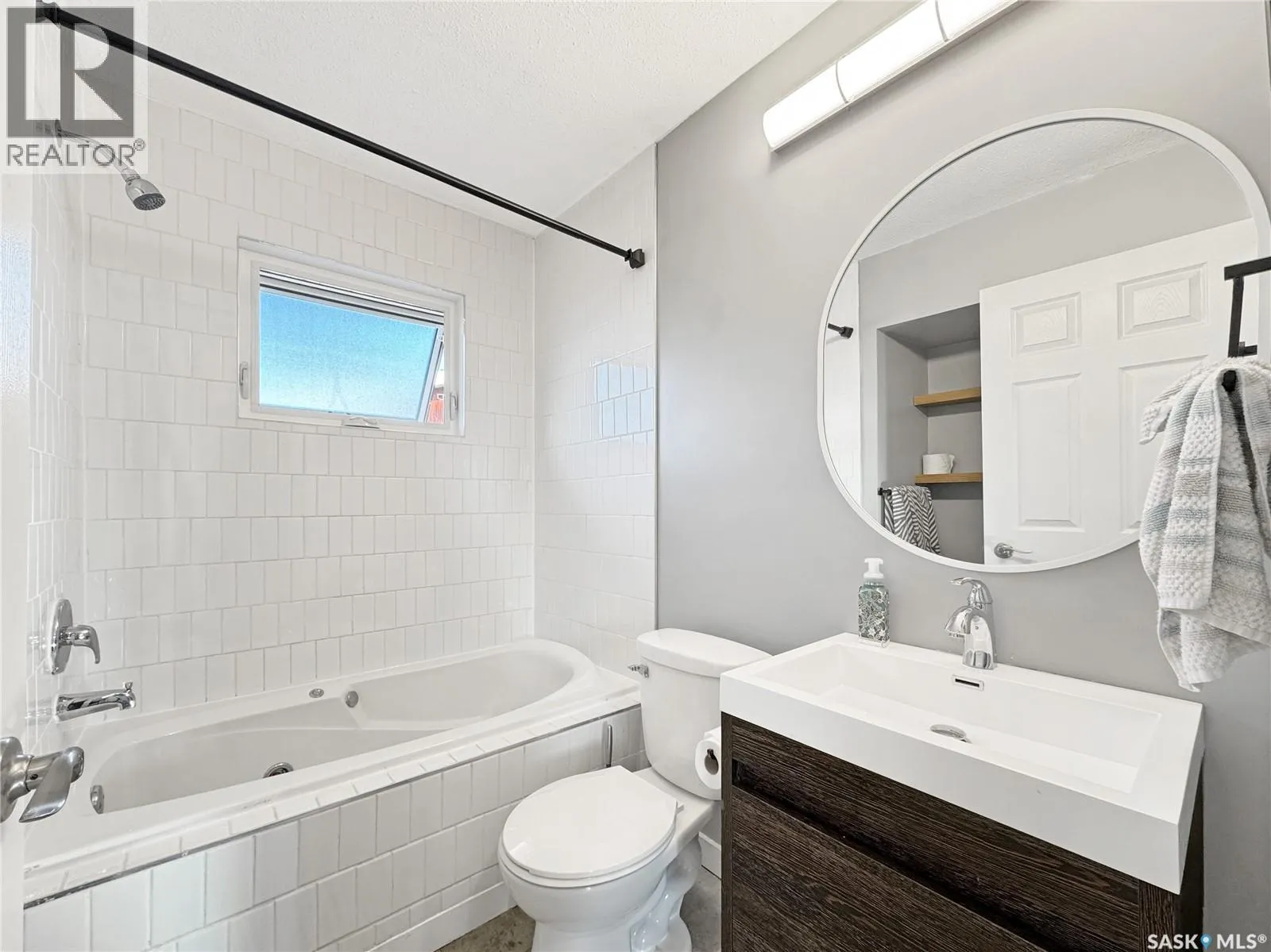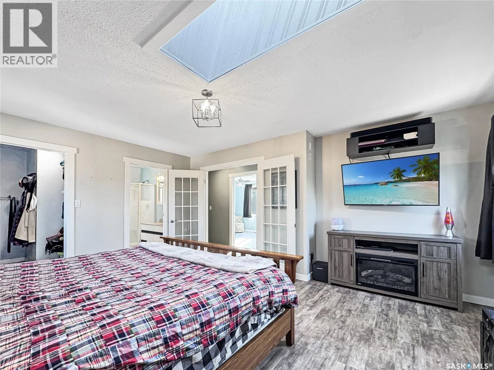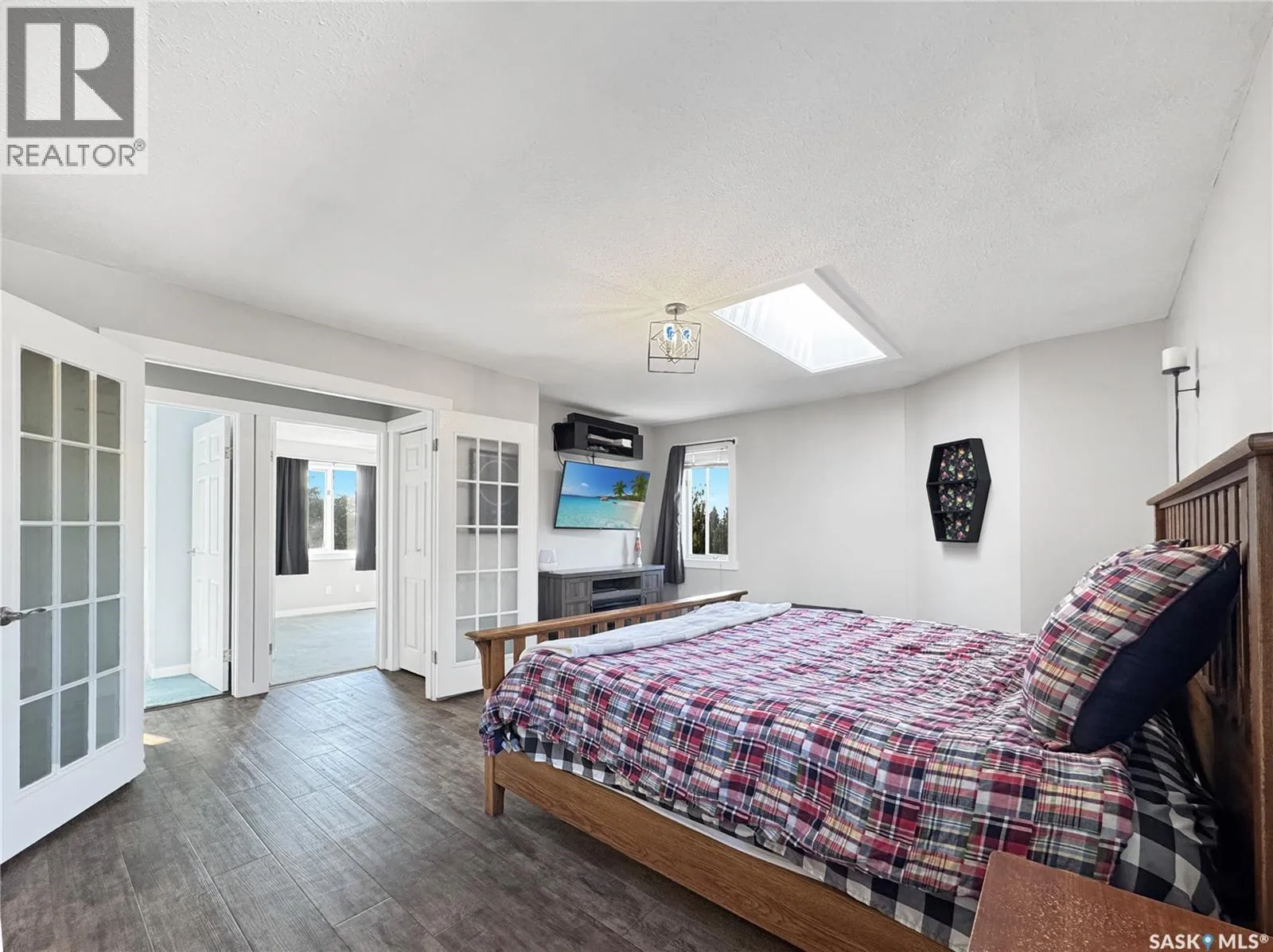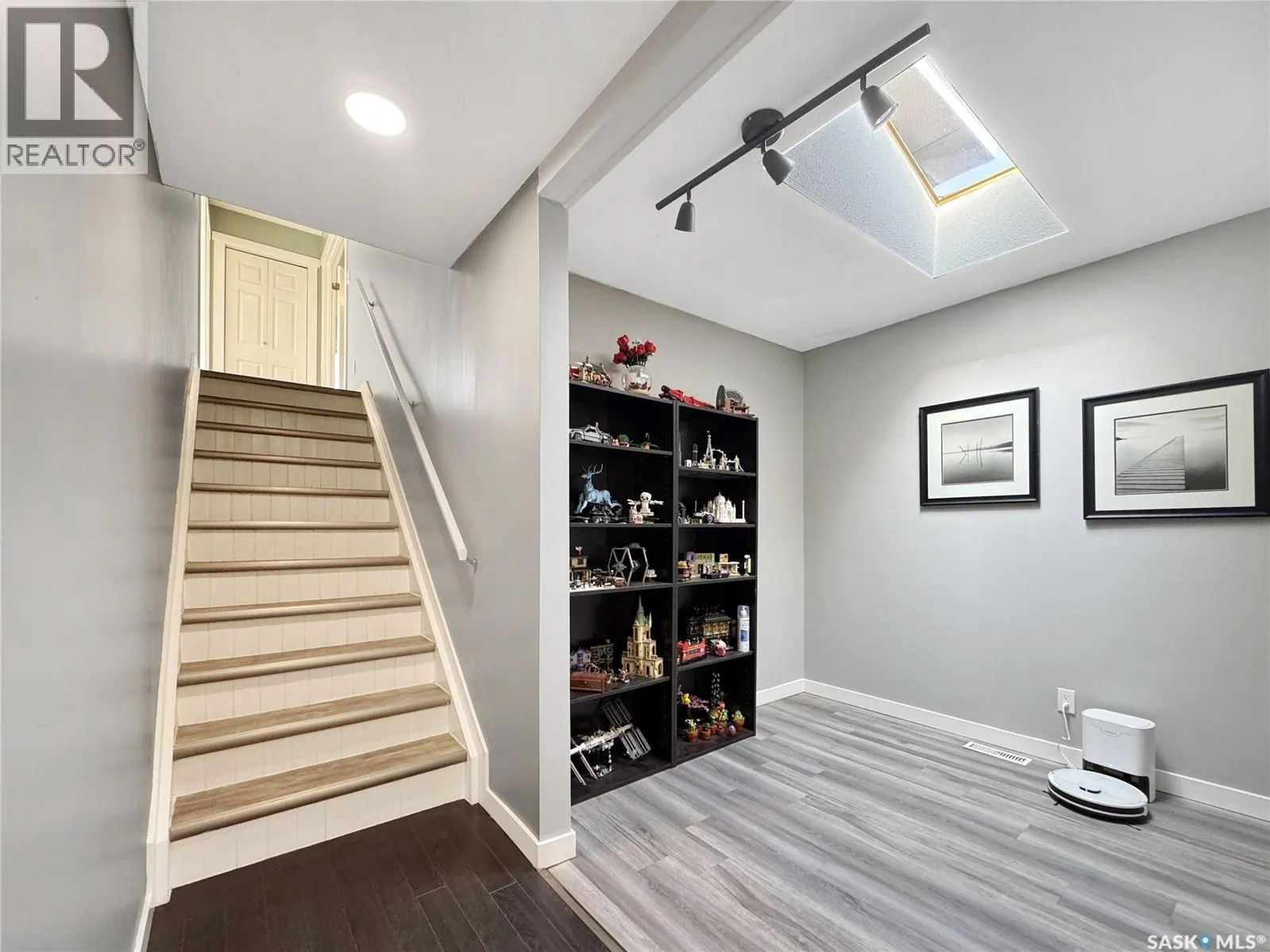 Welcome to this large family home perfectly situated on a desirable corner lot in the beautiful Centennial neighborhood. Originally built in 1979, with additional living quarters added in 1991, this home offers plenty of room for your family to grow and enjoy. Step inside to a welcoming foyer with heated floors that lead into the open-concept kitchen, dining, and living room. The remodeled kitchen was completed in 2021 featuring quartz countertops and tiled backsplash. With the kitchen open to the dining area, your space is fully extended with beautiful garden doors to your private back deck, perfect for entertaining. Main floor offers a unique flex space for potentially an office, playroom, or even a cozy reading nook. Main floor laundry with an abundance of storage space adds everyday convenience. This floor is completed with a fully remodelled main bathroom and a bedroom. Upstairs, the huge master bedroom is a true retreat, greeted with french doors, a walk-in closet and a three-piece en suite with a skylight flooding the space with natural light. Two additional spacious bedrooms complete this level. The basement is designed for family fun with two large recreation/living areas and a handy kitchenetteâgreat for hosting gatherings. Direct access to the double attached garage (insulated and drywalled) adds practicality. More recent updates include the lower-level shingles (2024), windows lower side of home and front door (2021) fresh paint and some flooring. This location canât be beat! Just steps across the road, youâll find green space and a playground, plus Centennial Park is a short walk away offering a track, natural playground, splash pad, skate park, and outdoor rink. If youâre looking for a spacious, well-kept family home in a sought-after neighborhoodâthis is the one! Call today for your own exclusive tour! (id:27476)