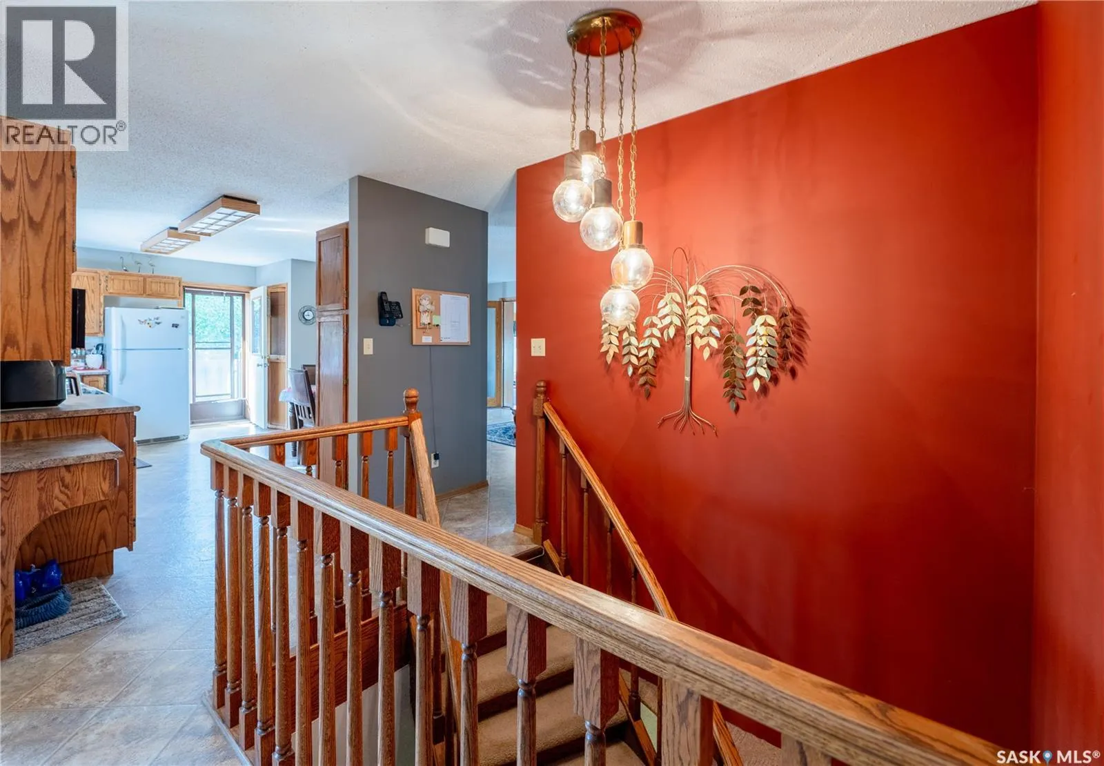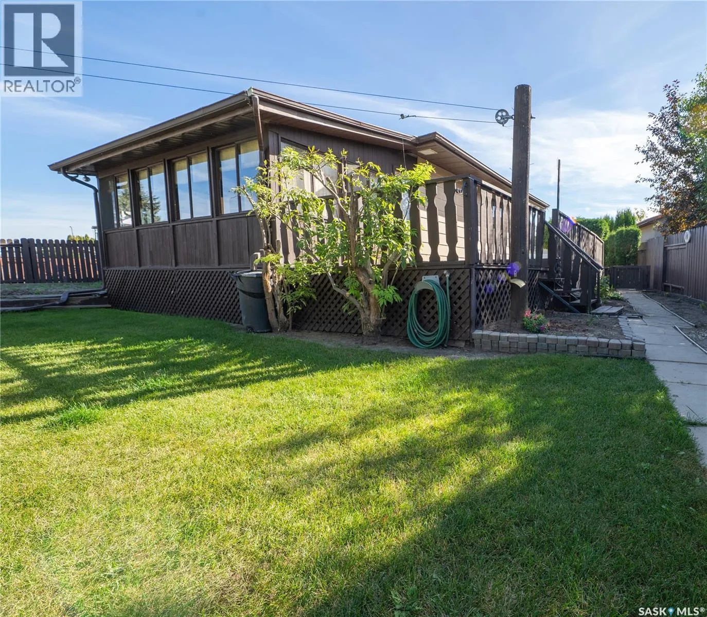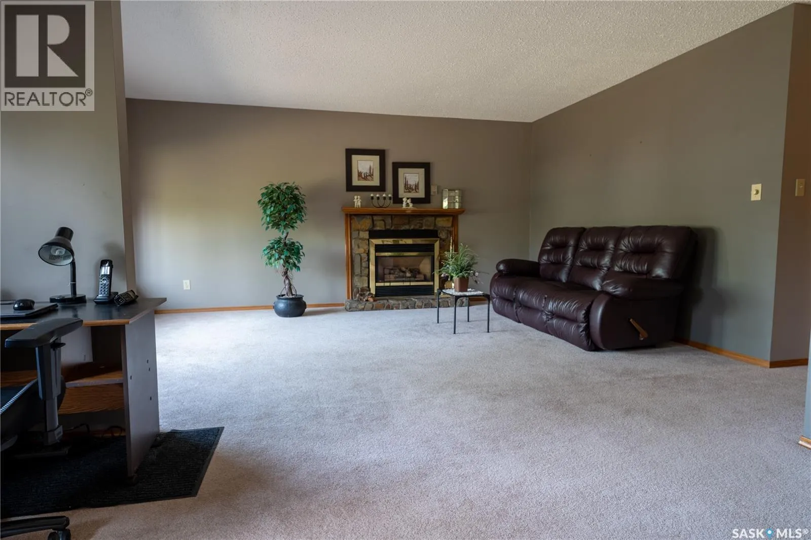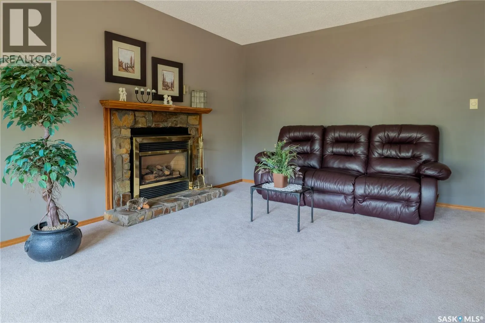 Welcome to this spacious family home in a sought out location in North Battleford. Located on a quiet crescent with ample space, this family home is a stunner. As you walk up the driveway you will be in awe of the well kept and well maintained private yard. The front yard features shrubs, flowers and trees, including a stone patio, making this the perfect spot to sit and relax. Attached to the house is a double garage, large enough to park your vehicles and store additional items. As you enter the home, you are greeted by a large entry way with enough space for all your coats and shoes. The main floor features a large kitchen, extra large dining/sitting room. Off the dining room is a large sunroom for extra space to enjoy those family gatherings. In the extra large living room sits a natural gas fireplace to add to the ambiance. There are 3 bedrooms, with a 4 piece bath and main floor laundry. Off the primary bedroom features a 3 piece ensuite. Head downstairs down the spiral staircase, leads you directly into the living room and recreation space. You will find an additional large bedroom, a 4 piece bath and an office. Furnace has been updated in recent years, this adds to peace of mind for years to come. Family homes in this area do not come around very often. Call your realtor today to book your showing! (id:27476)