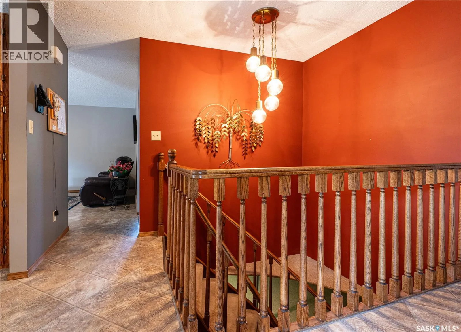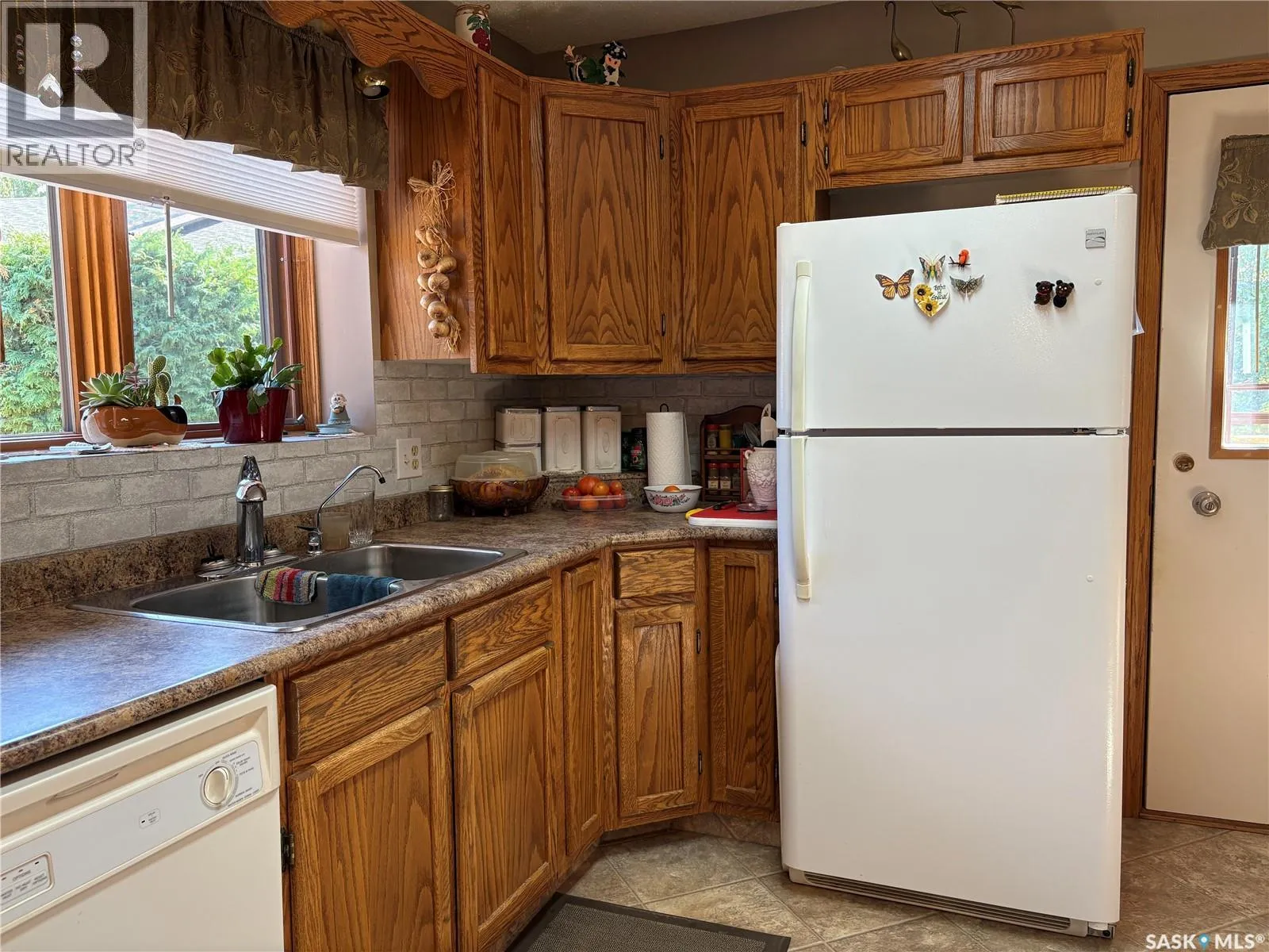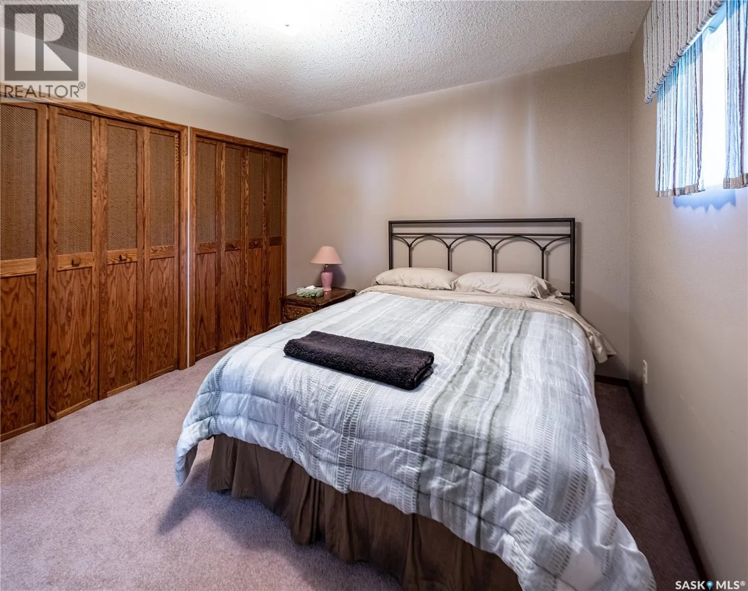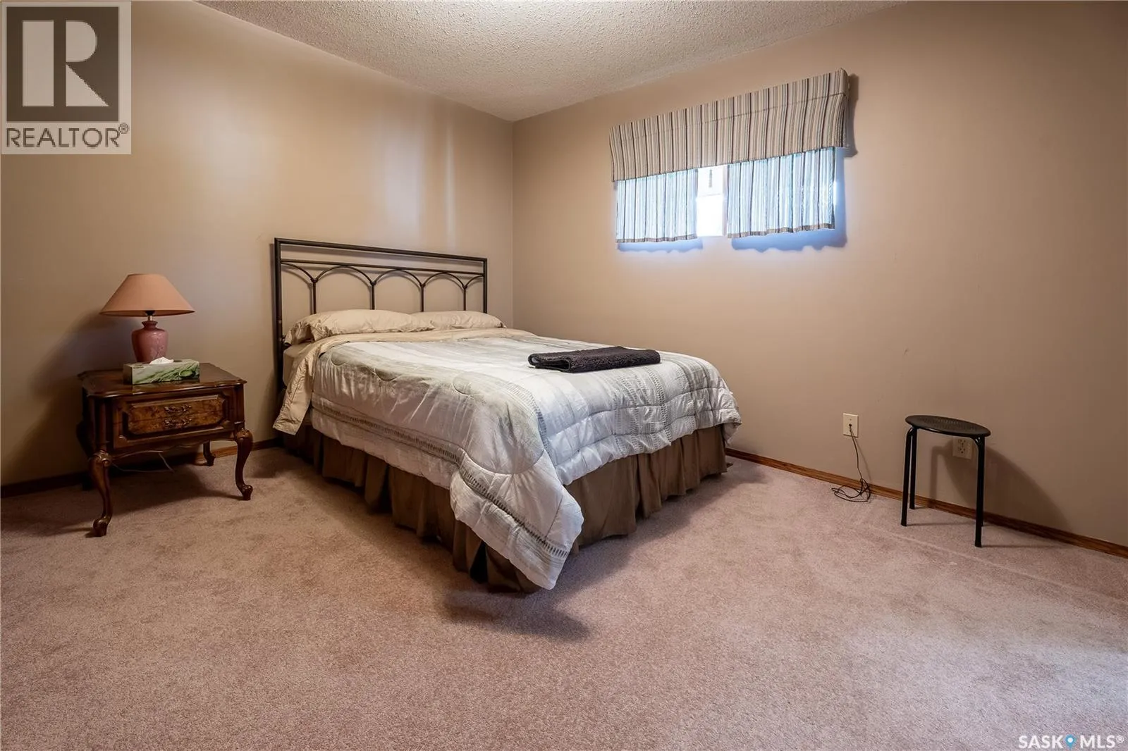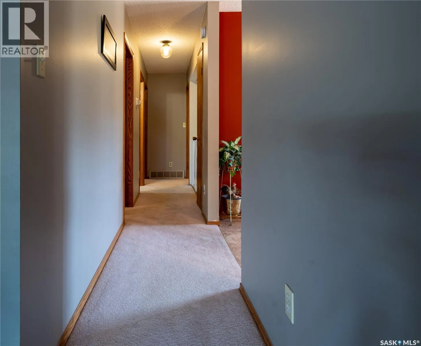 Welcome to this spacious family home in a sought out location in North Battleford. Located on a quiet crescent with ample space, this family home is a stunner. As you walk up the driveway you will be in awe of the well kept and well maintained private yard. The front yard features shrubs, flowers and trees, including a stone patio, making this the perfect spot to sit and relax. Attached to the house is a double garage, large enough to park your vehicles and store additional items. As you enter the home, you are greeted by a large entry way with enough space for all your coats and shoes. The main floor features a large kitchen, extra large dining/sitting room. Off the dining room is a large sunroom for extra space to enjoy those family gatherings. In the extra large living room sits a natural gas fireplace to add to the ambiance. There are 3 bedrooms, with a 4 piece bath and main floor laundry. Off the primary bedroom features a 3 piece ensuite. Head downstairs down the spiral staircase, leads you directly into the living room and recreation space. You will find an additional large bedroom, a 4 piece bath and an office. Furnace has been updated in recent years, this adds to peace of mind for years to come. Family homes in this area do not come around very often. Call your realtor today to book your showing! (id:27476)