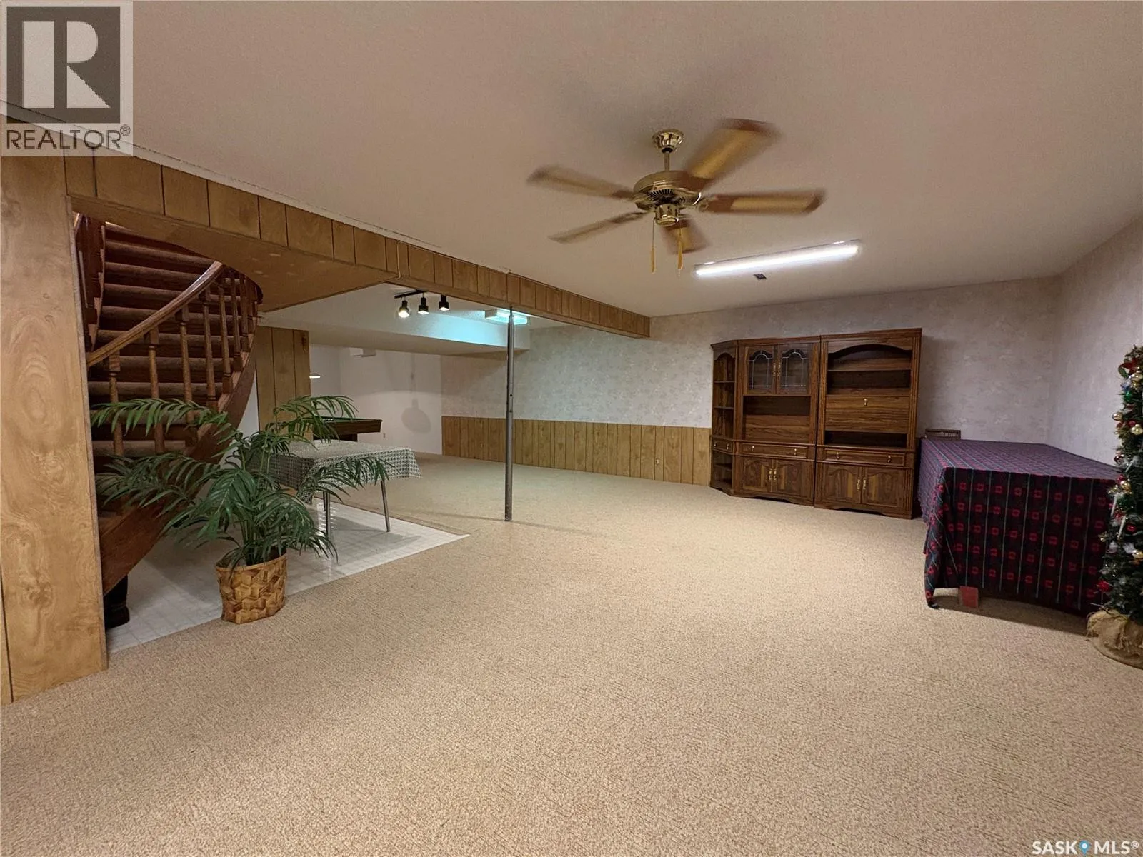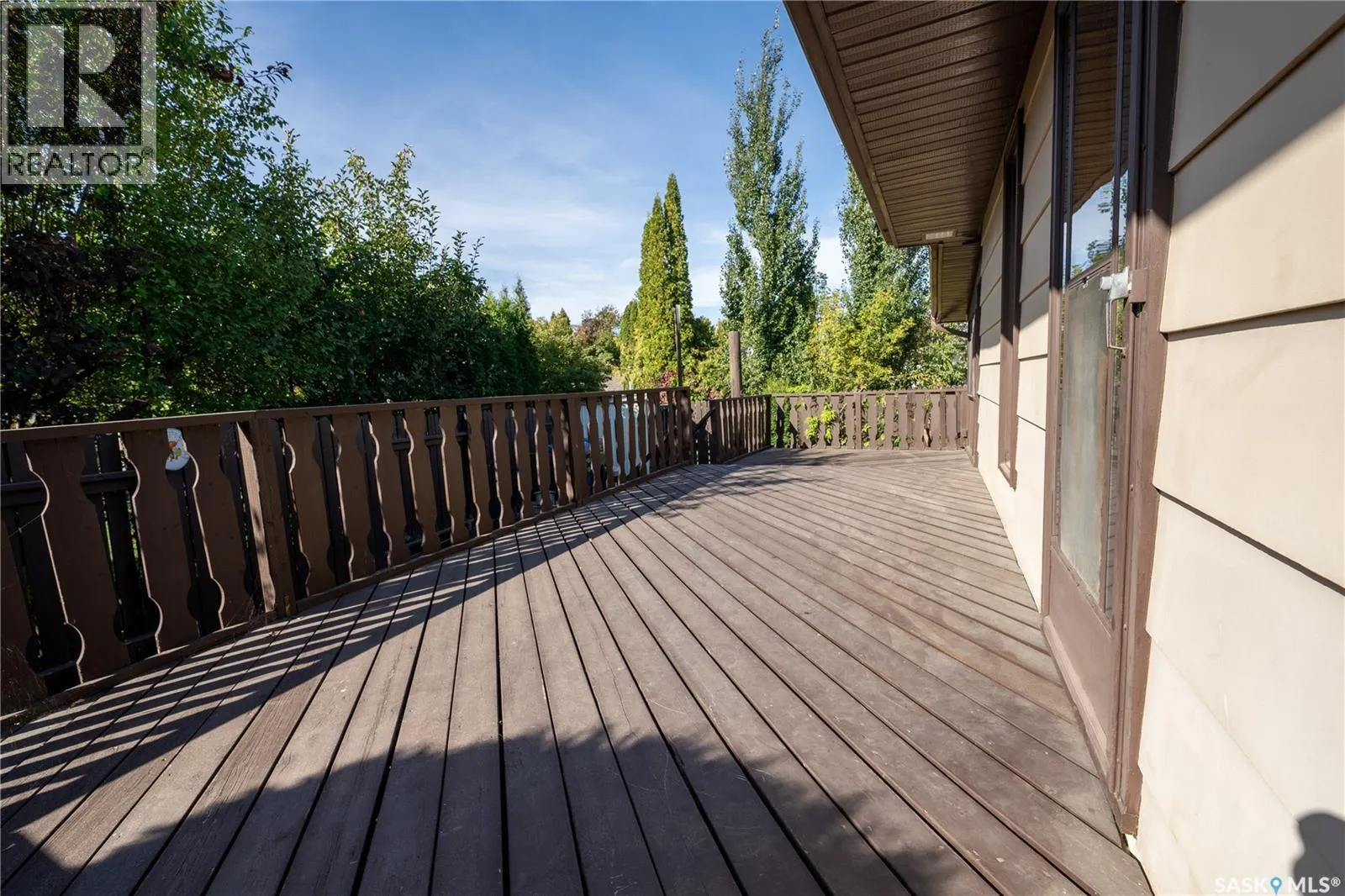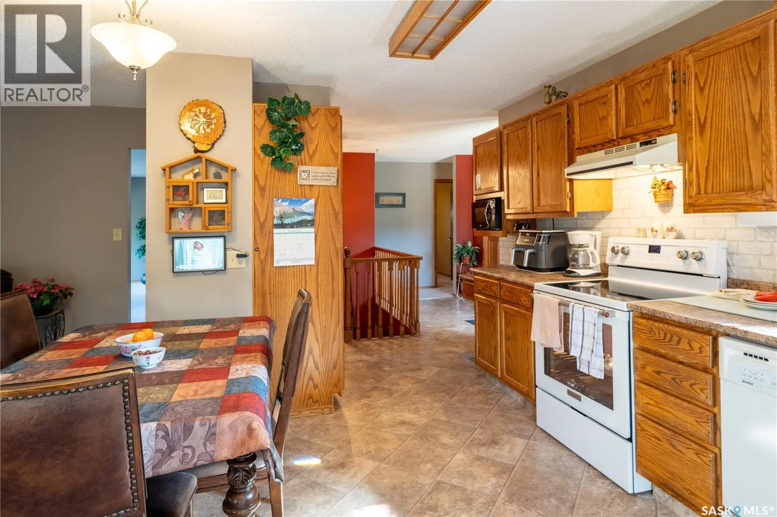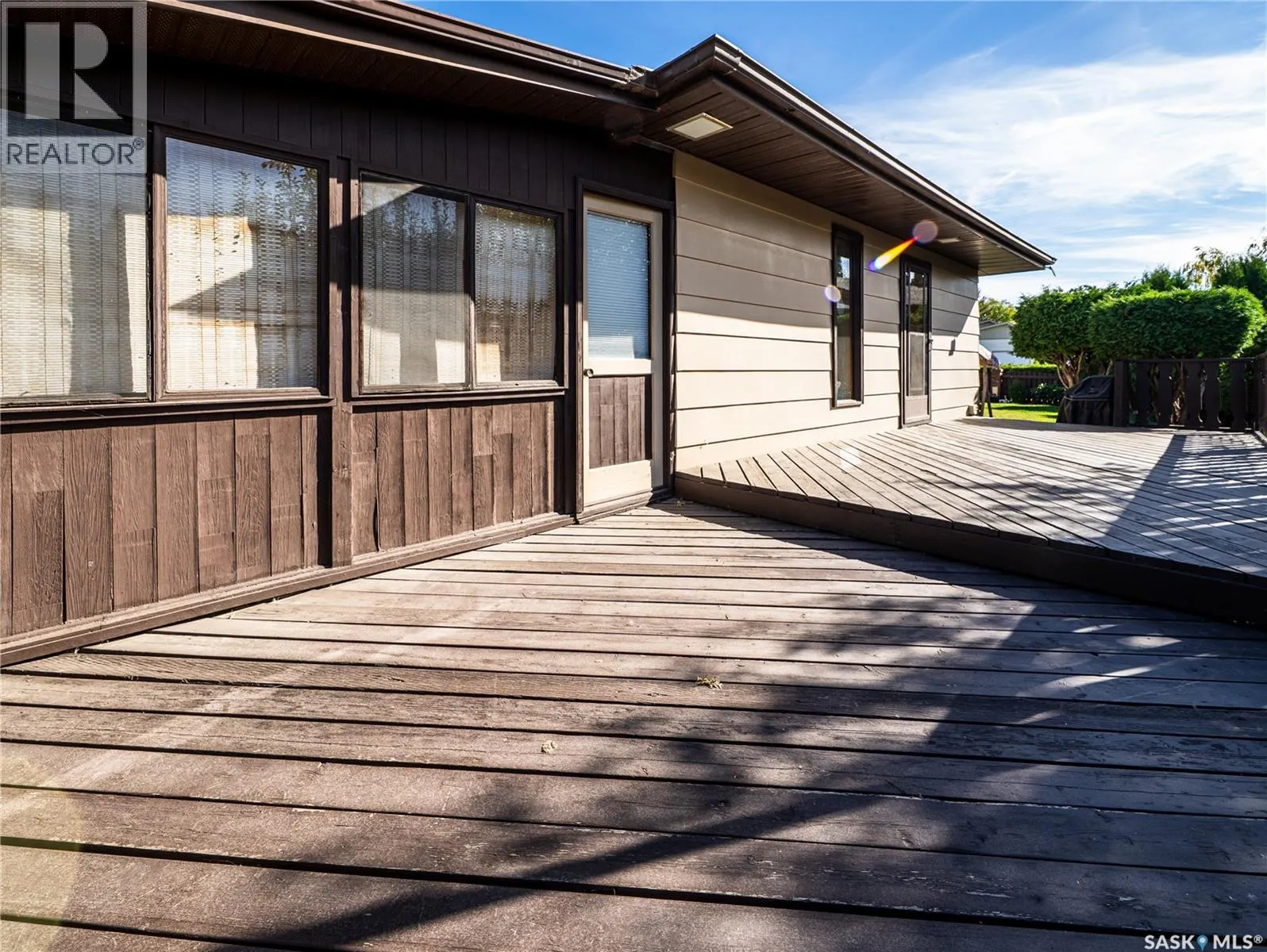 Welcome to this spacious family home in a sought out location in North Battleford. Located on a quiet crescent with ample space, this family home is a stunner. As you walk up the driveway you will be in awe of the well kept and well maintained private yard. The front yard features shrubs, flowers and trees, including a stone patio, making this the perfect spot to sit and relax. Attached to the house is a double garage, large enough to park your vehicles and store additional items. As you enter the home, you are greeted by a large entry way with enough space for all your coats and shoes. The main floor features a large kitchen, extra large dining/sitting room. Off the dining room is a large sunroom for extra space to enjoy those family gatherings. In the extra large living room sits a natural gas fireplace to add to the ambiance. There are 3 bedrooms, with a 4 piece bath and main floor laundry. Off the primary bedroom features a 3 piece ensuite. Head downstairs down the spiral staircase, leads you directly into the living room and recreation space. You will find an additional large bedroom, a 4 piece bath and an office. Furnace has been updated in recent years, this adds to peace of mind for years to come. Family homes in this area do not come around very often. Call your realtor today to book your showing! (id:27476)