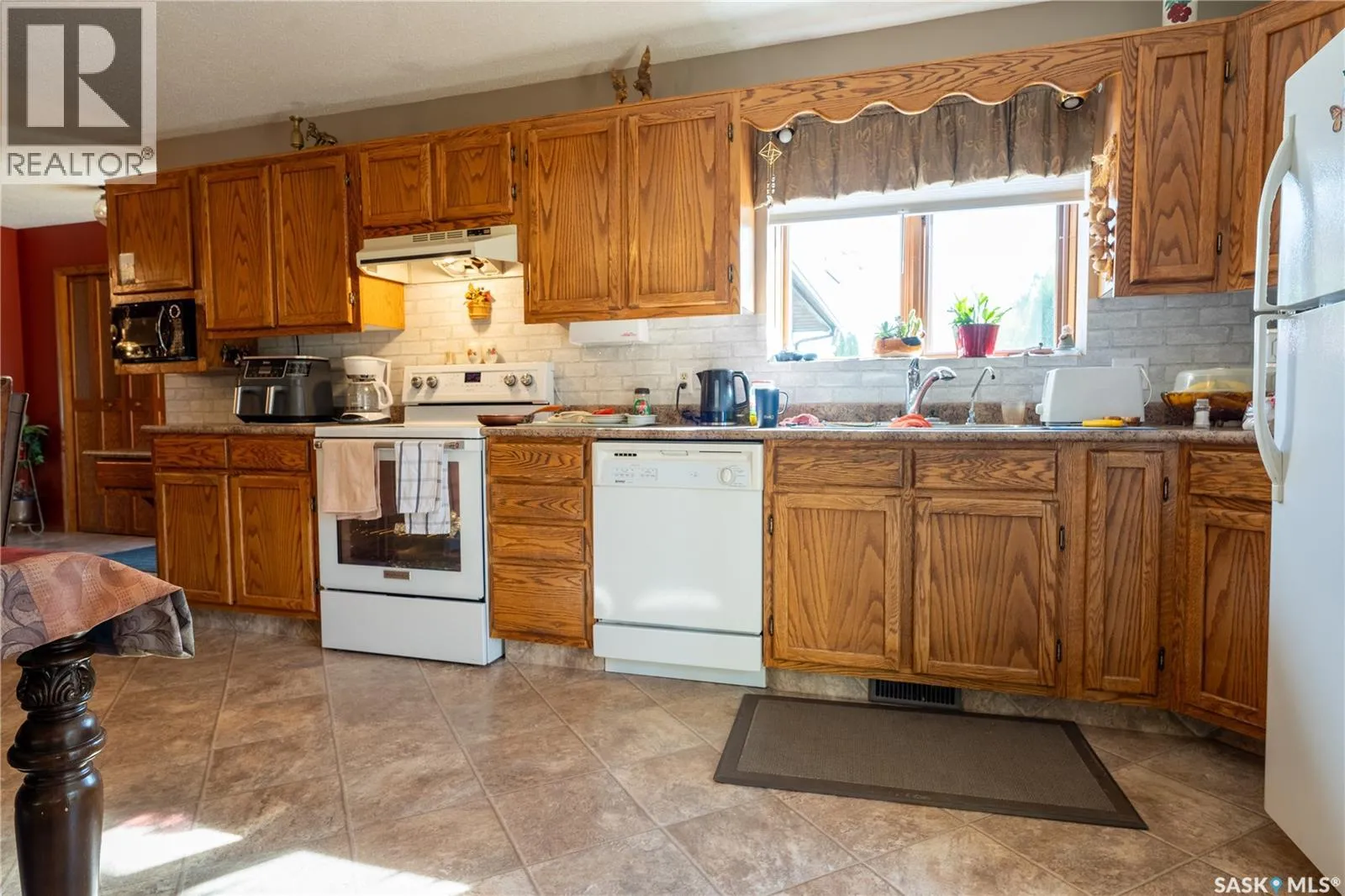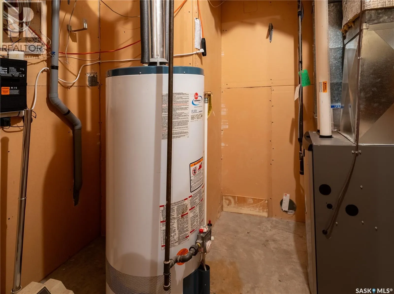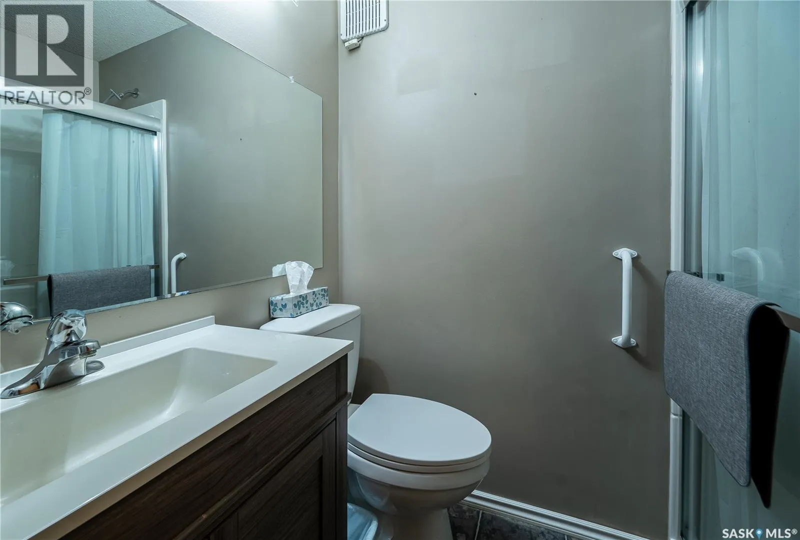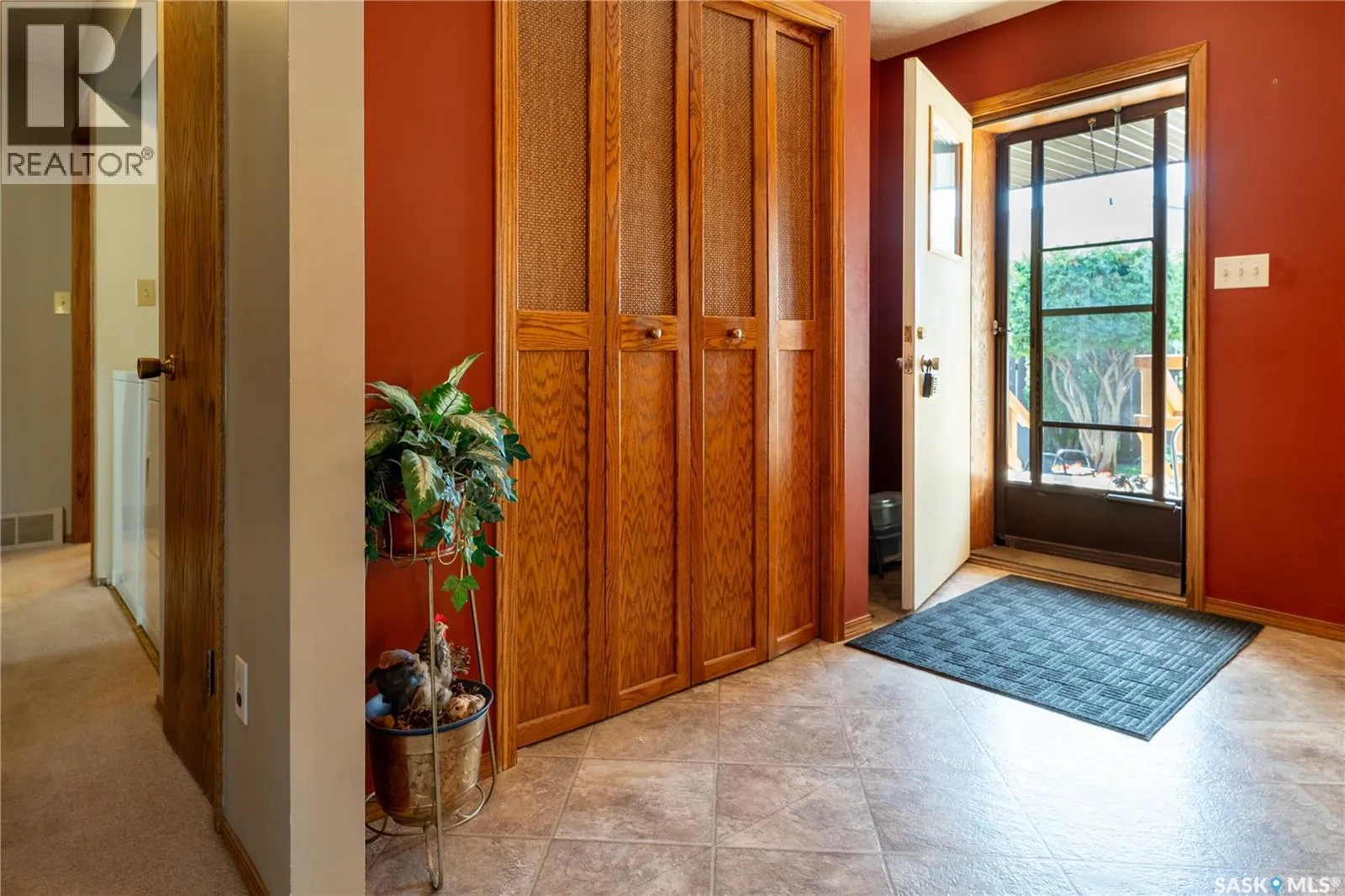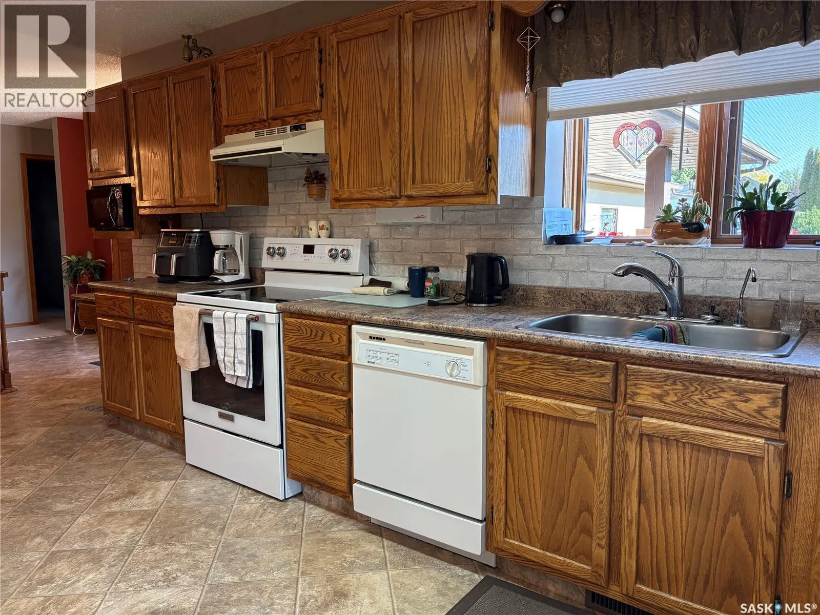 Welcome to this spacious family home in a sought out location in North Battleford. Located on a quiet crescent with ample space, this family home is a stunner. As you walk up the driveway you will be in awe of the well kept and well maintained private yard. The front yard features shrubs, flowers and trees, including a stone patio, making this the perfect spot to sit and relax. Attached to the house is a double garage, large enough to park your vehicles and store additional items. As you enter the home, you are greeted by a large entry way with enough space for all your coats and shoes. The main floor features a large kitchen, extra large dining/sitting room. Off the dining room is a large sunroom for extra space to enjoy those family gatherings. In the extra large living room sits a natural gas fireplace to add to the ambiance. There are 3 bedrooms, with a 4 piece bath and main floor laundry. Off the primary bedroom features a 3 piece ensuite. Head downstairs down the spiral staircase, leads you directly into the living room and recreation space. You will find an additional large bedroom, a 4 piece bath and an office. Furnace has been updated in recent years, this adds to peace of mind for years to come. Family homes in this area do not come around very often. Call your realtor today to book your showing! (id:27476)