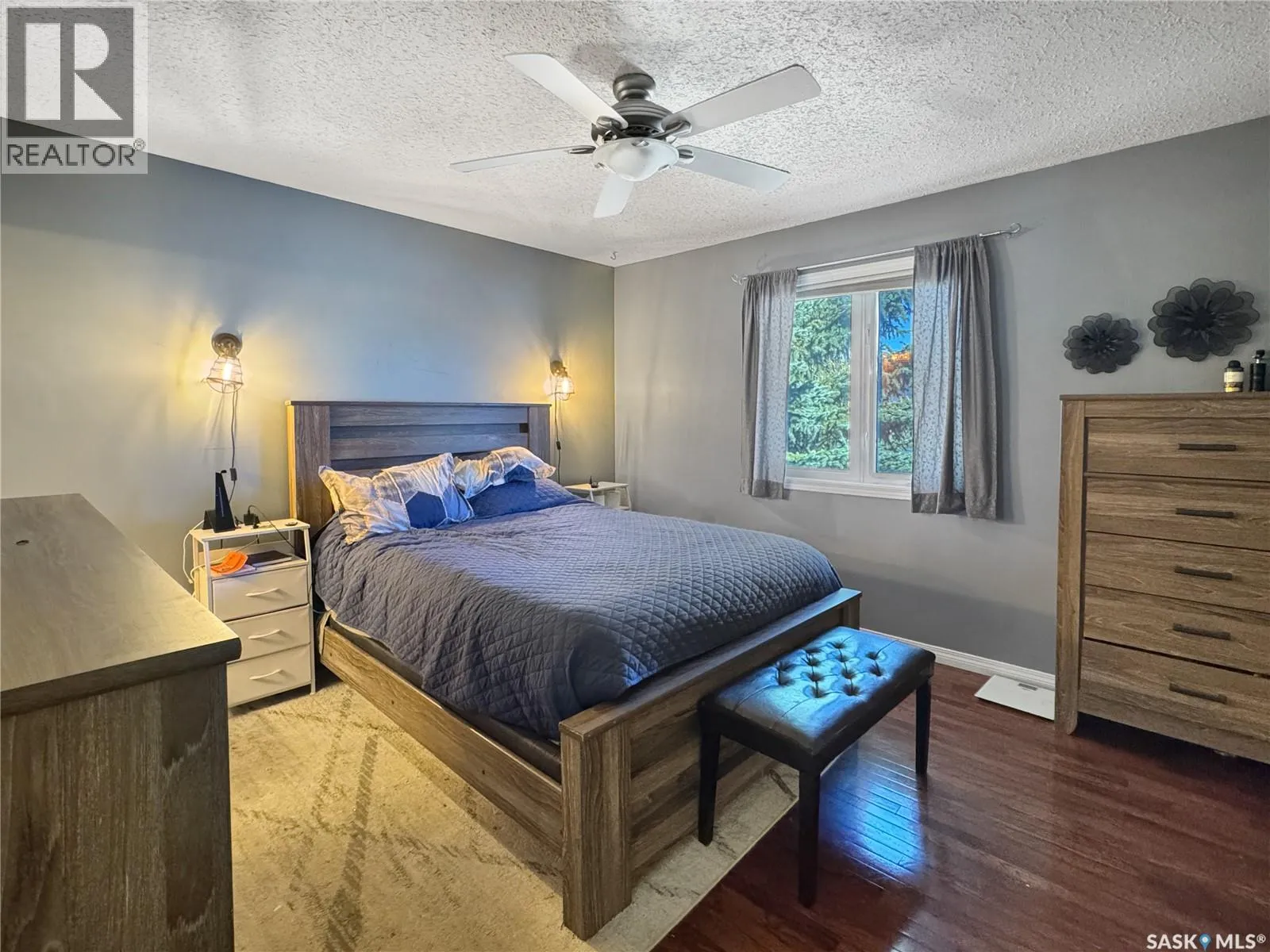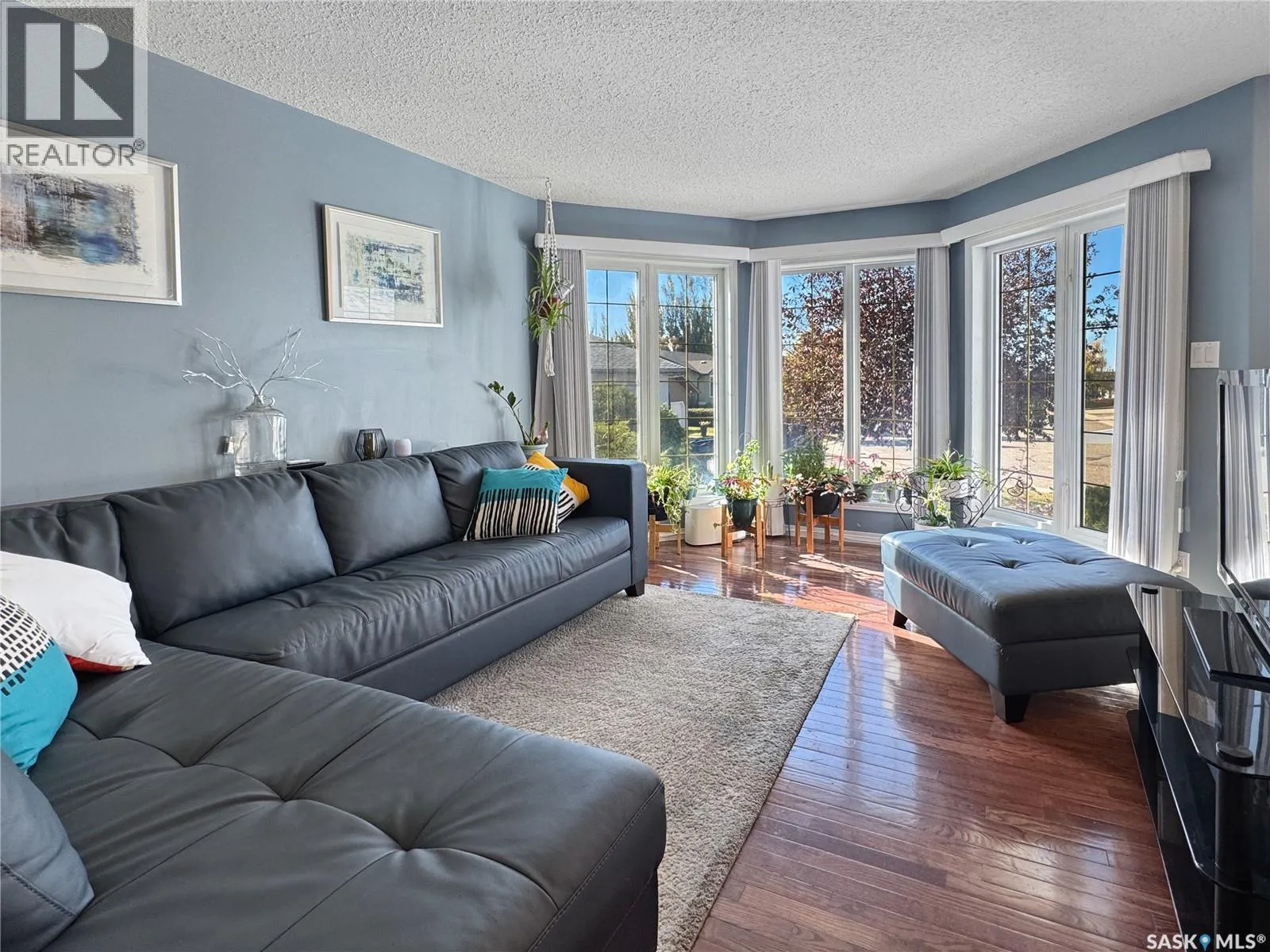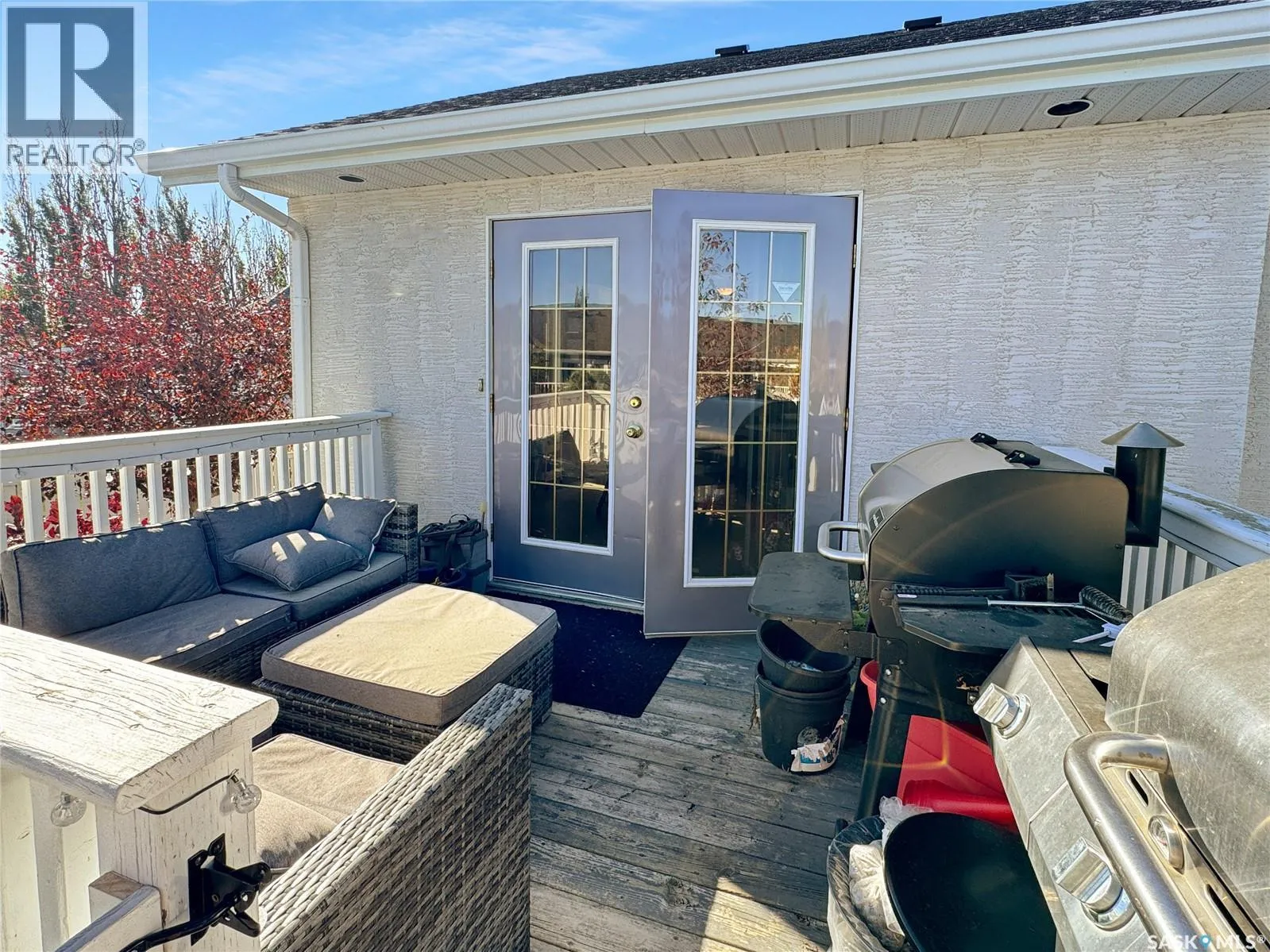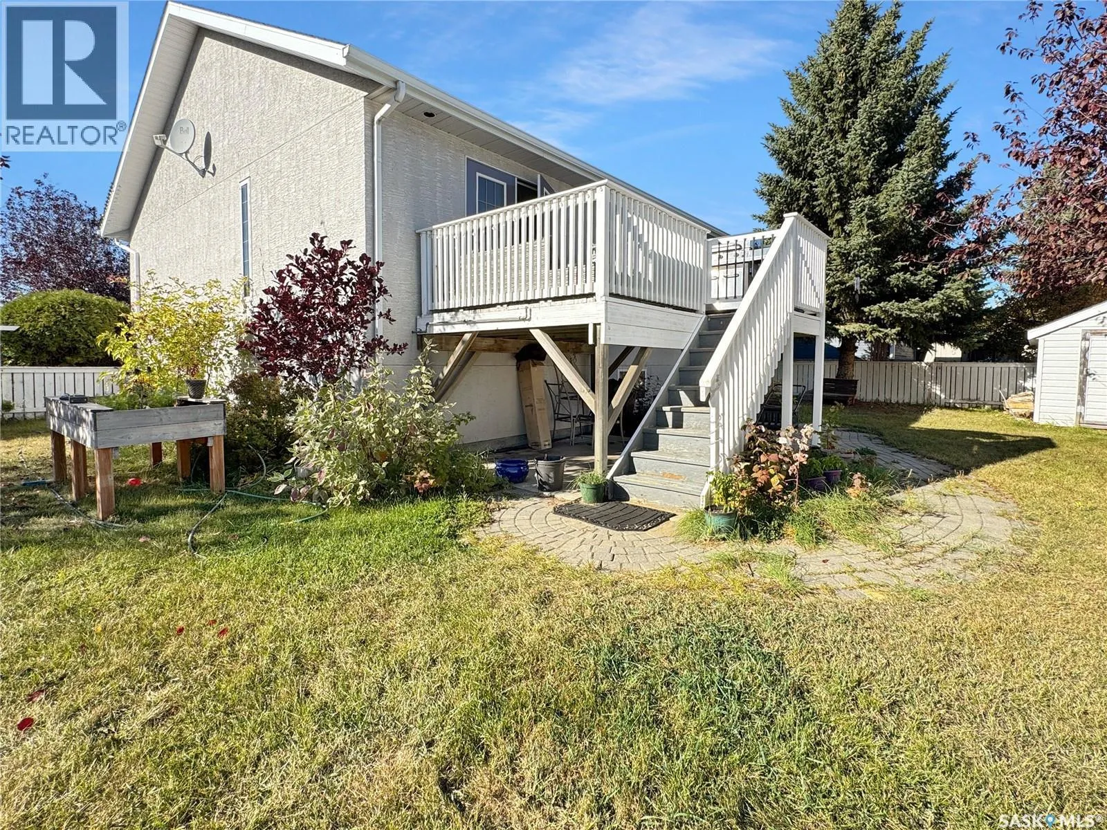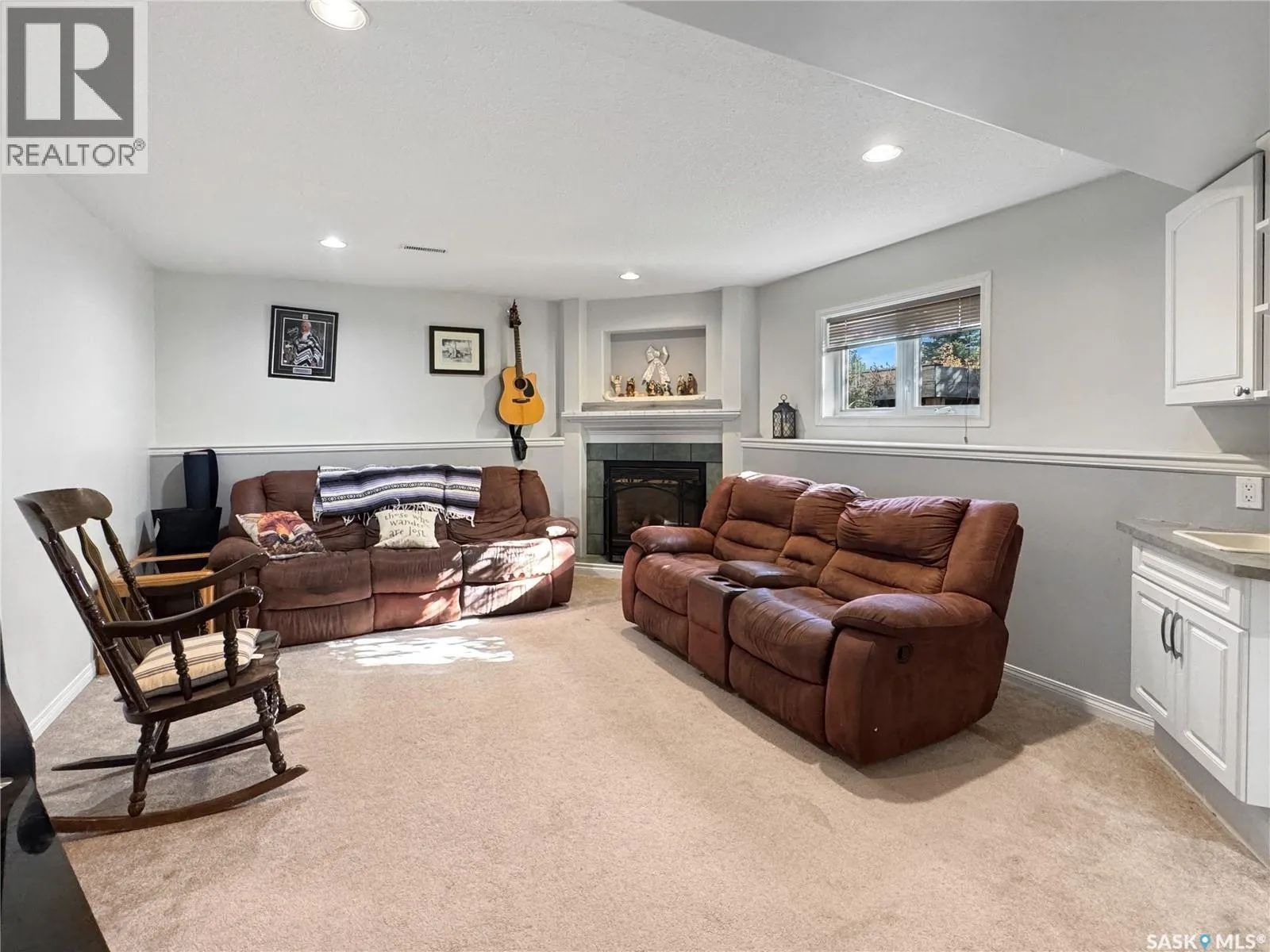 Welcome to Bunce Crescent, a quiet and family-friendly area in North Battleford where this spacious 5-bedroom, 3-bathroom bi-level home offers comfort, function, and plenty of room to grow. Step inside to a bright, open living space with floor-to-ceiling windows that fill the home with natural light. The large living room features rich hardwood flooring and flows seamlessly into the kitchen and dining areaâperfect for everyday living and entertaining. The kitchen is thoughtfully designed with an abundance of cabinetry, counter space, a raised breakfast bar, garburator, and a convenient central vac floor sweep. Patio doors off the dining area lead to the back deck, making BBQ season a breeze. The main floor includes three bedrooms, including a primary suite with its own 3-piece ensuite. Downstairs, the fully developed lower level expands your living space with a cozy family room featuring a natural gas fireplace, a recreation area, two additional bedrooms, a 4-piece bathroom, and a spacious laundry/utility room. This home is loaded with extrasâcentral air, air exchange system, central vac, alarm system, underground sprinklers, natural gas BBQ hookup, and more. The finished double attached garage offers direct entry into the home, while the large driveway provides RV parking. Sitting on an extra-wide corner lot, the backyard offers tons of space for kids, pets, or your favorite outdoor hobbies. Enjoy evenings around the custom firepit patio or relax on the deck overlooking your beautiful yard. This home truly has it allâspace, comfort, and location. Donât miss your chance to make it yours! Call today to book your private showing. (id:27476)