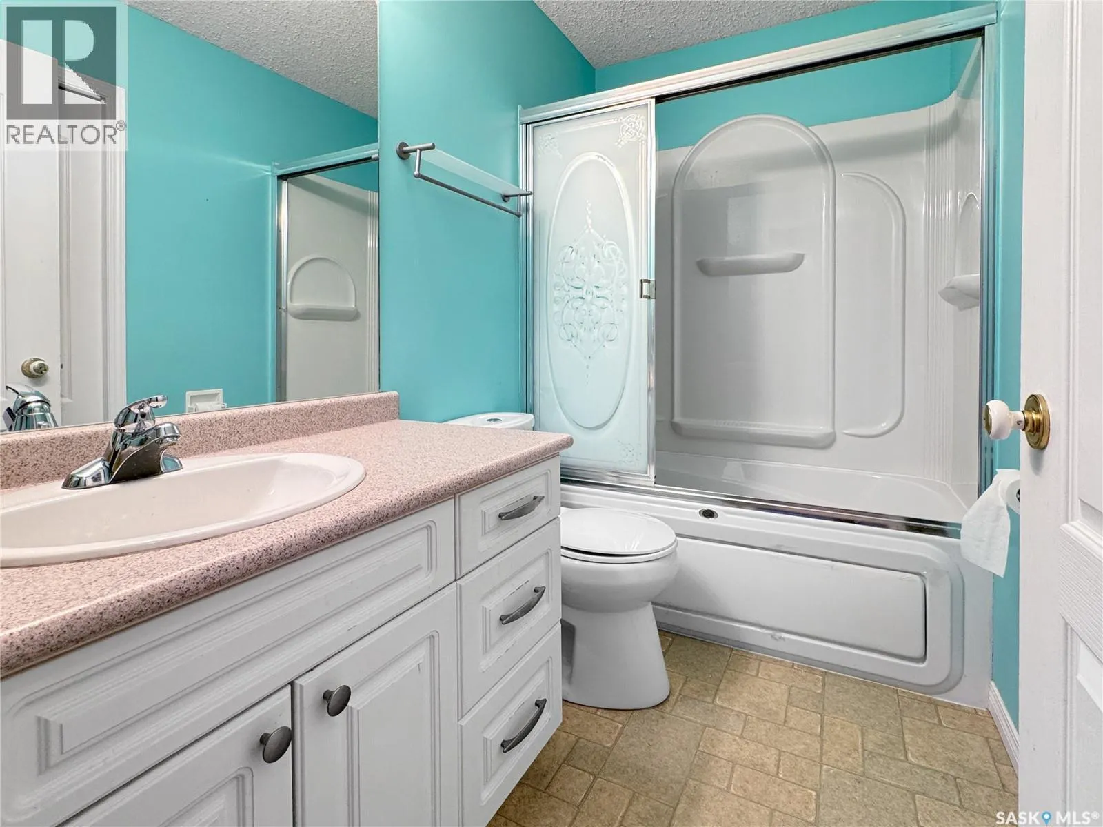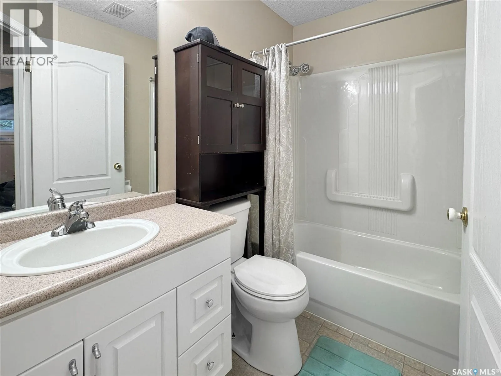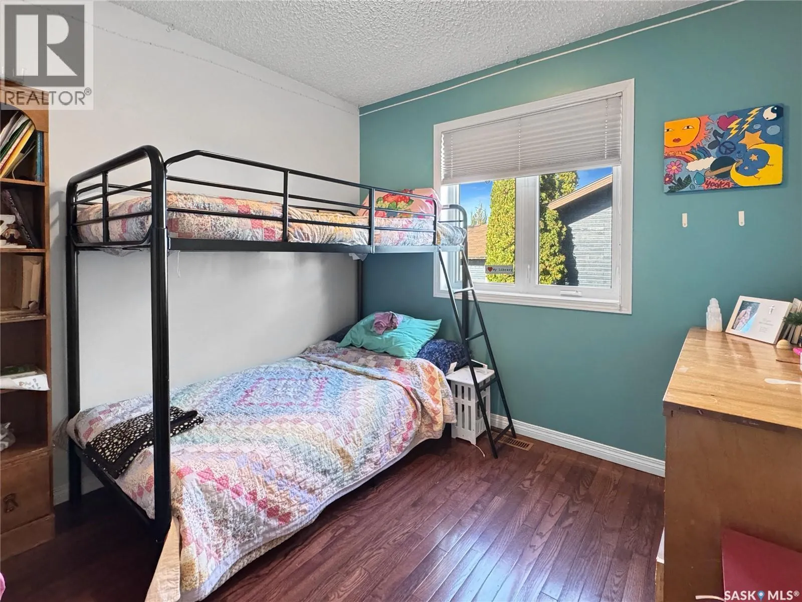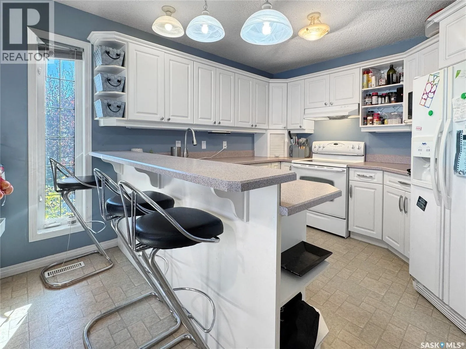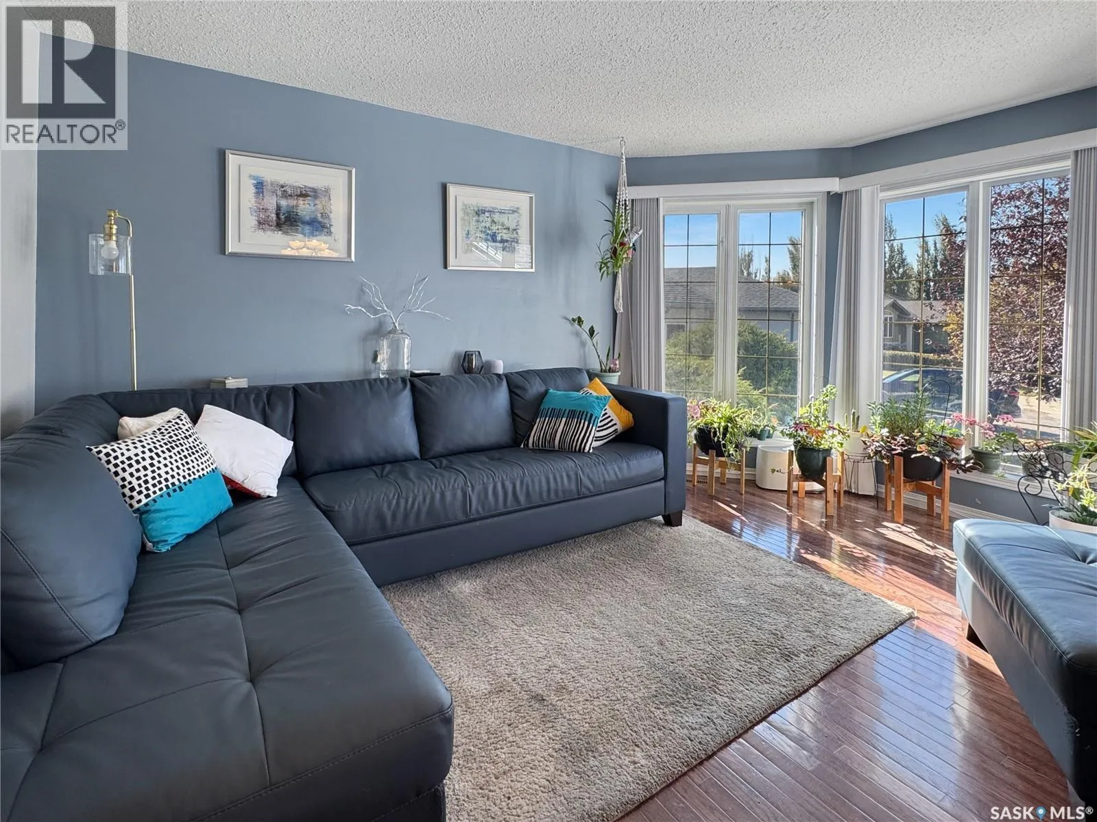 Welcome to Bunce Crescent, a quiet and family-friendly area in North Battleford where this spacious 5-bedroom, 3-bathroom bi-level home offers comfort, function, and plenty of room to grow. Step inside to a bright, open living space with floor-to-ceiling windows that fill the home with natural light. The large living room features rich hardwood flooring and flows seamlessly into the kitchen and dining areaâperfect for everyday living and entertaining. The kitchen is thoughtfully designed with an abundance of cabinetry, counter space, a raised breakfast bar, garburator, and a convenient central vac floor sweep. Patio doors off the dining area lead to the back deck, making BBQ season a breeze. The main floor includes three bedrooms, including a primary suite with its own 3-piece ensuite. Downstairs, the fully developed lower level expands your living space with a cozy family room featuring a natural gas fireplace, a recreation area, two additional bedrooms, a 4-piece bathroom, and a spacious laundry/utility room. This home is loaded with extrasâcentral air, air exchange system, central vac, alarm system, underground sprinklers, natural gas BBQ hookup, and more. The finished double attached garage offers direct entry into the home, while the large driveway provides RV parking. Sitting on an extra-wide corner lot, the backyard offers tons of space for kids, pets, or your favorite outdoor hobbies. Enjoy evenings around the custom firepit patio or relax on the deck overlooking your beautiful yard. This home truly has it allâspace, comfort, and location. Donât miss your chance to make it yours! Call today to book your private showing. (id:27476)