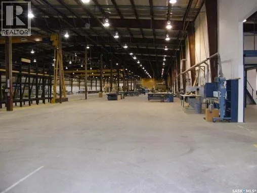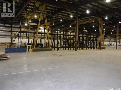 INDUSTRIAL BUILDING AND PROPERTY. The Main Industrial building is 91,300 sq. ft. single-story building with an additional 6,000 sq. ft. mezzanine with offices. The foundation and flooring are reinforced concrete slab. Pre-engineered steel structure with insulated metal cladding and metal roof. Radiant heat & full sprinkler system. With overhead doors ranging from 14 x 14 to 18 x 18 in size. Included are 1-20-ton crane, 2-10-ton cranes, 4-5-ton cranes. Second building is 3,920 sq. ft. with 2 overhead doors. Reinforced concrete floor. Pre-engineered steel structure with insulated metal cladding & metal roof. Radiant heating. Third building is 3,750 sq. ft. single-story wood frame building with metal siding. Overhead door. Irregular shaped lot of approx. 12 acres with 1,026.5 ft. of frontage (with fenced compound & security) along Canola Ave. Parsons Industrial Park North Battleford, SK. This property has a tenant with a full triple net lease to 2030. Also available is listing A2070374. (id:27476)