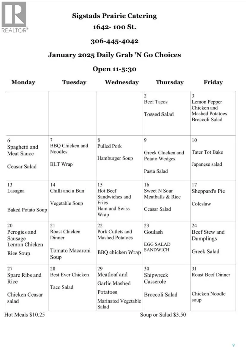 A Local Legacy â Sigstadâs Prairie Catering. After more than 10 years of bringing warmth, flavour, and heart to the Battlefords and beyond, Sigstadâs Prairie Catering is ready for a new owner to continue its proud tradition. Founded and operated by Annette Sigstad, this beloved local business has become a trusted name in catering across Saskatchewan, known for its homemade cooking, friendly service, and commitment to community. With weddings, fundraisers, reunions, and countless celebrations under its belt, this business is more than a job, itâs a meaningful way to connect with people through food. Weâve all heard that famous jingle.â Sigstads Prairie Catering⦠We put food in your mouth.â This business has not only produced amazing food for many years, it has strong brand recognition, which is such an asset for a buyer to build on. With over 400 catered events in 2025, and the opportunity for many more, the potential for this business is truly incredible. This is an amazing opportunity for someone with passion and drive to step into a fully established and respected catering operation with everything in place for success. To top it all off to ensure a smooth transition you would have the possibility for mentorship during the early stages. Now, the opportunity is yours to carry on that legacy and make it your own. Donât miss this chance to own a piece of local culinary history (id:27476)