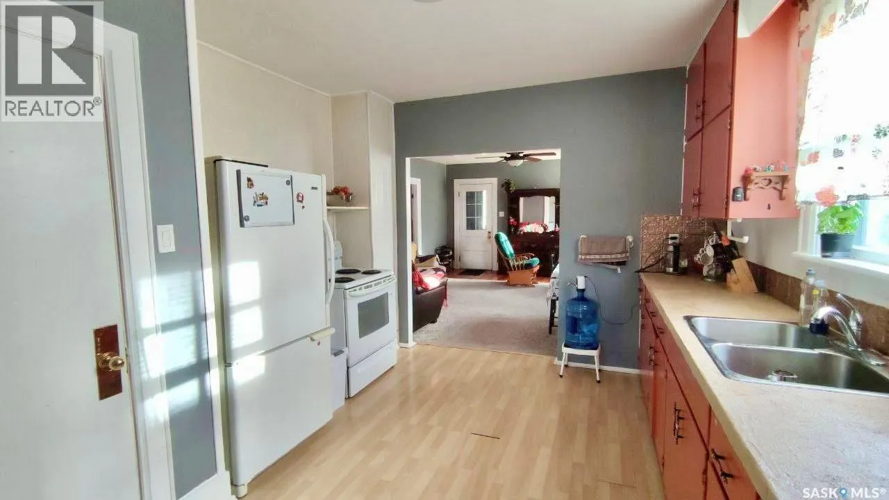 This inviting 1230 square foot home is in great condition and ready for you to move in. It features a spacious galley kitchen with lots of counter space and equipped with a fridge and stove that remain with the property. An 8' x 8' front porch adds curb appeal and offers a perfect place to welcome guests and also provides lots of room for busy families to keep their outdoor gear. The spacious rear entry leads directly into the home from the backyard and garage, offering practicality for daily life. The main floor boasts two comfortable bedrooms and a 4-piece bathroom, along with main floor laundry (washer and dryer included) for added convenience. One of the bedrooms, located at the back of the house, has a separate entrance from the rear entrance, presenting an excellent opportunity to rent out this space for additional income. The second level features a bright and airy bedroom with ample natural light and a private 3-piece bathroom. The basement is a blank canvas, ready for development, with the potential to add a 4th bedroom. Outside, there is a partially fenced yard, a driveway at the front of the house providing off-street parking, a detached one car garage with a garage door opener, and a large shed that adds extra storage and convenience. This home is perfect for families, professionals, or anyone looking for a versatile property with rental income potential. Quick possession available! (id:27476)