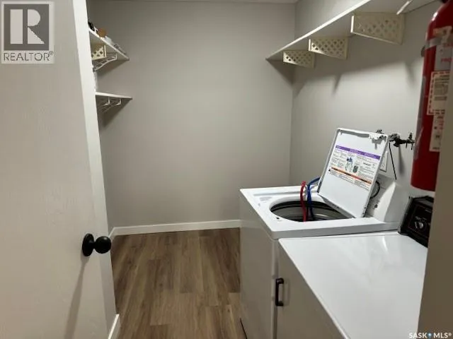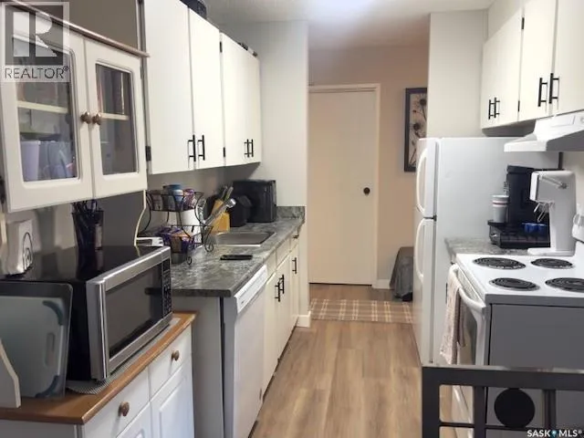 Look no further! This beautifully updated main-floor condo is move-in ready and ideal for those seeking stair-free living. The entire unit was recently repainted, including doors, cabinets, and baseboards, creating a clean and modern feel throughout. Brand-new high-quality waterproof laminate flooring has been installed, along with a new toilet, a stylish lighted mirror, and updated light fixtures. Enjoy the convenience of in-suite laundry with the washer and dryer included, plus all appliances as part of the package. New dryer and stove recently. Additional storage is located on the west end of the private patio. This well-maintained adult, non-smoking complex offers peace of mind and a secure building. Condo fees are just $225 per month and include heat and water (owner pays power). Property taxes are approximately $180 per month. One electrified parking stall is included and is conveniently located directly outside the east entrance. Why rent when you can own? With payments potentially lower than rent, this is an excellent opportunity for affordable homeownership! (id:27476)