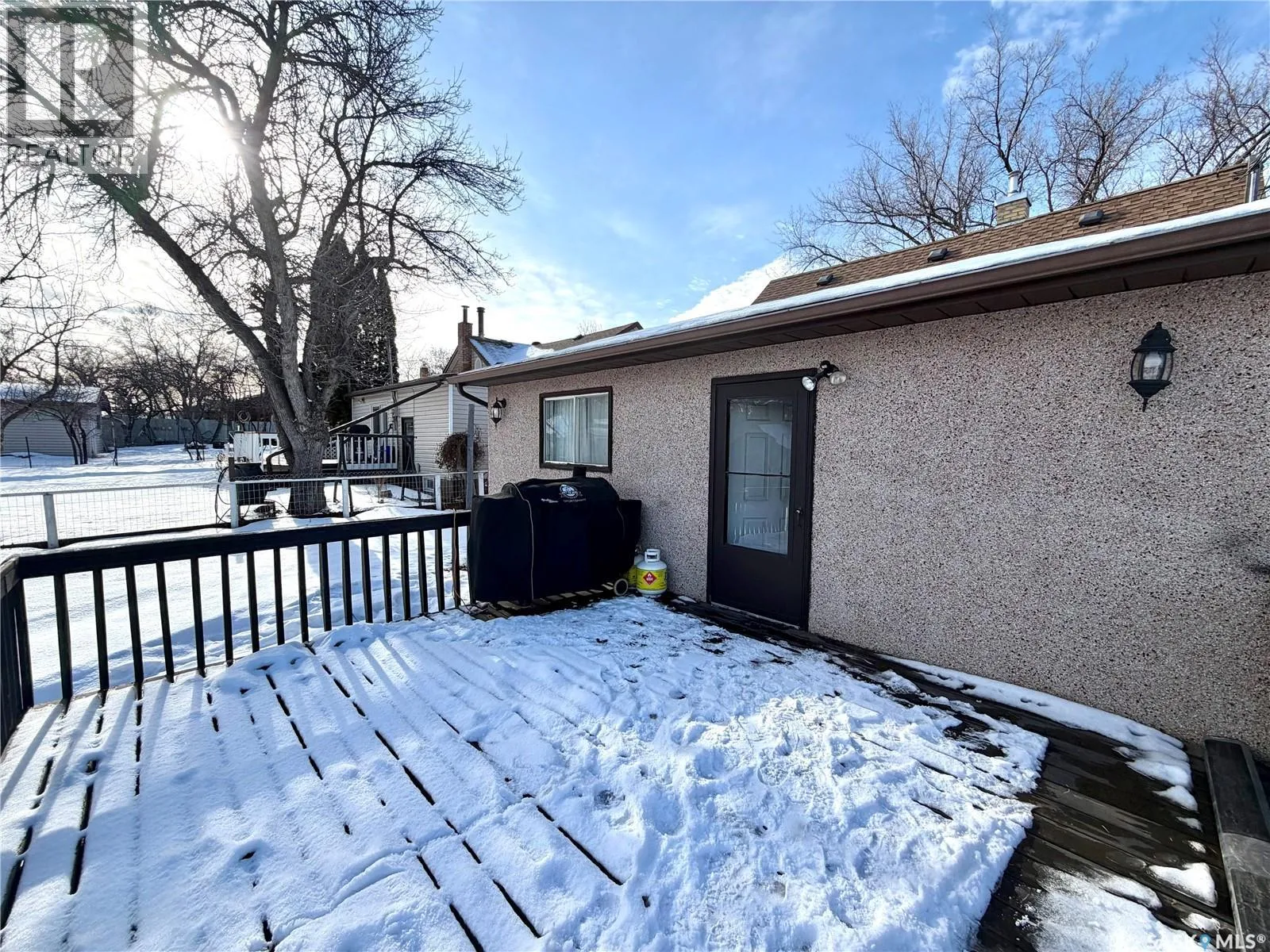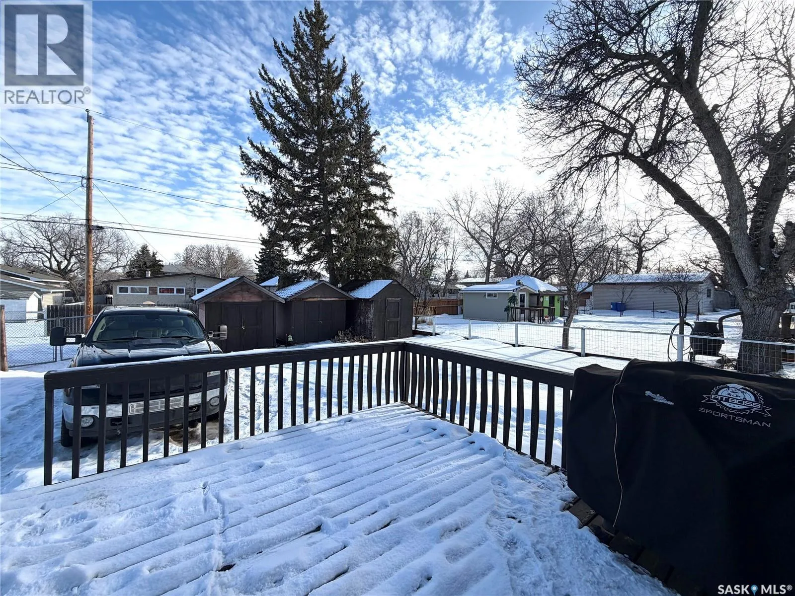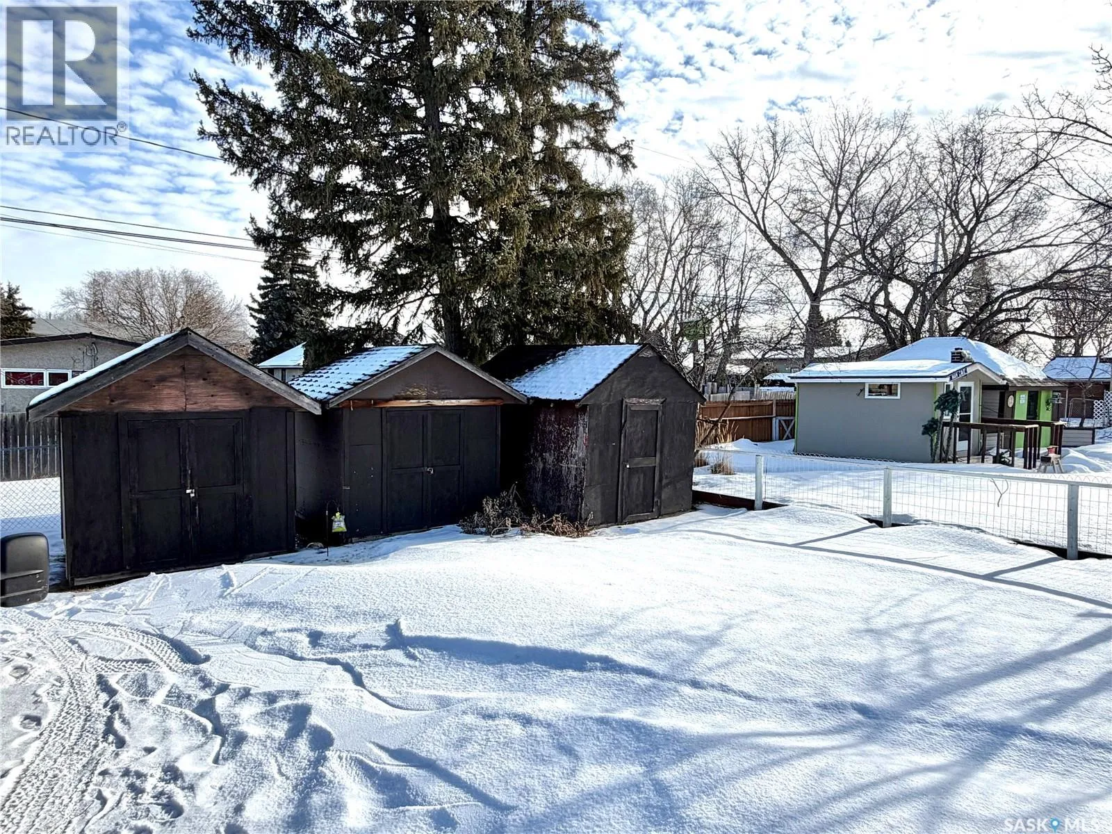 Lot 12 Block 6 Plan B3419 This home has been well cared for and it shows! It is not your average wartime home, with many renovations and an addition off the front and back, this home offers plenty of space. You'll be sure to appreciate all the storage the kitchen offers with cabinets all the way to the ceiling. Kitchen cabinets were replaced in the 90's. The drywall on the main was redone approximately 2015, and pot lights added to the living room space as well as the window replaced. The 4 piece bath was fully renovated last year and there is a den that offers a great flex space for a pantry/storage or a window could be added to make it a bedroom. The back addition features main floor laundry, a large closet off the back entry and a very spacious main floor master bedroom. There is plumbing roughed in for a second bath off the back entry. Upstairs are two additional bedrooms, one with a closet added in and custom storage added at the top of the stairs. The furnace and water heater have been replaced as well as the shingles. Outside you'll find a convenient chain link fence surrounding the front and back and a large deck. There is parking off the back alley and three sheds allowing plenty of storage room. This home has so much to offer, book your showing today. (id:27476)