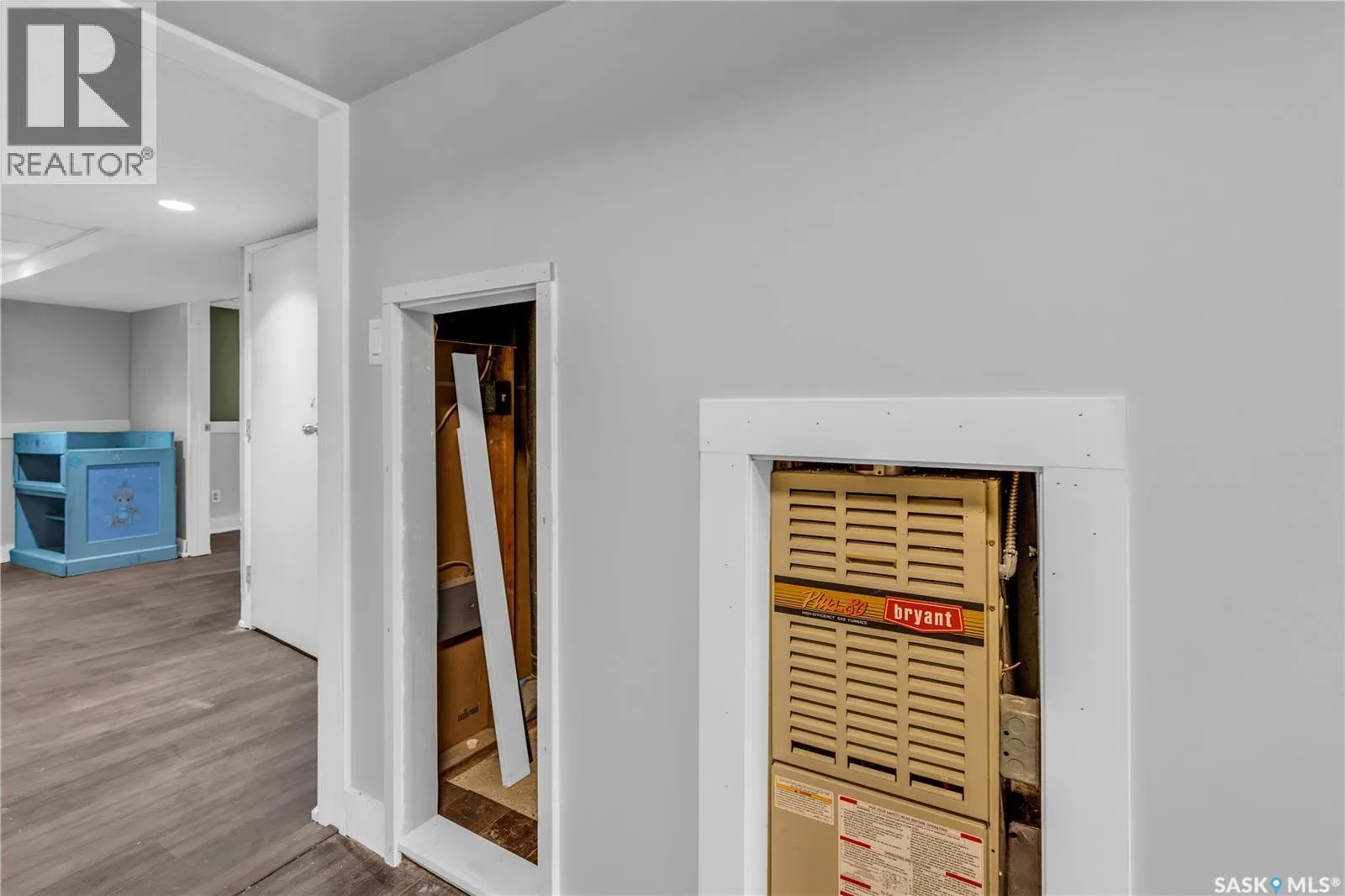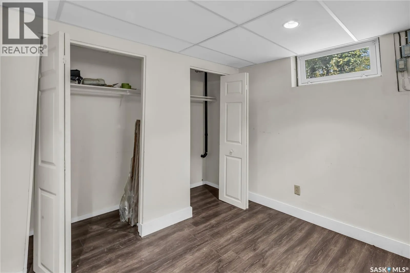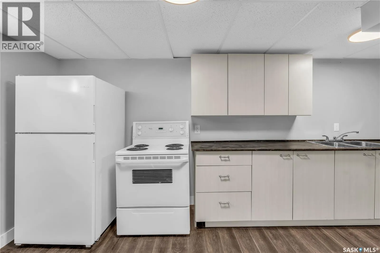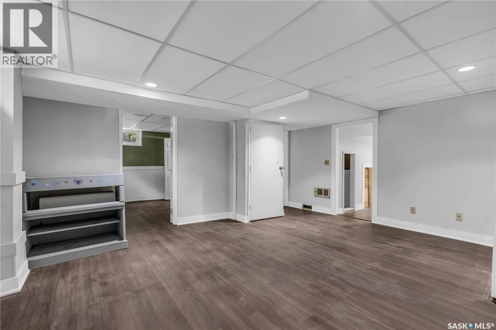 Charming bungalow on a large corner lot in a great location! This bright and inviting 960 sq ft home features a sun-filled main floor with two bedrooms, a full bathroom and one bedroom + den basement suite. Recent upgrades in 2025 include vinyl plank flooring, modern lighting, and fresh interior paint, while the exterior was repainted in 2019 to enhance curb appeal. The fully developed basement offers even more value with a non-conforming suite, ideal for extended family or potential rental income. It includes a kitchenette with appliances, one spacious bedroom + den, and a beautifully renovated bathroom/laundry area. Additional features include a newer water heater, some updated windows, new ceiling tiles in the basement, and a fully fenced yard with a storage shedâperfect for pets, kids, or relaxing summer BBQs. Located directly behind John Paul II Collegiate and close to parks, shopping, and amenities, this home offers excellent value for first-time buyers, investors, or those looking to downsize. Book your private showing today. (id:27476)