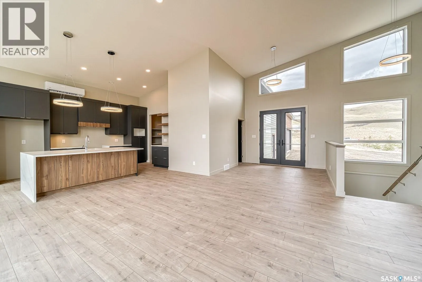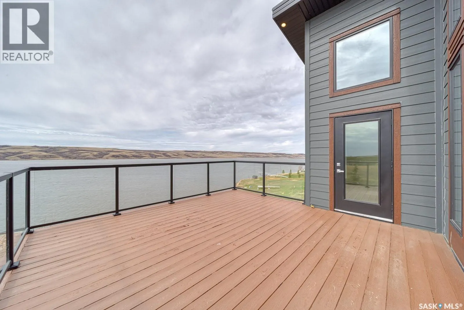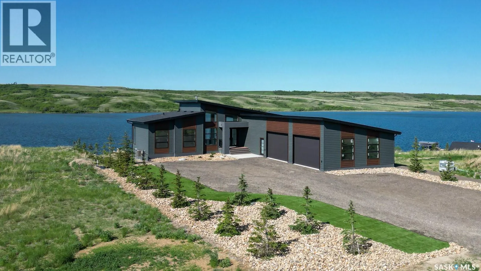 Resort Village of North Grove Words fail to describe this exceptional lakefront home! 12 Sunset Boulevard in the Resort Village of North Grove defines a legacy lifestyle property on Buffalo Pound Lake! Stunning contemporary design begins with a 4-car attached garage ushering you into the fabulous bungalow-style home (2037 sq/ft on main level), with, of course, a walkout lower level specifically designed to surround you with panoramic lake views! Open concept design with vaulted ceilings, perfect kitchen design with central island, separate pantry room, dining area that steps onto a spacious deck overlooking the lake, and of course, the gas fireplace provides a wonderful family-centric home! The main floor flows from the entry area to a full bath, a bedroom or office space, and then to the amazing primary suite with a lovely bath, dual sinks, soaking tub, walk-in shower, leading to an amazing dressing room! When you enter from the garage (45'X28'), you find a perfect space that has outdoor access for a games room, fitness centre, home office, studio,... amazing! Yes, there is also a mudroom space before entering! The lower level steps into a fantastic family room with a wet bar area, Opti-mist fireplace, plus access to the covered, & screened patio,....WOW!! Of course, there is a media room, 2 bedrooms, a full bath, laundry room, and a utility/storage area! Now, step outside to relax with nature that has trees, access to the lake, retaining walls, a firepit area,... views that you will never tire of! This newly constructed and never-lived-in home is a one-of-a-kind opportunity! If desired, the lot #13, west of the property can be purchased separately, MLS# SK010137! Be sure not to miss this amazing place at the lake to call home! Drone shots + 3D scan of the interiors with 360s of the outdoor spaces are available for you! (id:27476)