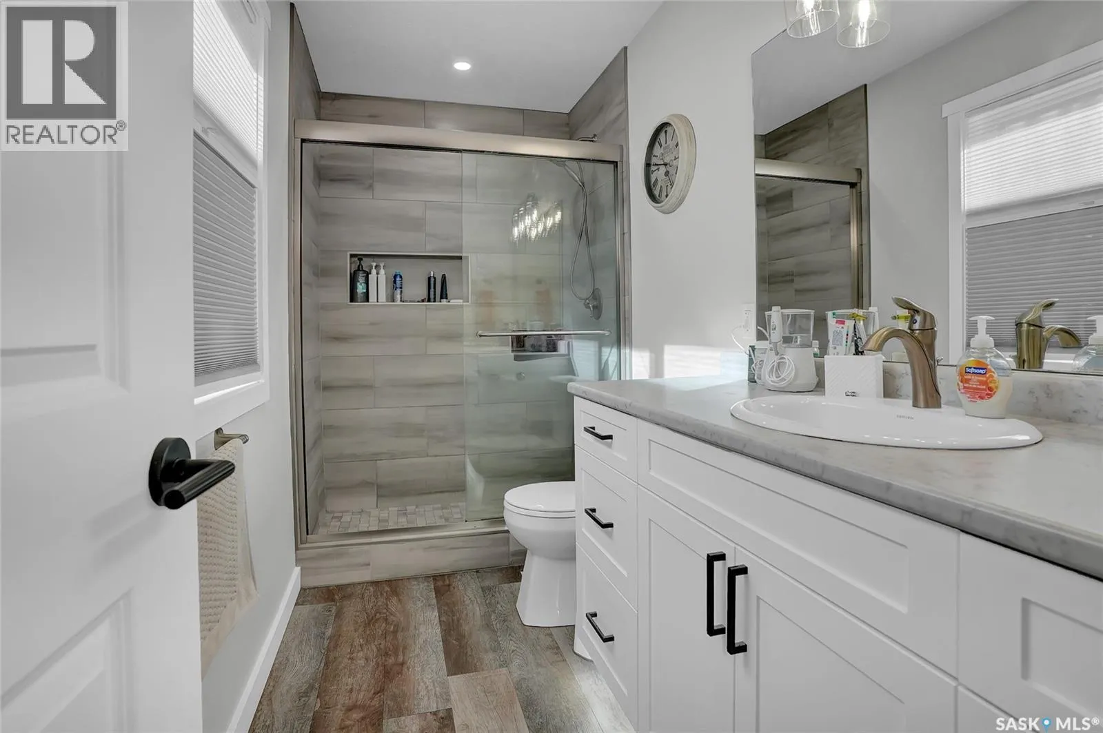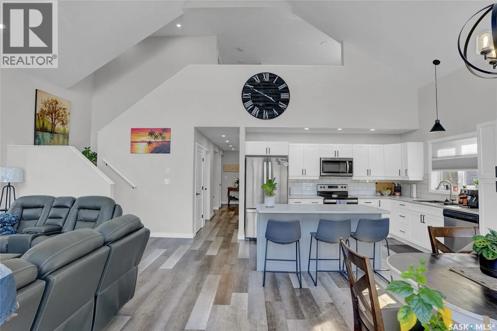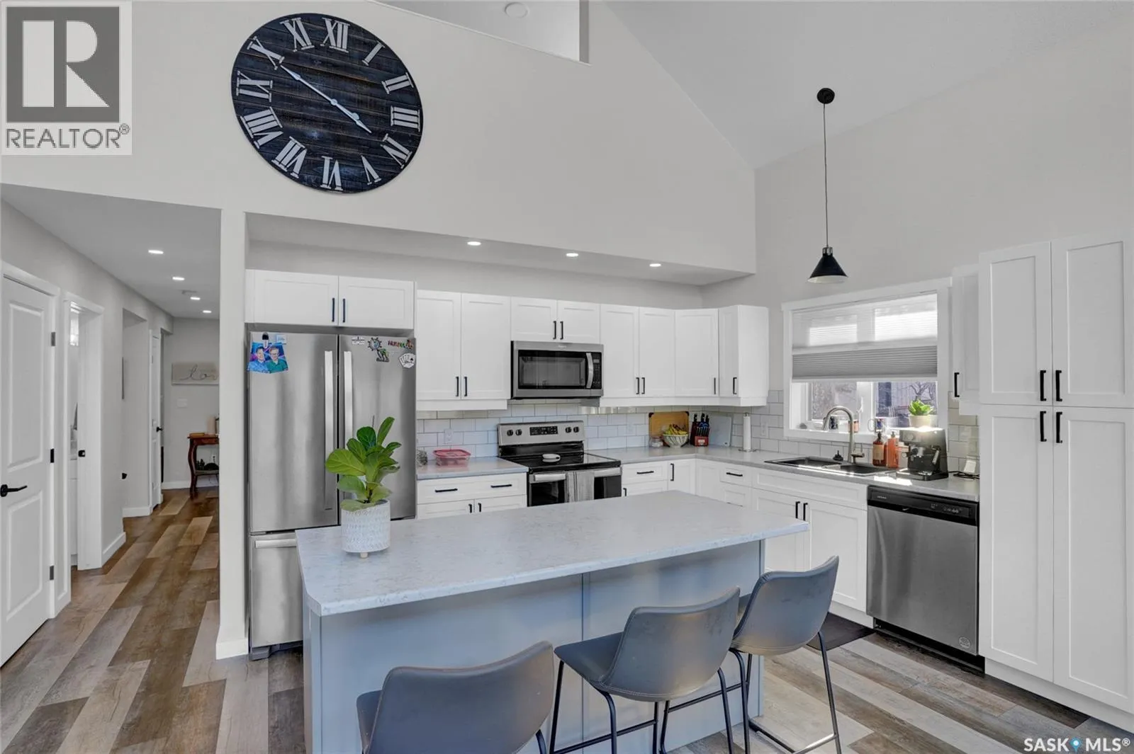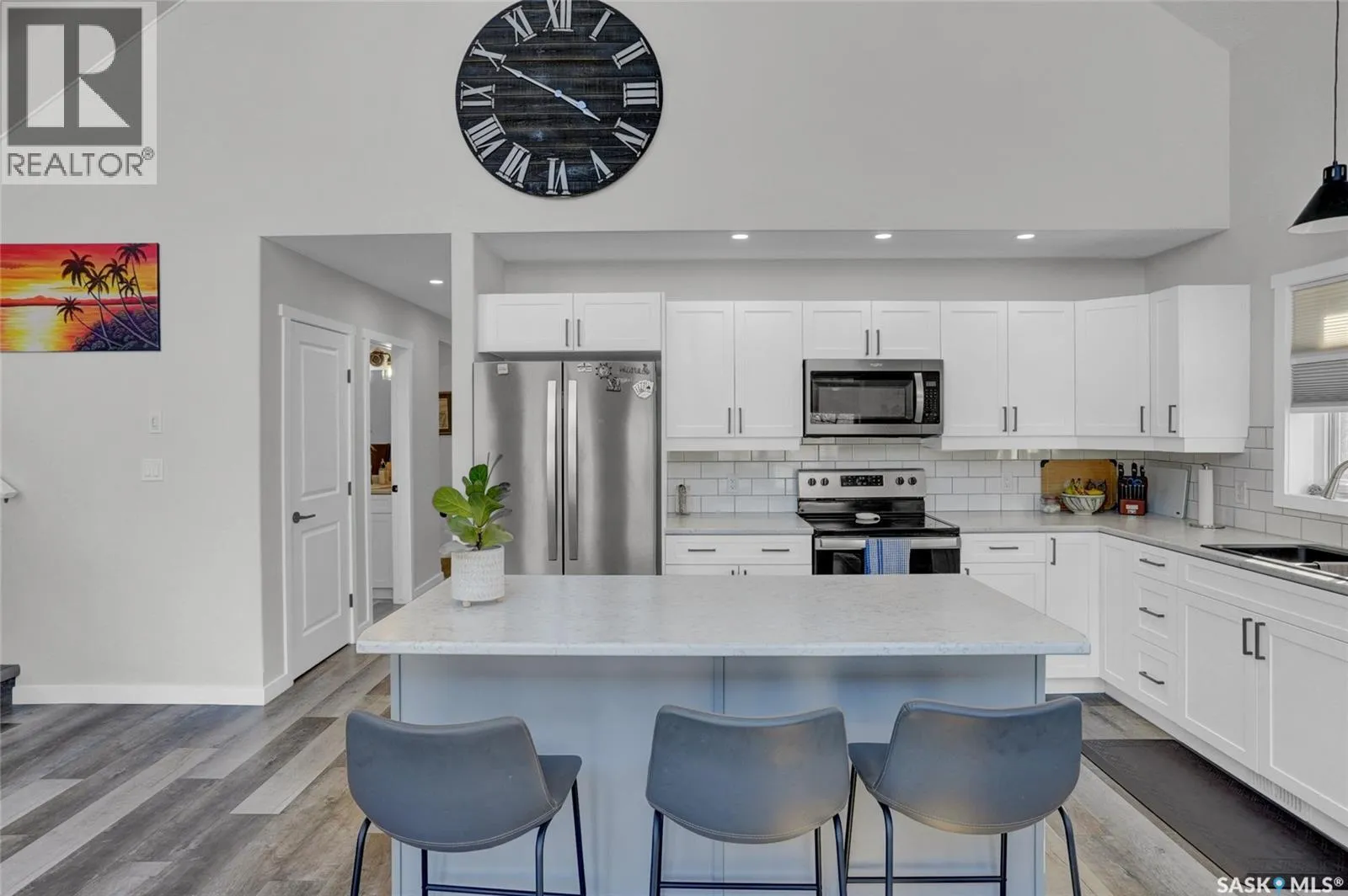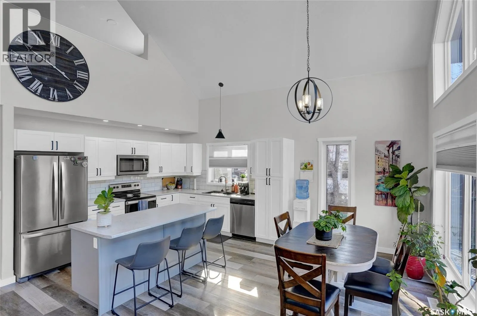 Experience luxury lakefront living in the Resort Village of North Grove on the serene shores of Buffalo Pound Lake. This remarkable 4-season home offers an unparalleled blend of upscale comfort & year-round enjoyment, conveniently located just a short drive from Moose Jaw & Regina. Designed to capture breathtaking lake views, this property boasts a spacious open-concept layout w/expansive windows that seamlessly blend indoor & outdoor living. Step into the foyer, you'll be greeted by stunning chalet-style windows that frame picturesque views of the grounds, the lake & its surroundings. The living room, enhanced by a wood burning fireplace, flows effortlessly into the dining area. The gourmet kitchen is a culinary haven, perfect for creating memorable meals w/the family. On the main floor, you'll find the primary bedroom, designed to accommodate a king-size suite. It features a walk-in closet & a beautifully appointed 3pc. ensuite. Additional conveniences on this floor include a powder room, laundry room, utility area & direct access to the triple att. heated garage with a drive-thru overhead door. The 2nd floor offers a versatile flex room that overlooks the main floor & provides a breathtaking view of the lake. This space can be tailored to suit your family's needs. The floor is completed w/2 additional bedrooms & 4pc. bath. Step outside onto the generously sized deck w/composite decking, thoughtfully designed for relaxation & entertainment. The manicured grounds feature mature landscaping & underground sprinklers, drawing water from the lake to keep the grass lush and vibrant. This property includes a triple att. heated garage, & room for RV/boat parking & comes with a dock & boat lift. This property is ideal for boating, fishing & all-season enjoyment. Nestled in a peaceful resort community renowned for its natural beauty & outdoor lifestyle, this is a rare opportunity to own a premier lakefront property. CLICK ON MULTI MEDIA LINK FOR A VISUAL TOUR & call today! (id:27476)