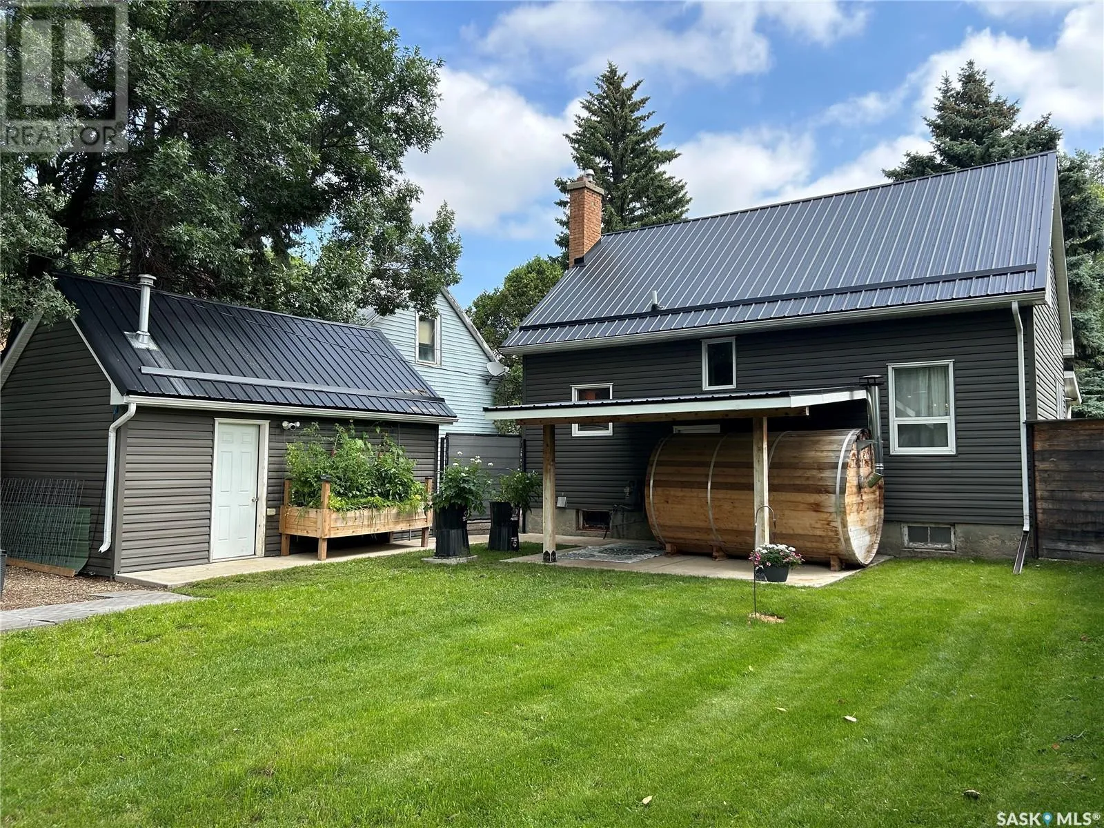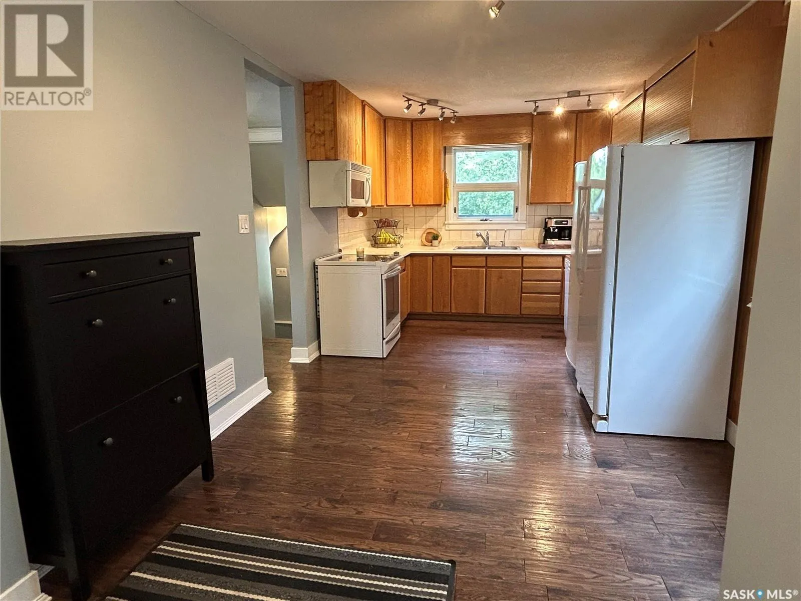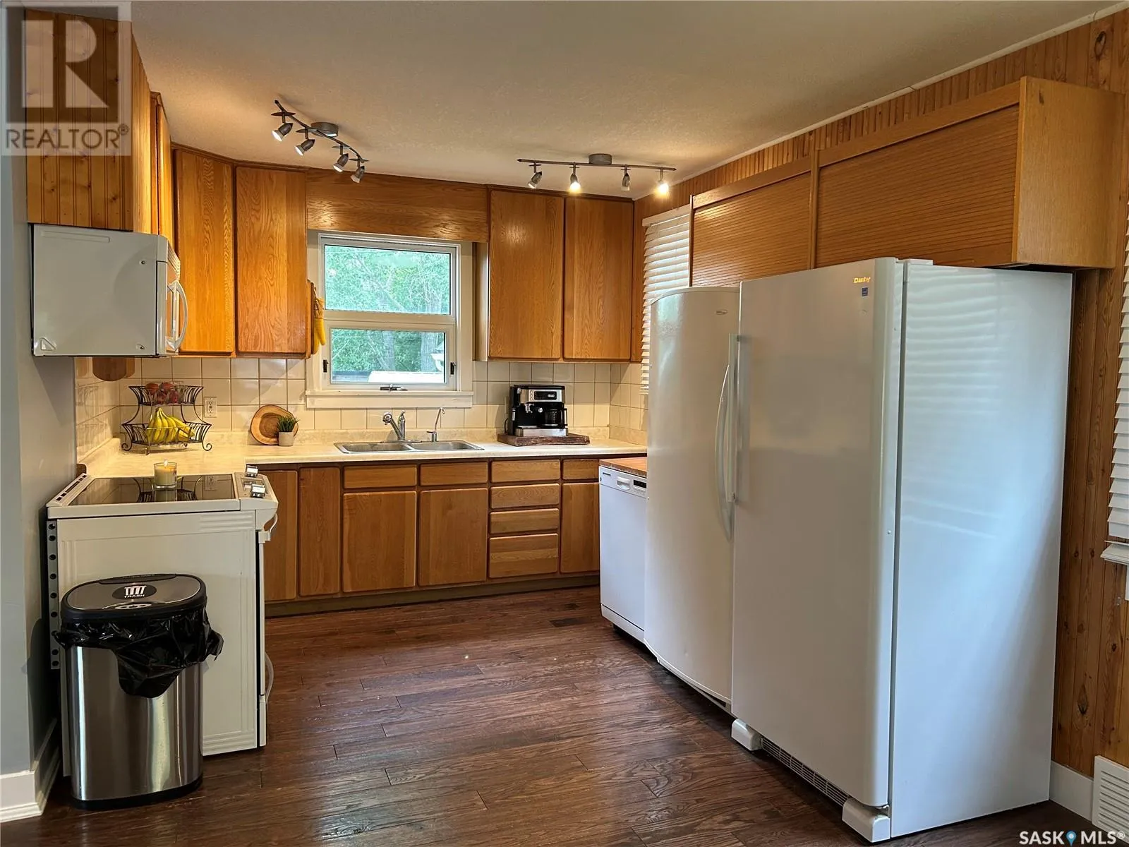 Charming Updated Home Backing Onto Park in North Portal. This beautifully maintained home is a true gem, perfectly situated on a spacious 50' x 120' lot that backs directly onto the park in the peaceful community of North Portal. With great curb appeal and a welcoming covered front deck, this property combines small-town charm with thoughtful updates throughout. Step inside to find a warm, inviting interior featuring ¾ inch oak flooring throughout most of the main and upper levels. The eat-in kitchen has oak cabinetry, a built-in microwave, portable dishwasher, full-sized fridge, and a full-sized freezer. A separate dining room offers flexibility â perfect for formal meals, a home office, or expanding the living room space. The living room is filled with natural light, thanks to large, picturesque windows that brighten the entire main floor. Upstairs, the primary bedroom easily accommodates a king-size bed with extra space for furnishings, while the second bedroom offers great size and ample storage. The bathroom has been tastefully updated, featuring heated tile flooring and a stylish tile surround that adds a vibrant touch. Downstairs, the basement currently houses the laundry and provides potential for future development â whether you need a rec room, gym, or more storage. Outdoors, youâll appreciate the lush lawn, maintained by an underground sprinkler system, and a fully fenced backyard with two steel gates for added convenience. The heated garage is a fantastic bonus, especially in the winter months. Additional inclusions are a Nest security system and a Generac generator. Located just steps from a park and moments away from the International Golf Course, this home offers both tranquility and recreation. Don't miss your chance to own this move-in-ready home in a truly special location! (id:27476)