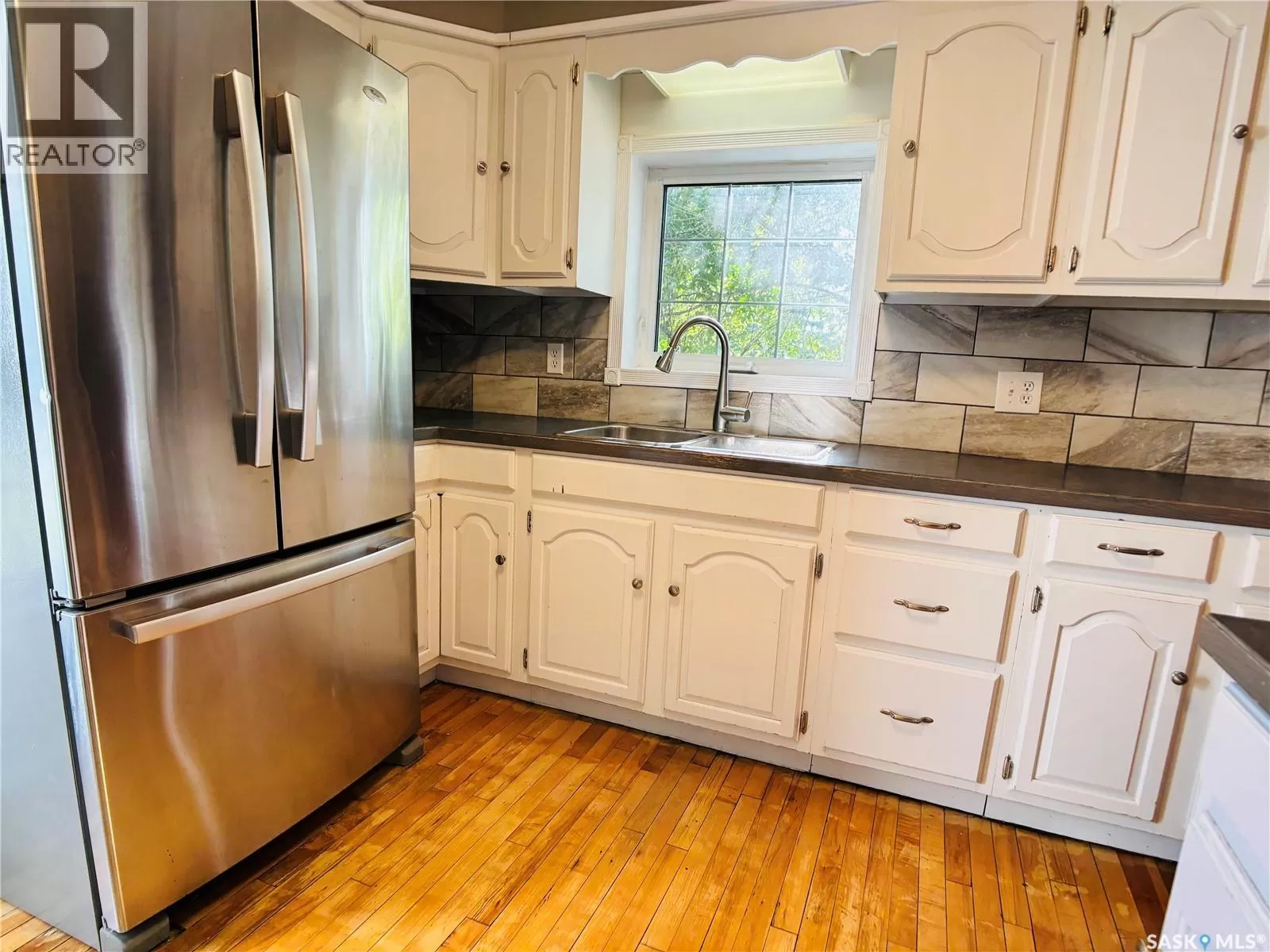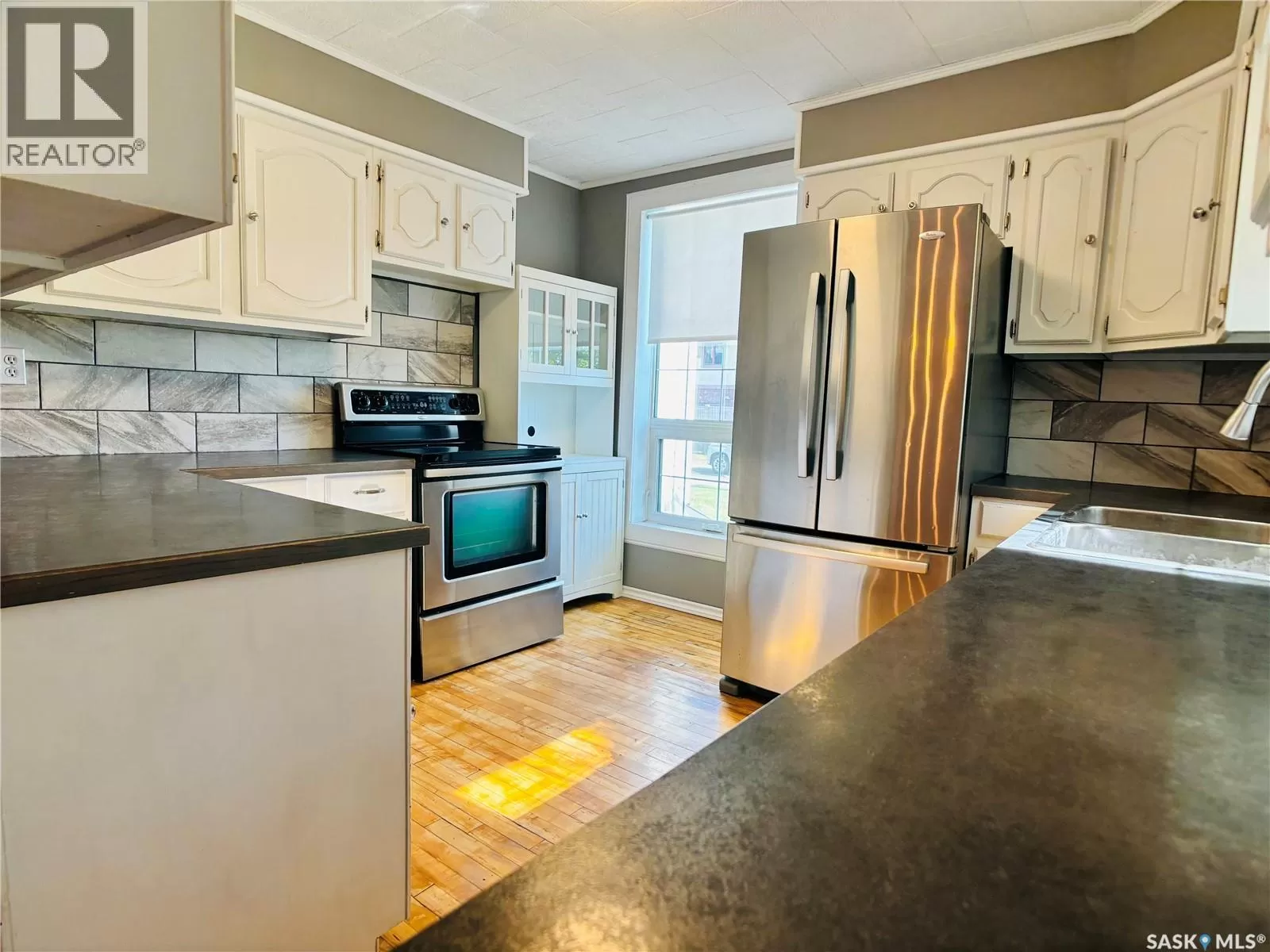 Nestled in the cozy community of North Portal, this over 1300 square foot home has everything you need! Entering the home in the spacious foyer, thereâs room for everyone and everything. Once inside the combined living and family room with gas fireplace youâll notice the high ceilings and large windows that flood the room with light. Continuing through the main floor is the dining room and kitchen both with multiple upgrades like appliances, lighting and paint. The main floor bathroom has also been fully renovated with a glass shower, tile work and cabinetry. Finishing up the main floor is a comfortably sized bedroom and convenient main floor laundry and back mud room. Heading upstairs youâll find a great office space, generously sized master bedroom retreat, another very large third bedroom and a second full bathroom. The property sits on 5 lots allowing you so much room to enjoy your attached double car garage, large back deck and whatever else you choose to add to your property. Call today to book your private tour of this amazing home! (id:27476)