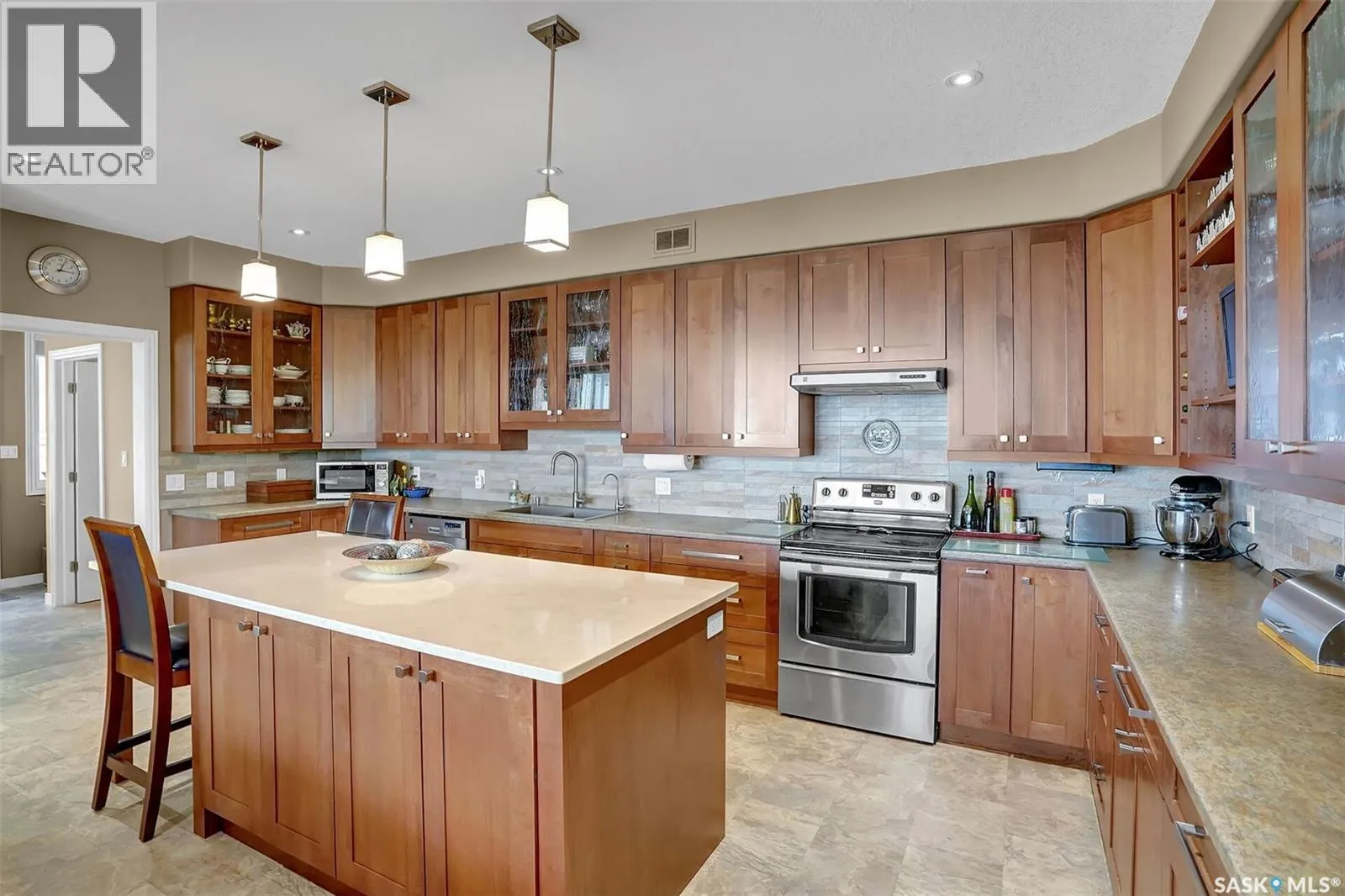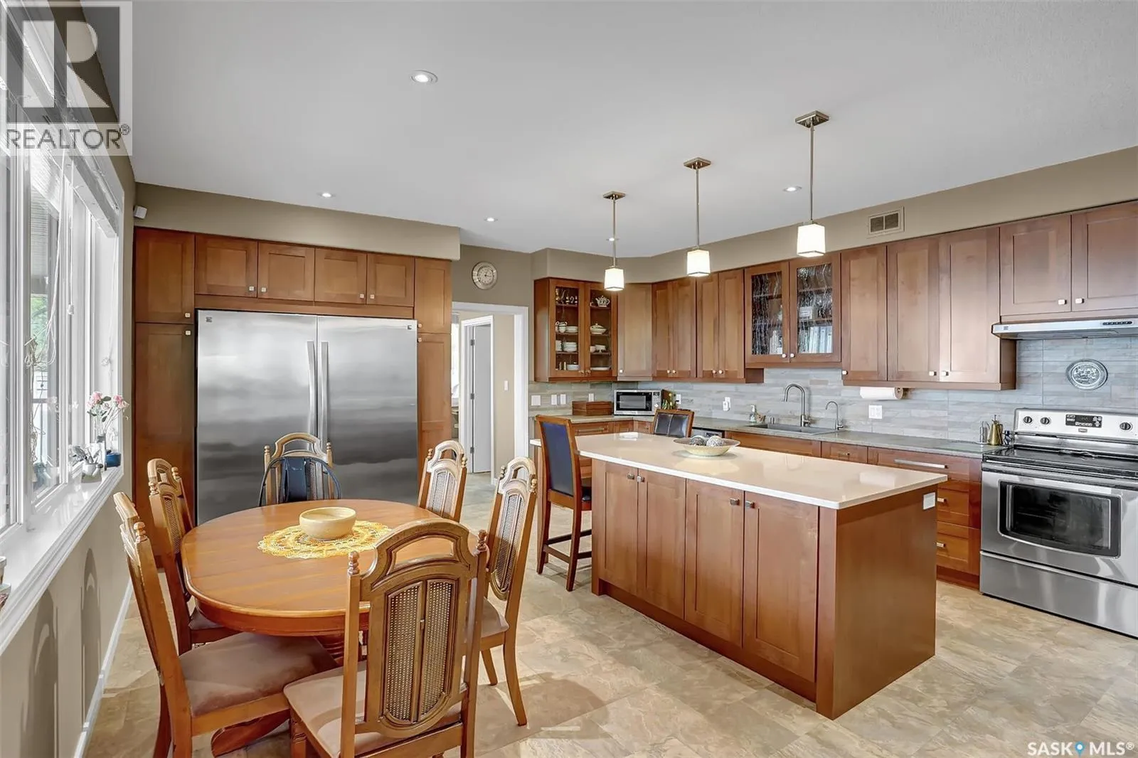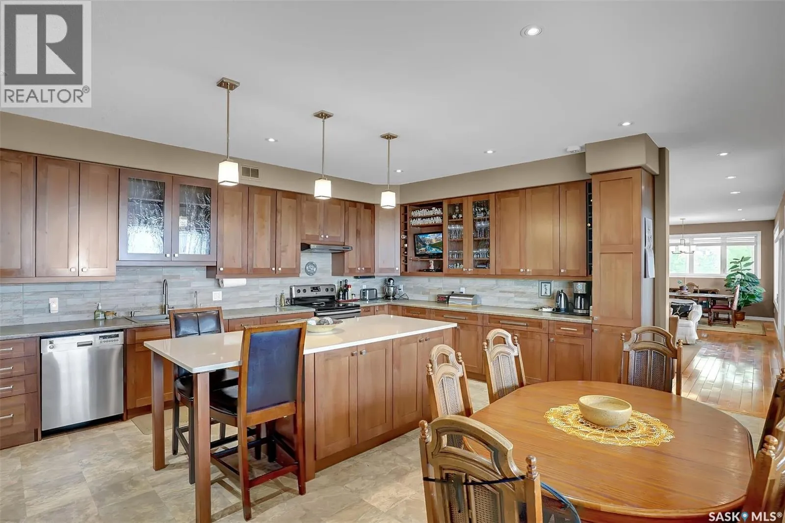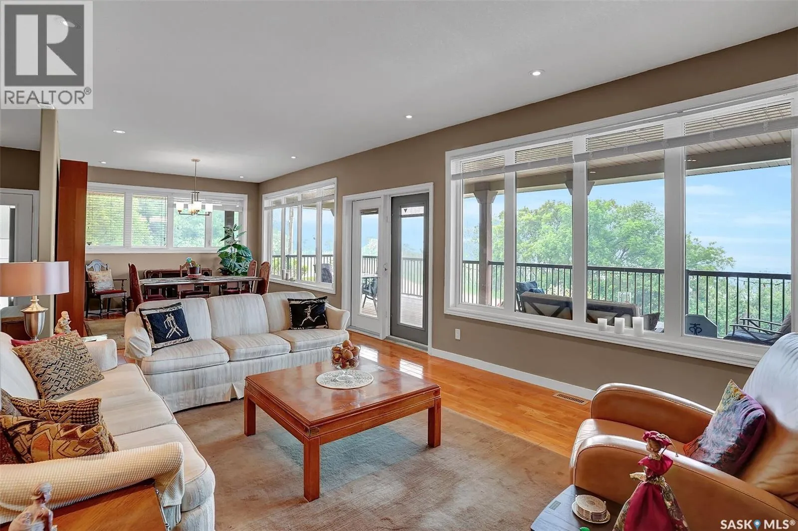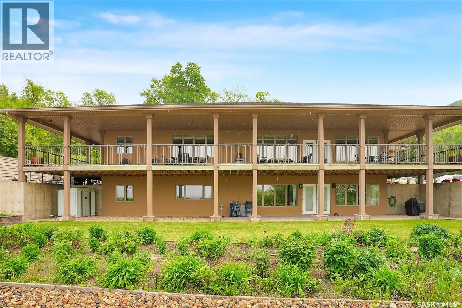 1 mile east of Mission Ridge Winter Park Welcome to 81 Kinsley Place at Mission Lake! WOW! This large walkout delivers incredible, unobstructed views to the lake! This custom, thoughtfully designed home offers an abundance of both luxury and practicality! The main level features 3 good size bedrooms + the primary suite that proudly includes a great 3 pc ensuite, walk in closet, and large windows. The formal dining area is open to the living room with gorgeous hardwood floors. The large kitchen is a chef's dream with nutmeg maple cabinets, large island with a quartz top, S/S appliances (Kenmore Elite freezer/fridge combo), built in pantry with rolling drawers, wine rack, tons of counter space/storage and added pot lights. There is a convenient flex room and 2 pc bath tucked away behind the kitchen. The main bath and ensuite boasts heated flooring. The large laundry room includes the washer and dryer, sink, and more storage capacity. The impressive walkout level showcases an 1800 sq ft suite with a large kitchen with crisp white cabinets, full set of appliances, 3 bedrooms, private laundry room, a full 4 pc bath, and patio doors that lead to a large, private patio space. The exterior of this property includes a retaining wall, swale, garden area, ample parking, and a super impressive covered deck that spans the entire length of the home where you could easily have 75+ people comfortably enjoying the sunrise or the sunsets! There has been many large gatherings and even a few weddings on the property! A large insulated and heated double garage with a workshop completes this property. Other important noteables - steel beam construction, original owners, central vac, central air, air exchanger, original drawings available. A true gem in the land of the living skies! (id:27476)