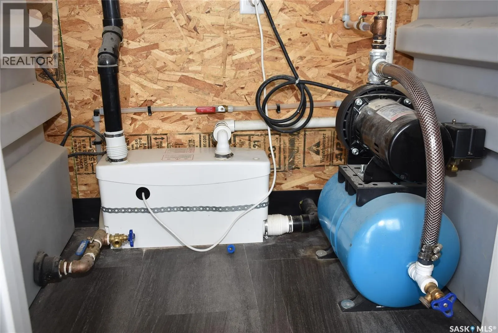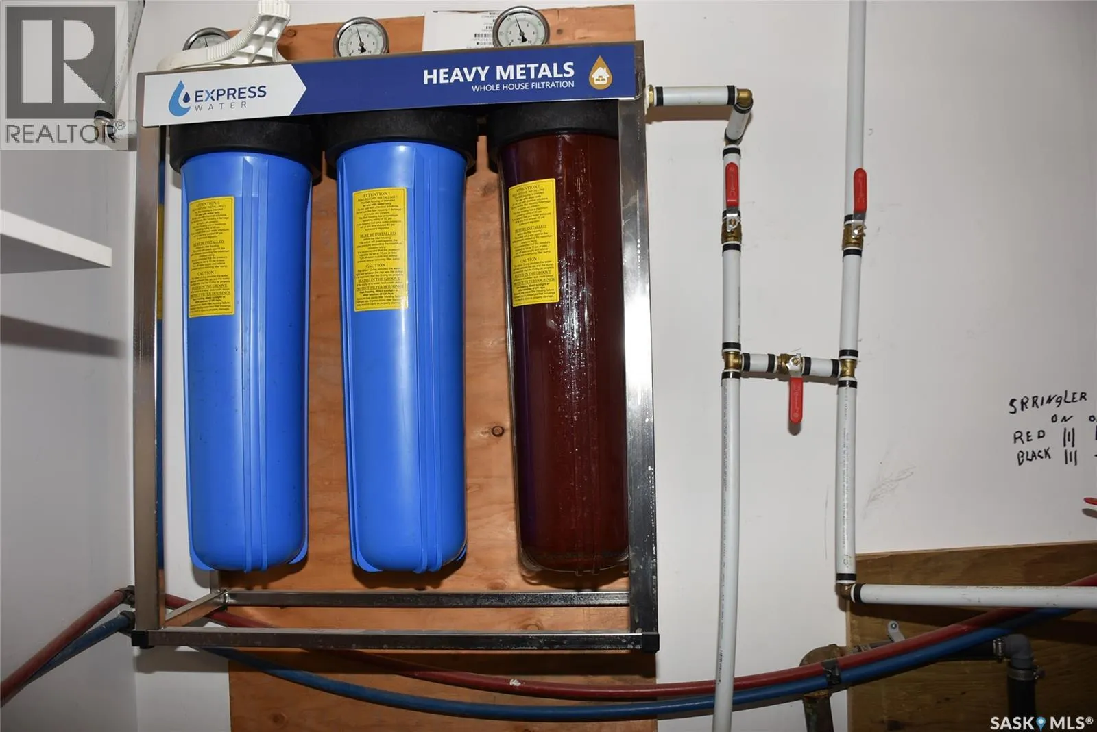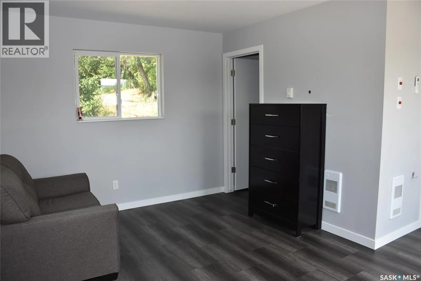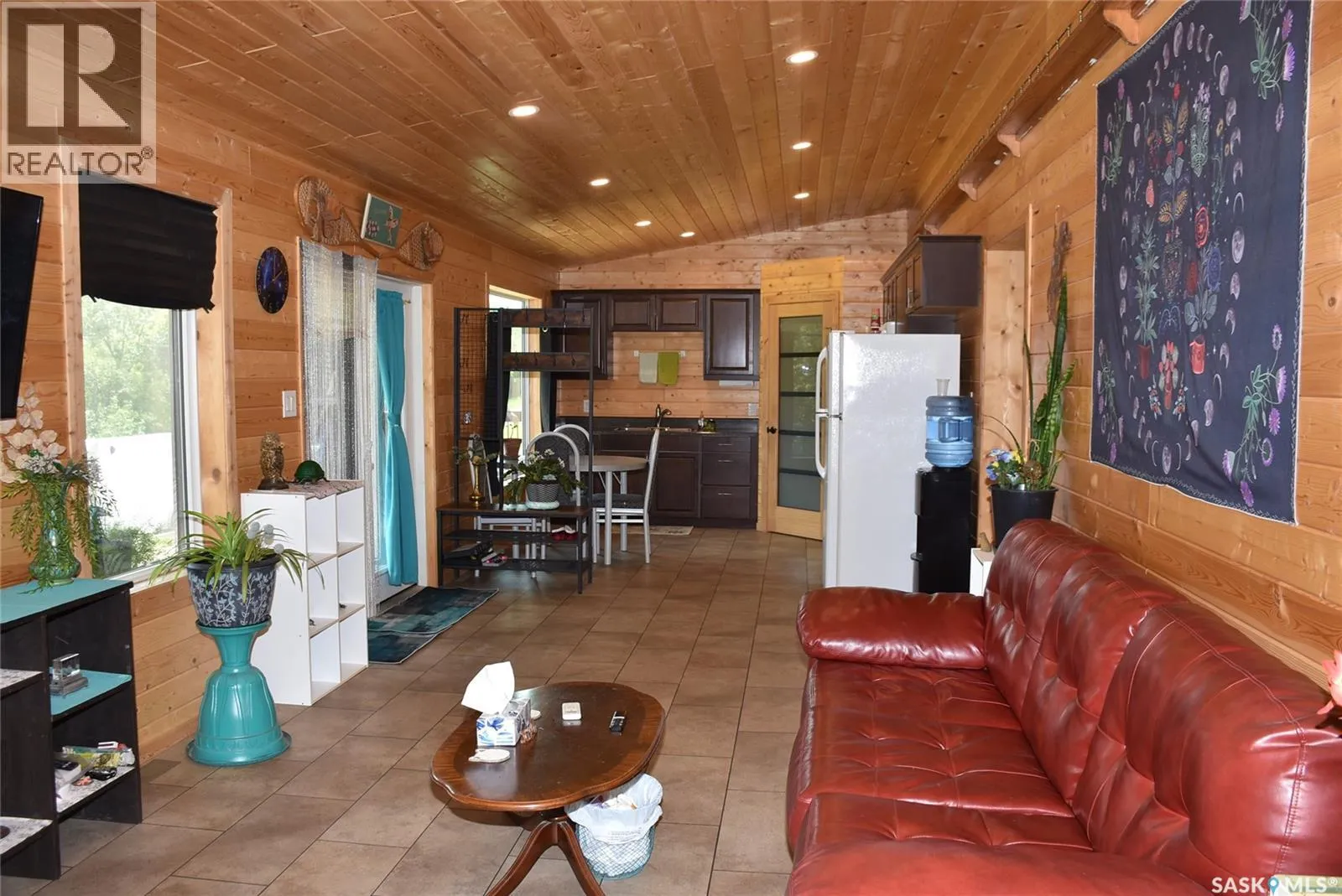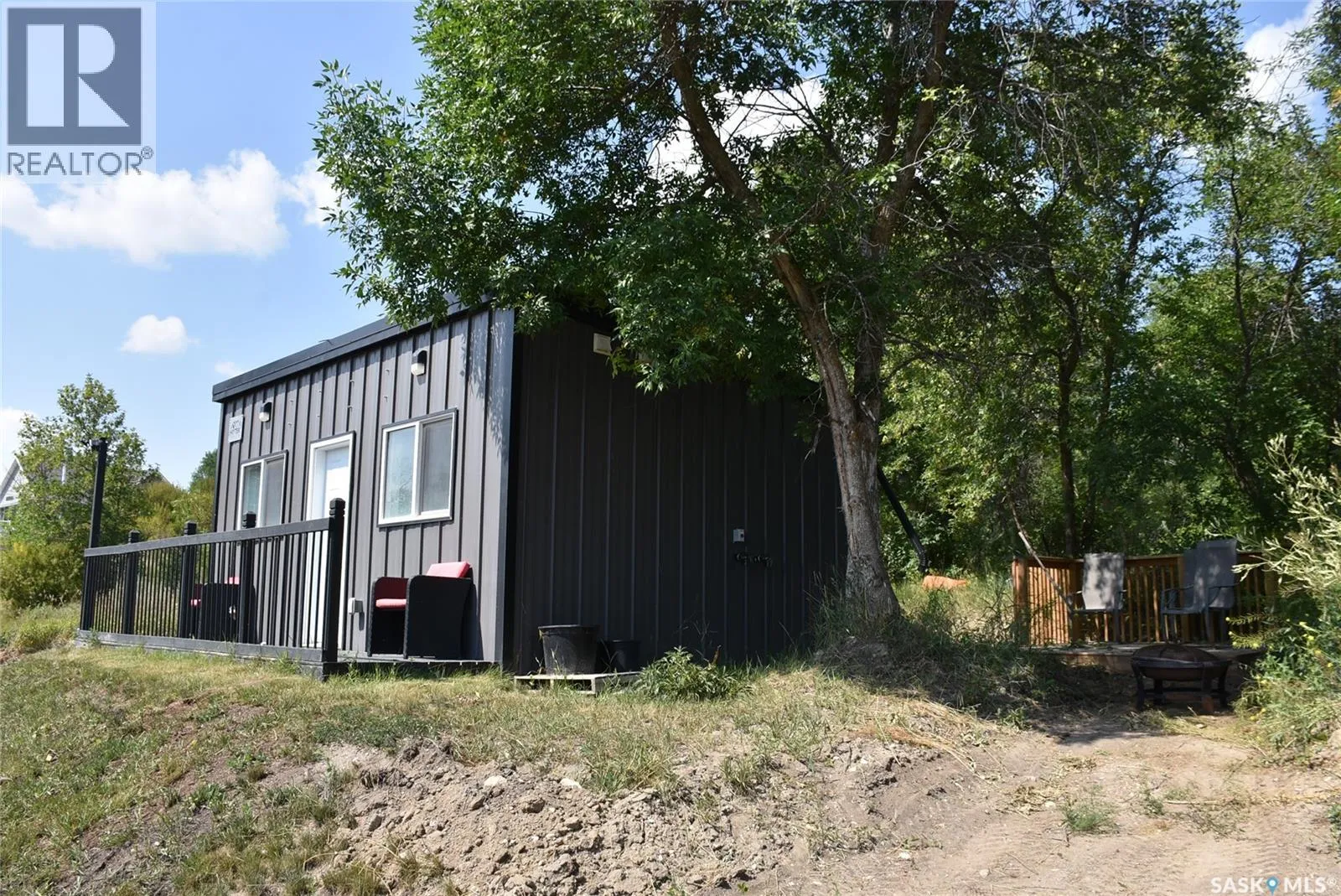 This property offers a private getaway for folks who love the outdoors. Backed just off Pasqua road in beautiful lush green trees you may enjoy privacy and relaxation looking at the manicured lawn (underground sprinkler system) and gardens. Sitting on almost 1 acre of land, there is endless possibility. A gently sloping coulee to the back of the house offers additional room for a firepit area or camping sites. The front porch is large and fully screened in for ultimate comfort. The property includes a new self contained 320 Sq ft mini home with a living area, bathroom, and kitchen area. The mini home also has its own fresh water tank and waste storage unit. When you step inside the home you are greeted by pine ceilings and walls with a large open concept living room and kitchen/dining with great natural light. To the back of the home, there are two bedrooms, one bathroom, and laundry in utility room. This property comes fully furnished as is with beds, couches, table/chairs, cabinets (except personal belongings). The exterior includes vinyl siding and a durable metal roof for low maintenance. (id:27476)