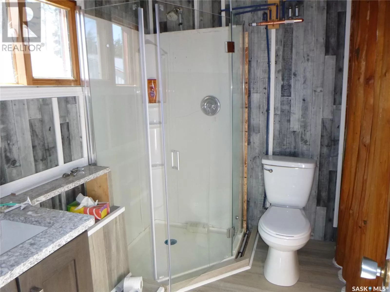 Destination JAN LAKE SK. Just over 2.5 hours on the Hanson Lake road from Smeaton, an opportunity like this does not come very often to own your own titled property at one of Northern Saskatchewan's finest fishing and recreation lake. Nestled amongst the spruce and birch, you will find this one of a kind three season gem located on its own titled 55x110 lot just a short distance to beach and boat launch. And did I mention the fishing? 948 sq ft above grade with 3 bedrooms and 2 bathrooms, open concept living-kitchen-dining area, plenty of upgrades, attached 36x22 garage on pads to store the toys, 600 gallon holding tank with 300 gallon tote to fill, newer storage shed 12x20 and wood shed. Wood burning fireplace in living room keeps the whole place warm on those chilled evenings. Septic tank for sewer, 60 amp panel box, shaw dish, xplornet internet, water room in garage, and plenty of parking. (AND FISHING). Owner does have a boat spot at a shared dock for a $100.00 annual fee. (id:27476)