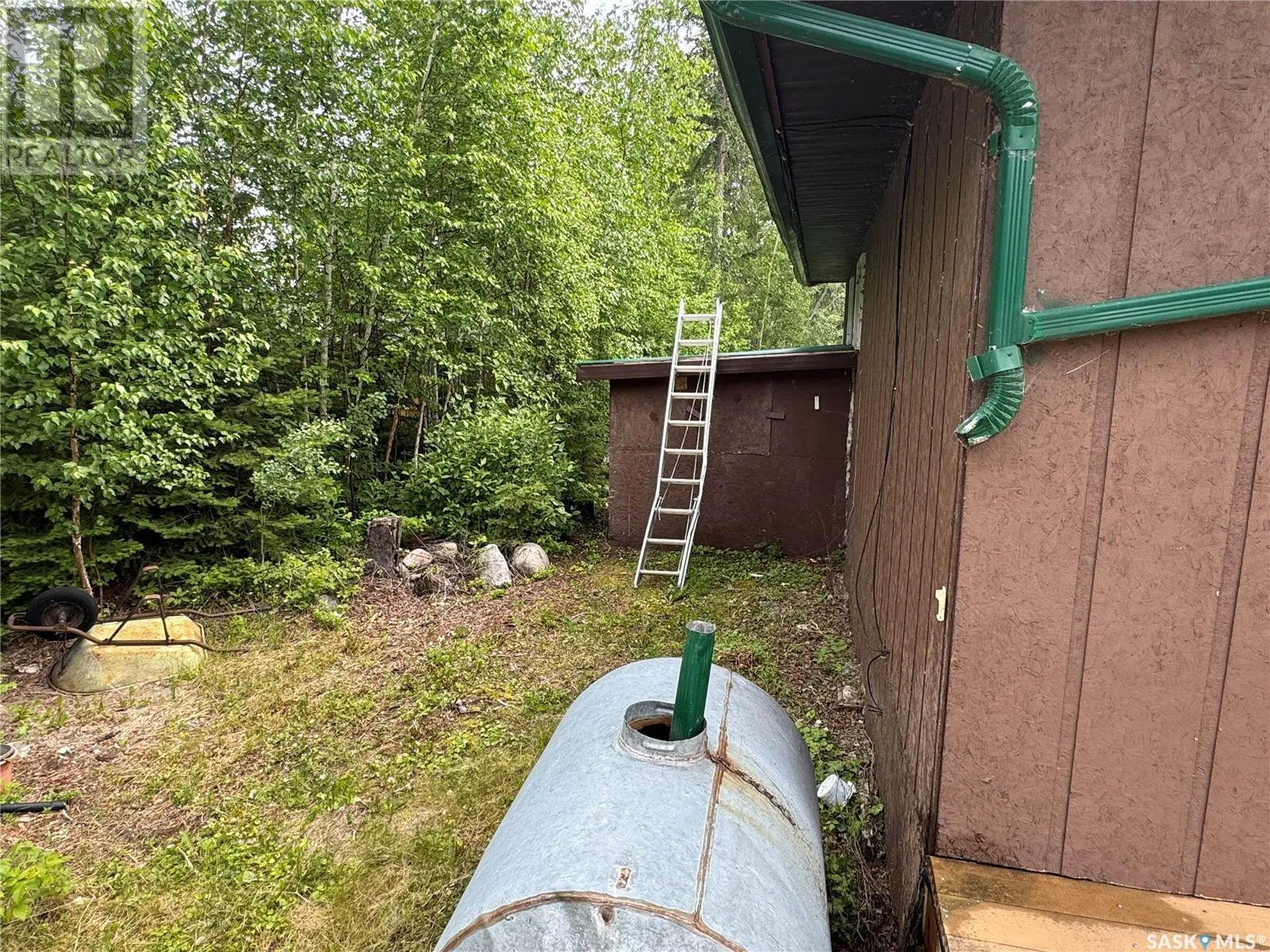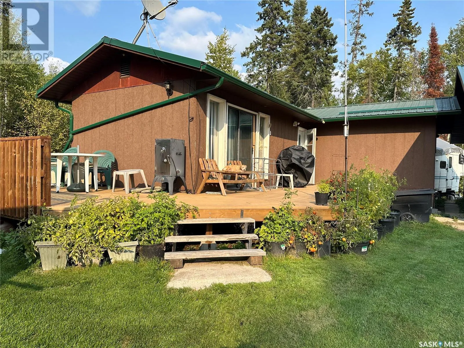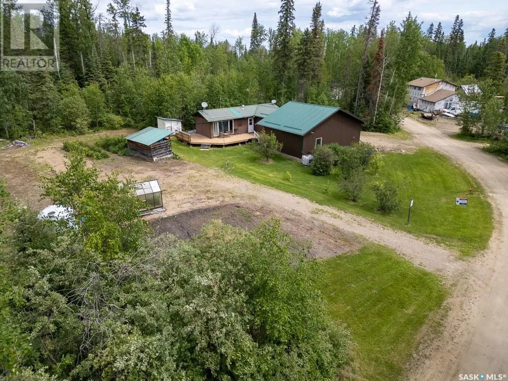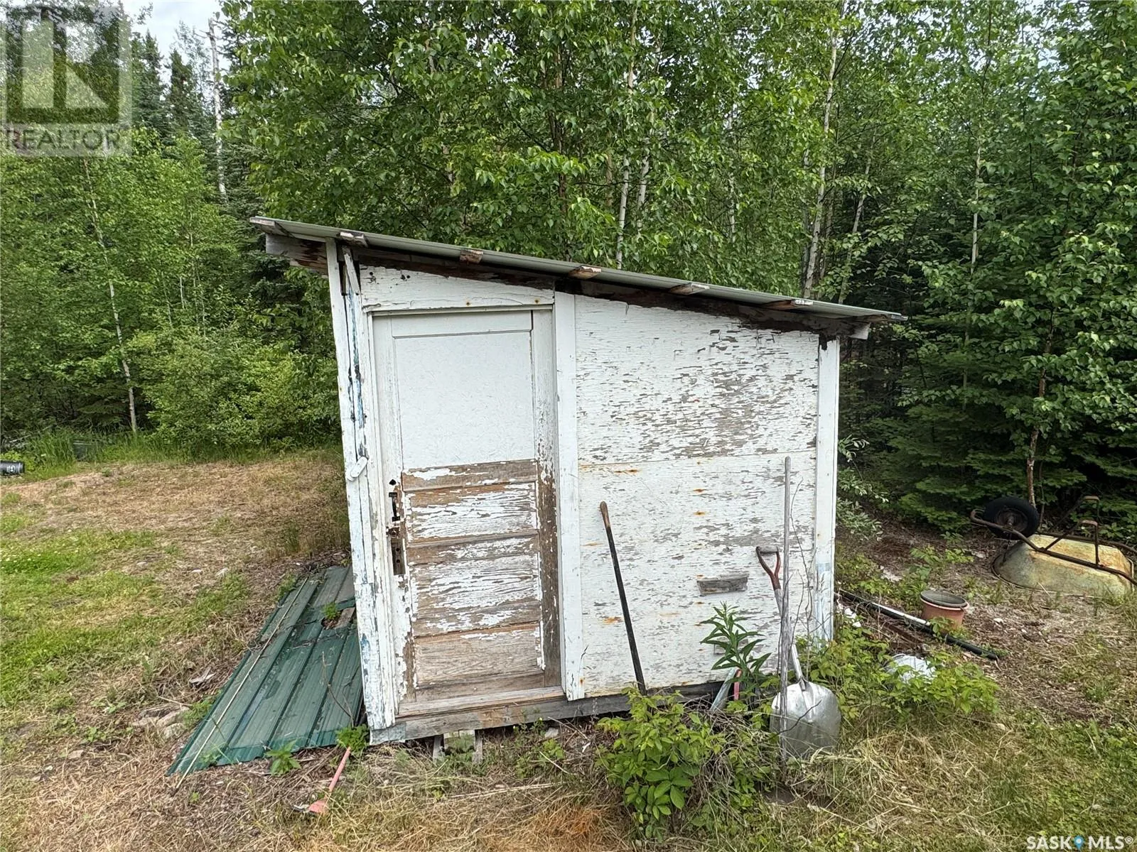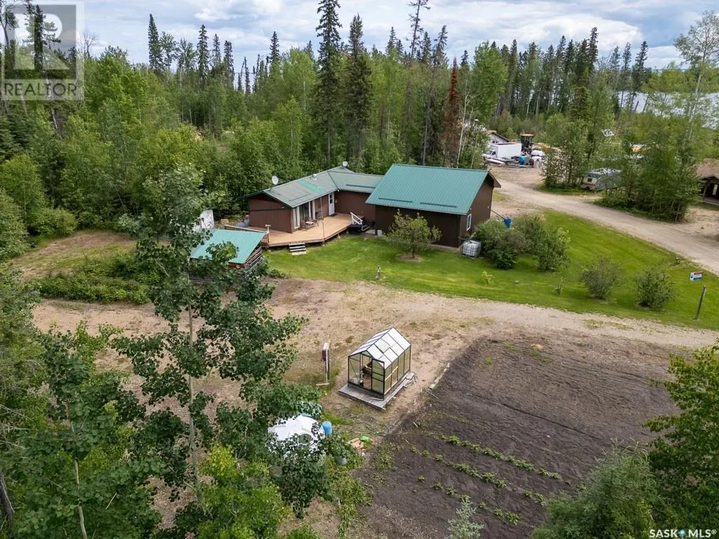 Located in the resort community of Napatak, check out this charming two bedroom home with expansive outdoor space located over two generous lots. This property showcases an impressive array of outdoor features, including a large garden area, flourishing fruit trees, a small greenhouse, a well for watering in the yard, and a wood shed. With ample parking space and a 2 car heated detached shop, this presents a unique opportunity for those seeking a harmonious blend of indoor and outdoor living. Heat source for both the house and shop is supplied by natural gas. At the back of the house, is a water shed that holds a 1200 gallon water tank, and underground you will find a 1100 gallon septic tank. The empty lot has its own well, providing a reliable source of water for your gardening needs. Napatak Recreational Subdivision is located approximately 15 minutes south of La Ronge. Napatak features boat launches, hiking trails and beaches that run along the shores of Lac La Ronge. If you have a green thumb, a passion for projects, or simply value the serenity of this quiet community, this property might be the one for you! (id:27476)