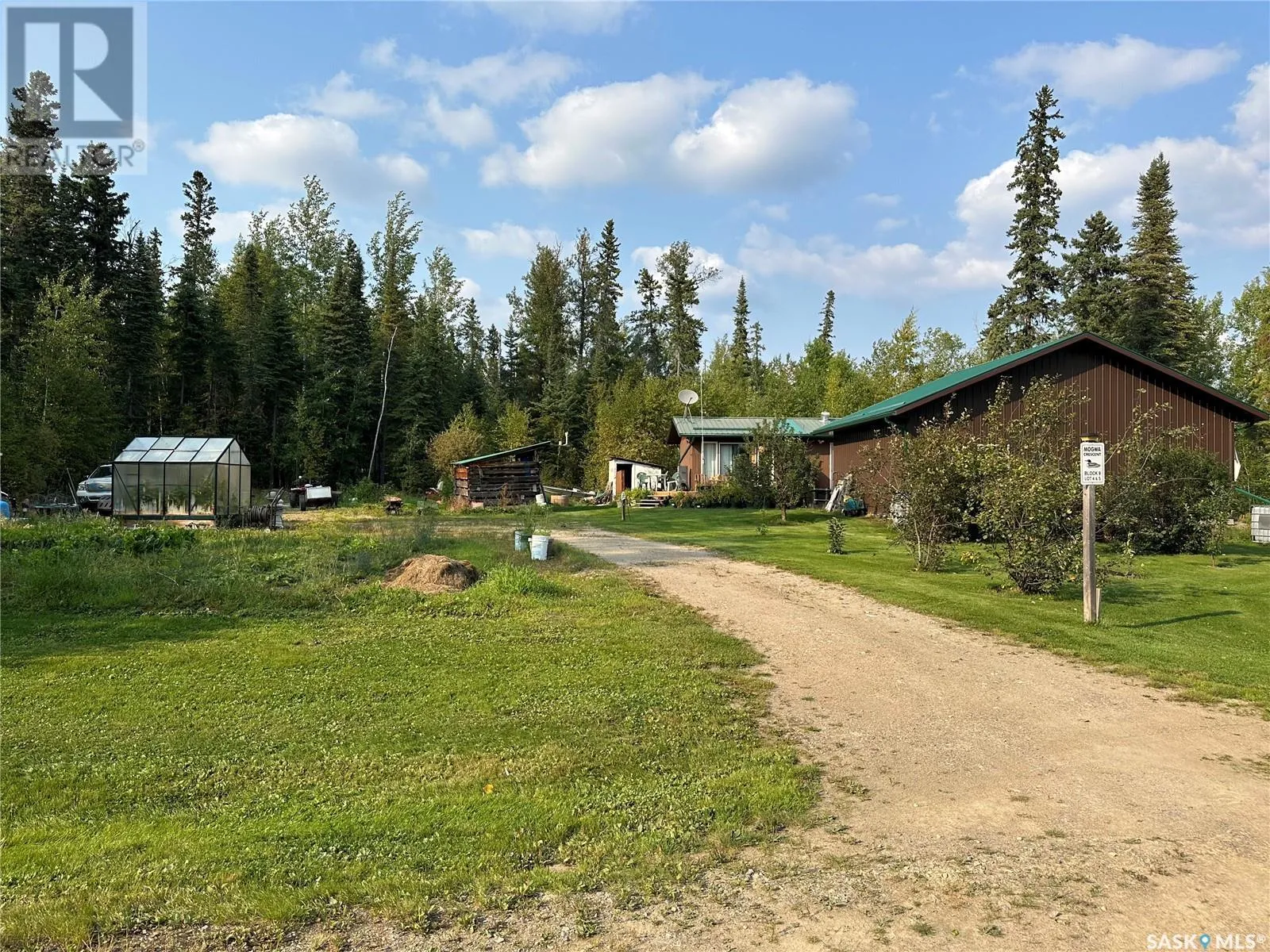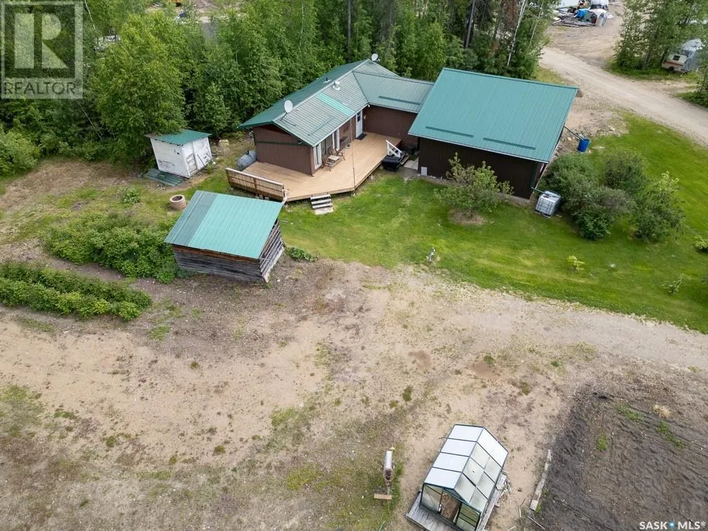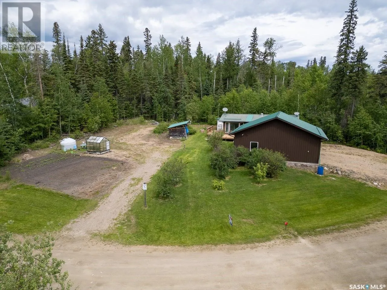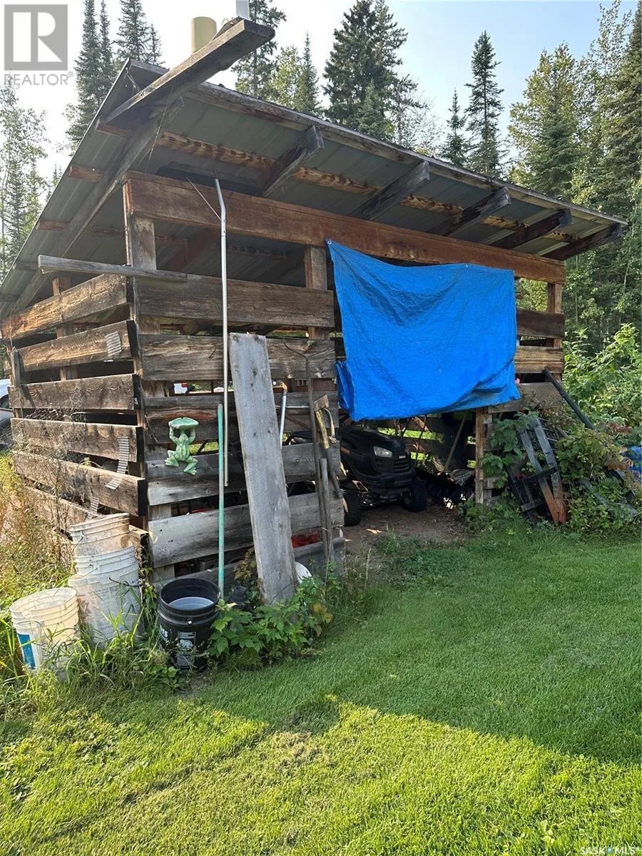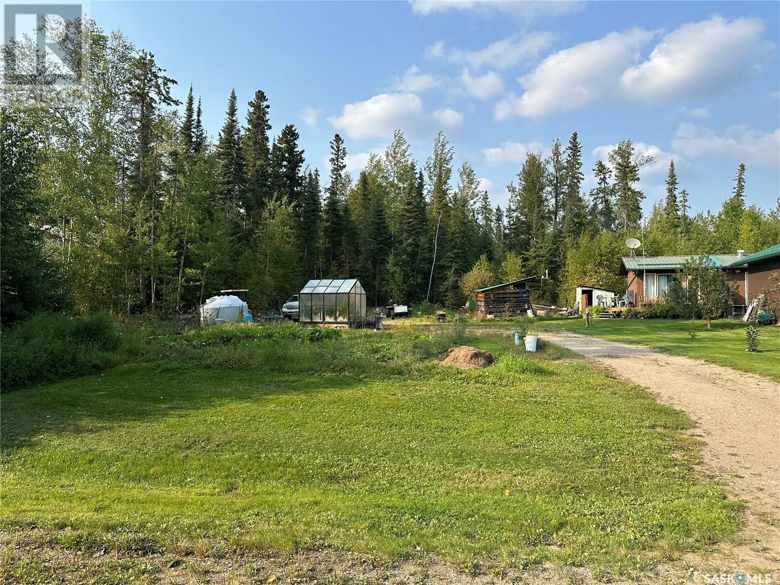 Located in the resort community of Napatak, check out this charming two bedroom home with expansive outdoor space located over two generous lots. This property showcases an impressive array of outdoor features, including a large garden area, flourishing fruit trees, a small greenhouse, a well for watering in the yard, and a wood shed. With ample parking space and a 2 car heated detached shop, this presents a unique opportunity for those seeking a harmonious blend of indoor and outdoor living. Heat source for both the house and shop is supplied by natural gas. At the back of the house, is a water shed that holds a 1200 gallon water tank, and underground you will find a 1100 gallon septic tank. The empty lot has its own well, providing a reliable source of water for your gardening needs. Napatak Recreational Subdivision is located approximately 15 minutes south of La Ronge. Napatak features boat launches, hiking trails and beaches that run along the shores of Lac La Ronge. If you have a green thumb, a passion for projects, or simply value the serenity of this quiet community, this property might be the one for you! (id:27476)