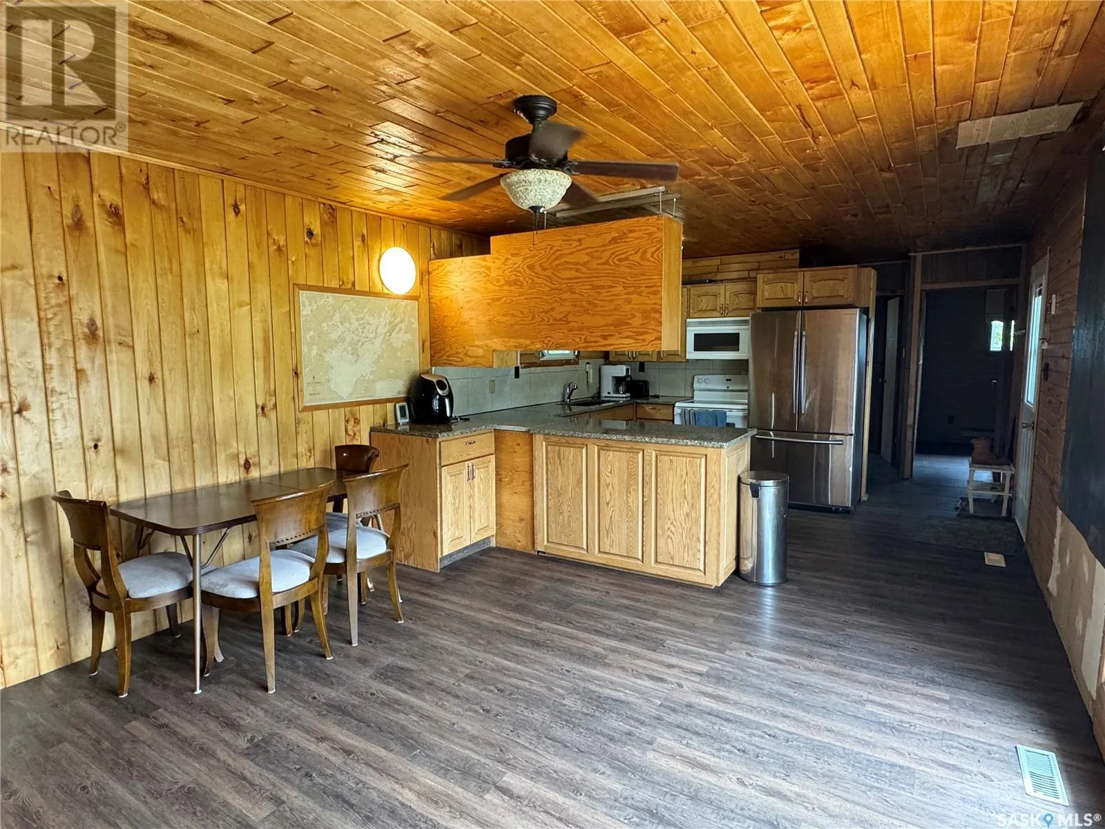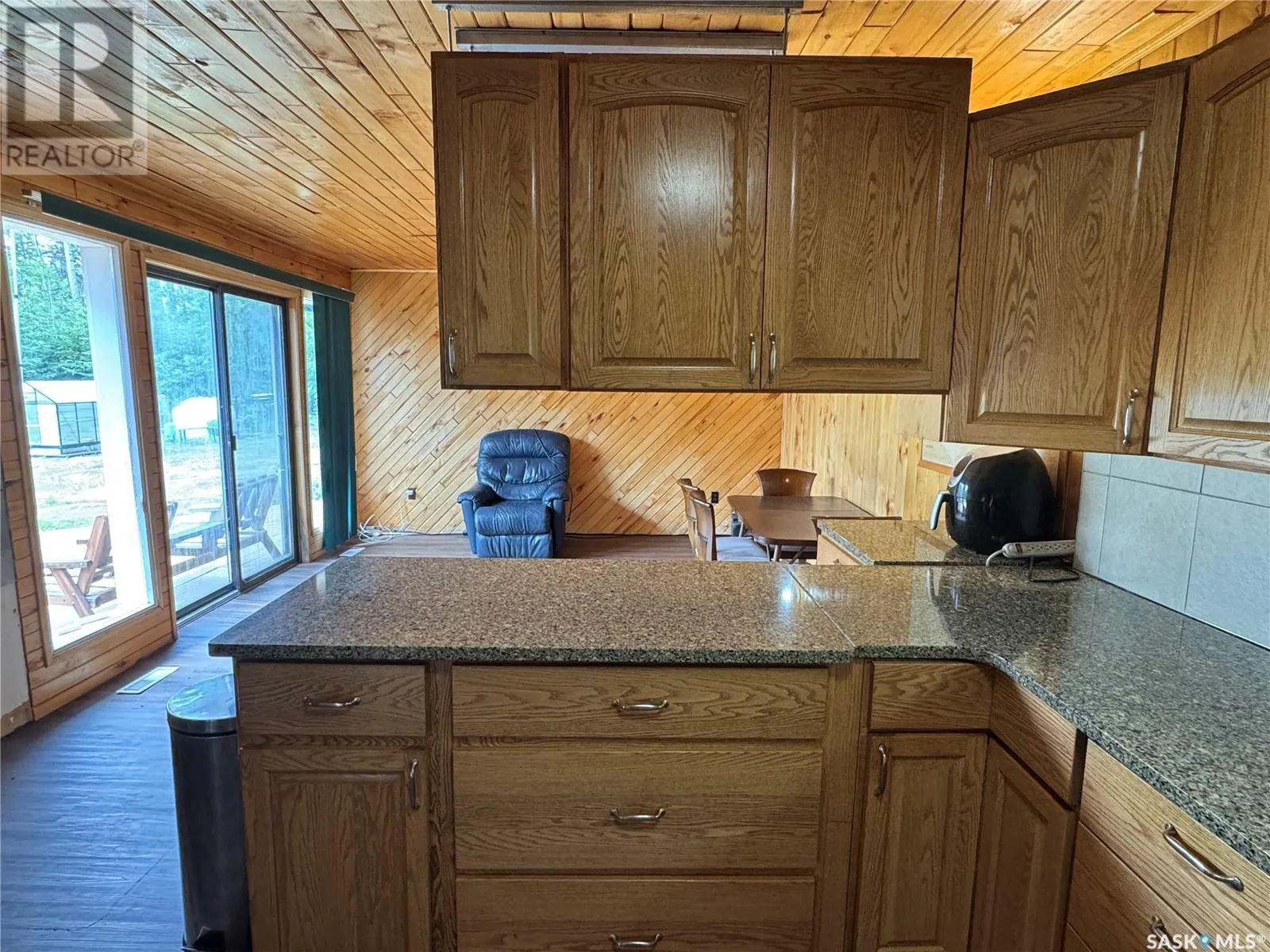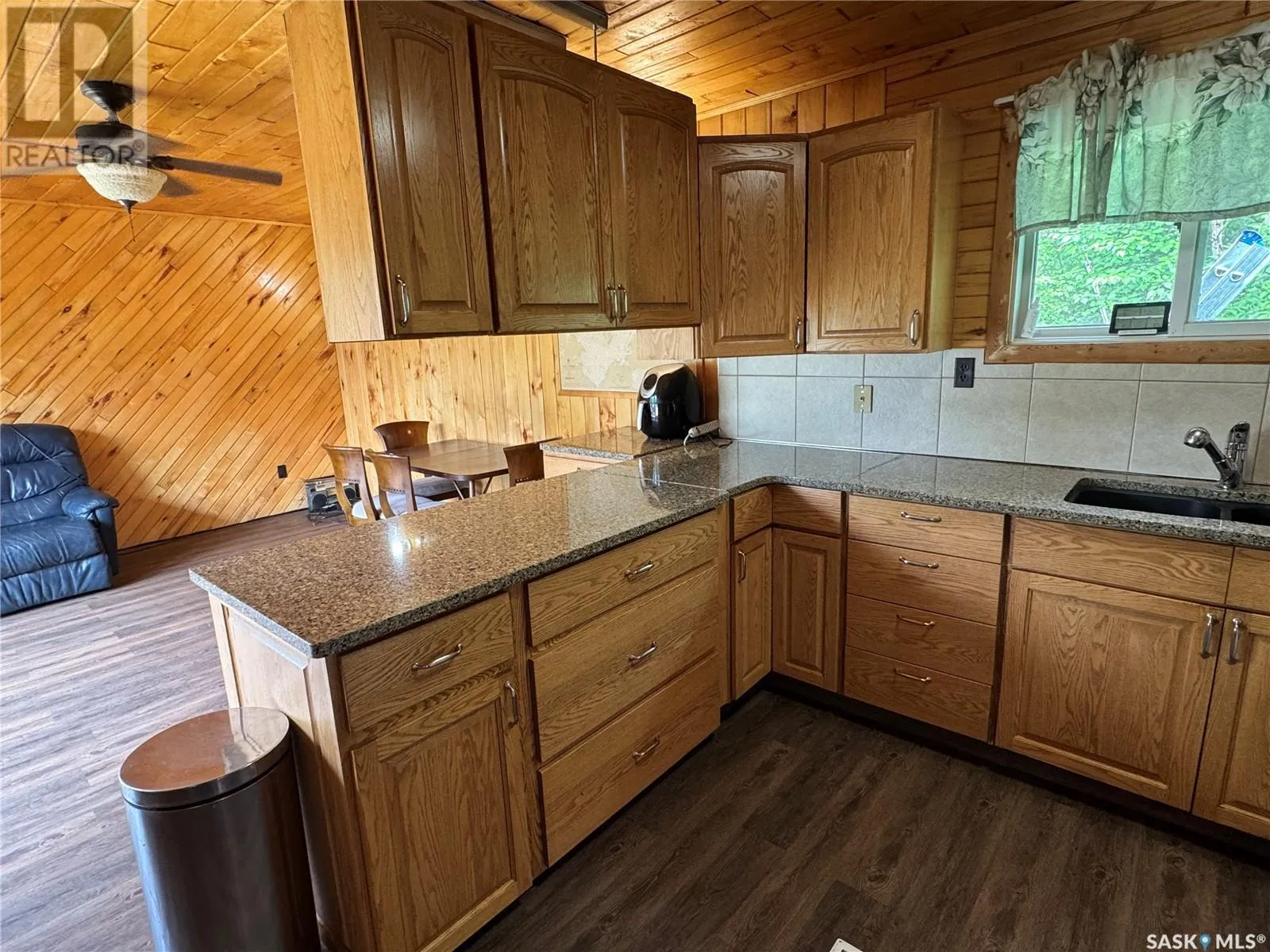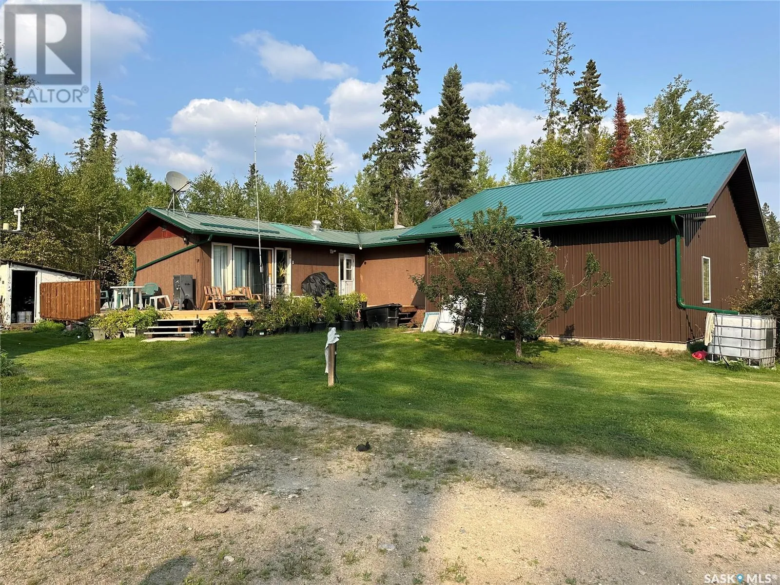 Located in the resort community of Napatak, check out this charming two bedroom home with expansive outdoor space located over two generous lots. This property showcases an impressive array of outdoor features, including a large garden area, flourishing fruit trees, a small greenhouse, a well for watering in the yard, and a wood shed. With ample parking space and a 2 car heated detached shop, this presents a unique opportunity for those seeking a harmonious blend of indoor and outdoor living. Heat source for both the house and shop is supplied by natural gas. At the back of the house, is a water shed that holds a 1200 gallon water tank, and underground you will find a 1100 gallon septic tank. The empty lot has its own well, providing a reliable source of water for your gardening needs. Napatak Recreational Subdivision is located approximately 15 minutes south of La Ronge. Napatak features boat launches, hiking trails and beaches that run along the shores of Lac La Ronge. If you have a green thumb, a passion for projects, or simply value the serenity of this quiet community, this property might be the one for you! (id:27476)