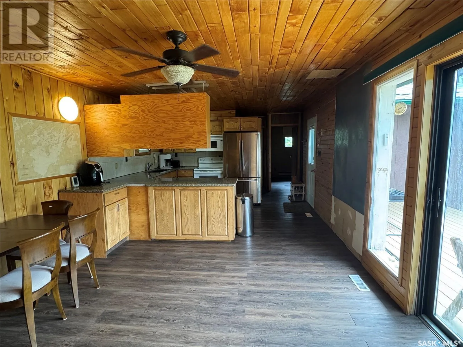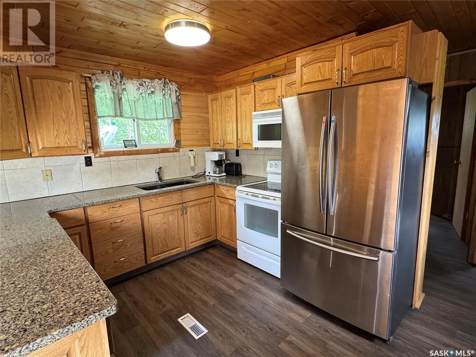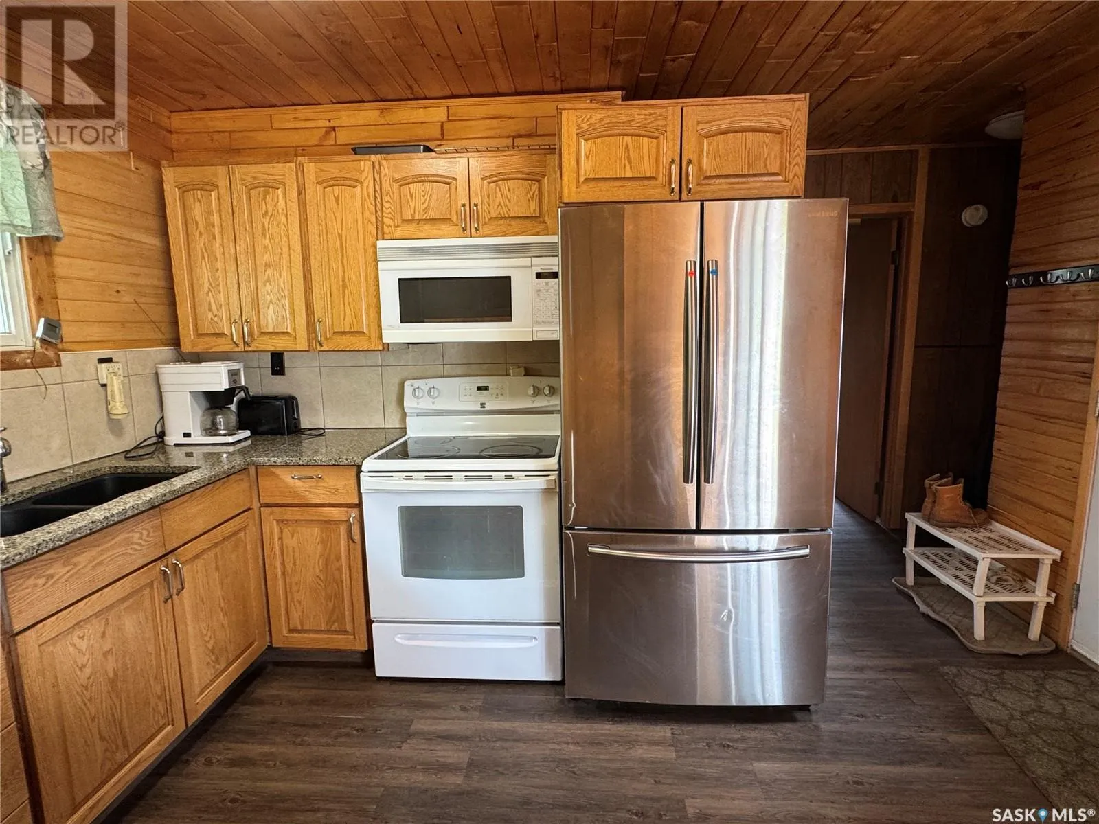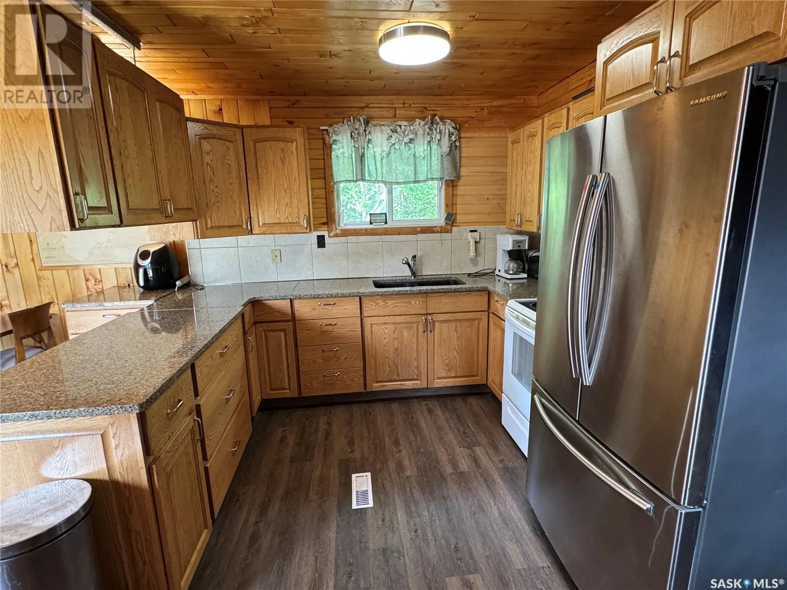 Located in the resort community of Napatak, check out this charming two bedroom home with expansive outdoor space located over two generous lots. This property showcases an impressive array of outdoor features, including a large garden area, flourishing fruit trees, a small greenhouse, a well for watering in the yard, and a wood shed. With ample parking space and a 2 car heated detached shop, this presents a unique opportunity for those seeking a harmonious blend of indoor and outdoor living. Heat source for both the house and shop is supplied by natural gas. At the back of the house, is a water shed that holds a 1200 gallon water tank, and underground you will find a 1100 gallon septic tank. The empty lot has its own well, providing a reliable source of water for your gardening needs. Napatak Recreational Subdivision is located approximately 15 minutes south of La Ronge. Napatak features boat launches, hiking trails and beaches that run along the shores of Lac La Ronge. If you have a green thumb, a passion for projects, or simply value the serenity of this quiet community, this property might be the one for you! (id:27476)
