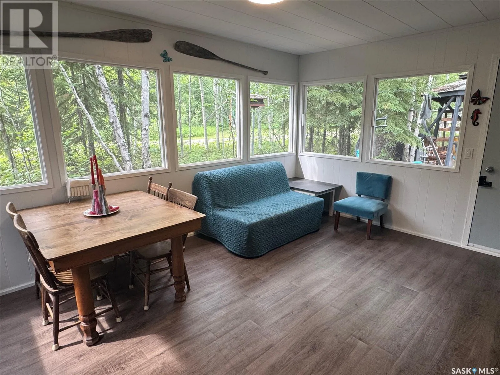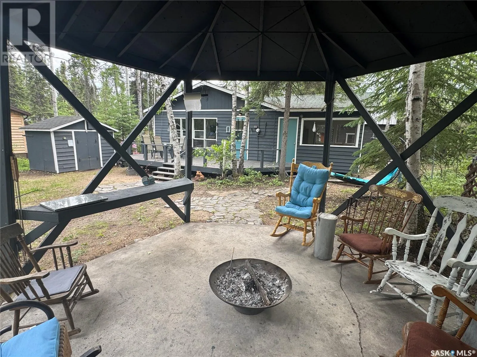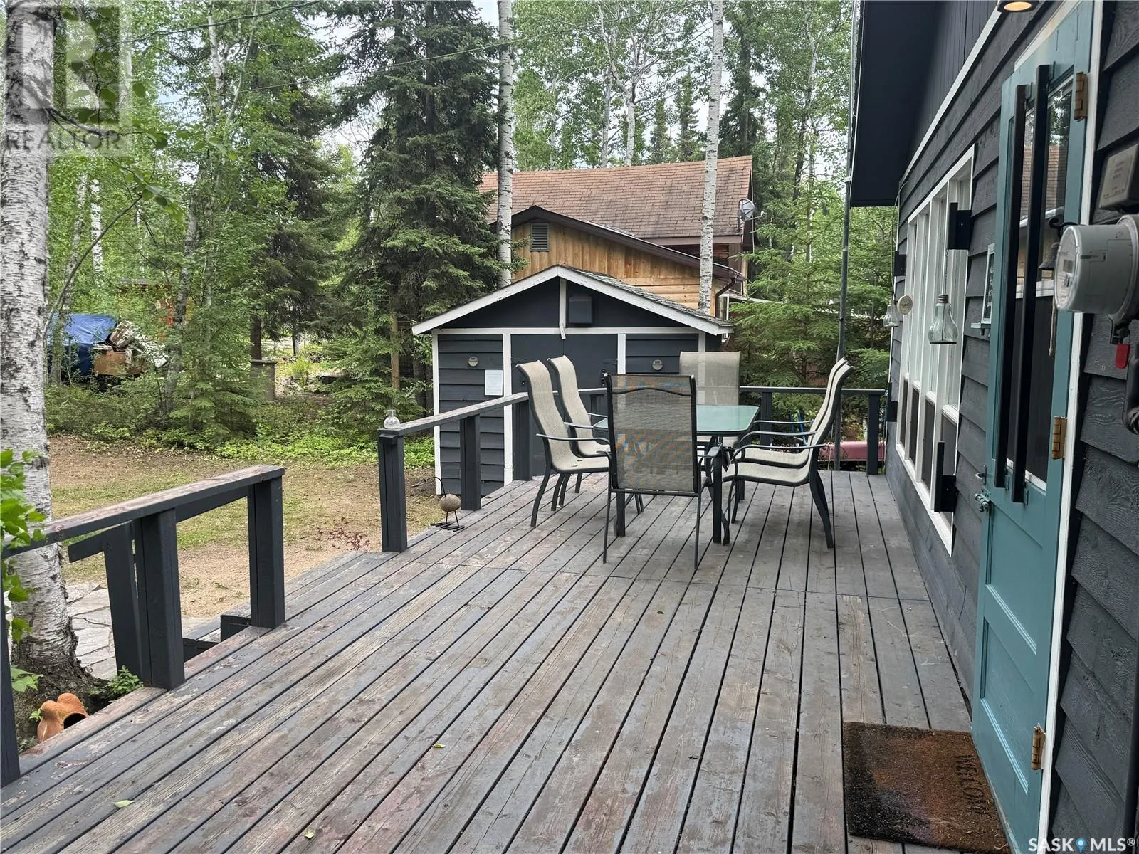 Check out this ADORABLE cabin at Wadin Bay with a bonus Bunkie! This 2 bedroom & 1 bathroom cottage is set up to sleep 10-12 and has been renovated top to bottom in recent years with new kitchen cabinets & countertops, and fresh paint and vinyl plank flooring throughout. The cutest bunkie around is ready to sleep 4 guests with a queen bed below and a queen up in the loft. There is plenty of parking for all of your toys in the massive front driveway and your guests can park right at the bunkhouse for their convenience. The open concept living space has a beachy feel and flows through to a large screen room set up to be your indoor dining space and a sleeping porch to accommodate even more guests. Both of the bedrooms feature built-in bed frames - the kids will love their custom double over double bunkbeds! You can enjoy the sun out on your front deck and or hang out in the shade in the firepit gazebo area and the clothesline is waiting for you to come back from the beach to dry all of your towels and bathing suits. Situated in a great location at Wadin Bay, this large corner lot is only a couple of blocks from both the beach and the boat launch. It will come with most larger furniture items, so you don't have to bring a u-haul of items with you to move in. The cabin could easily be set up for year round enjoyment with the water holding tank in a heated/insulated addition. There is so much to love about this cabin - set up your private viewing right away! (id:27476)