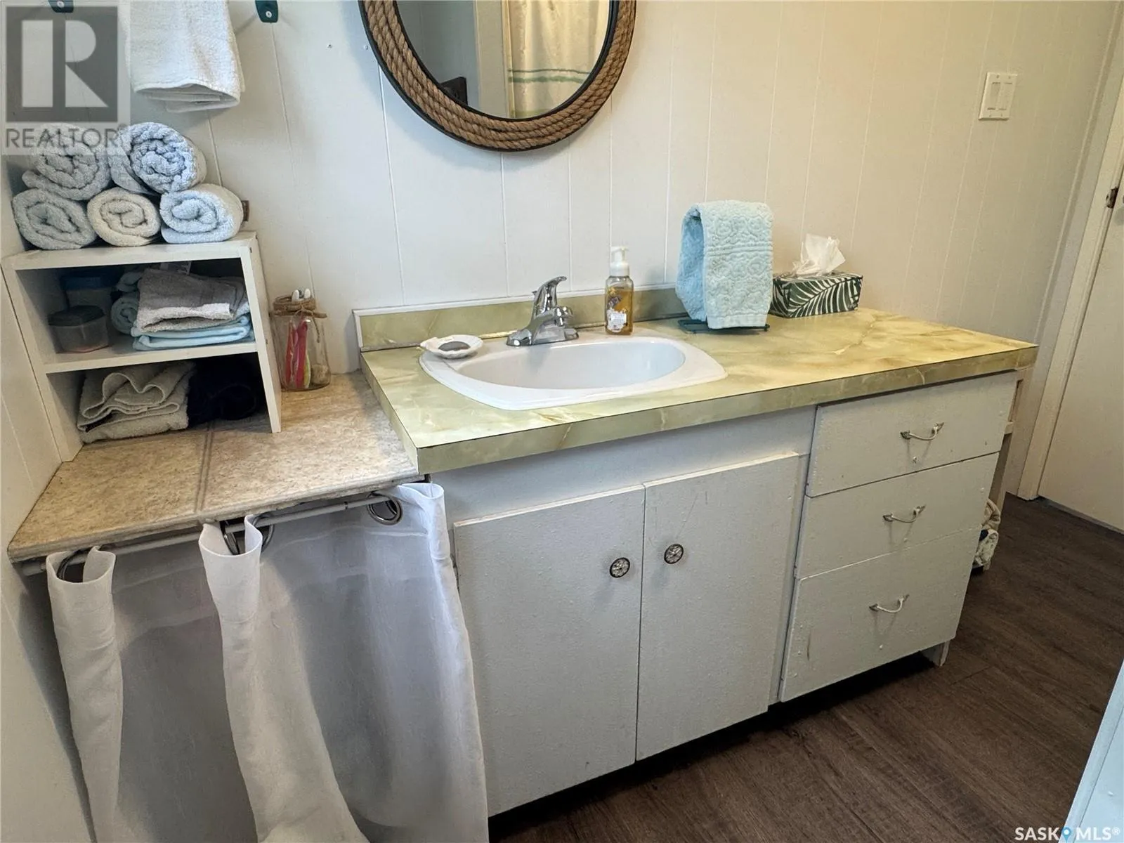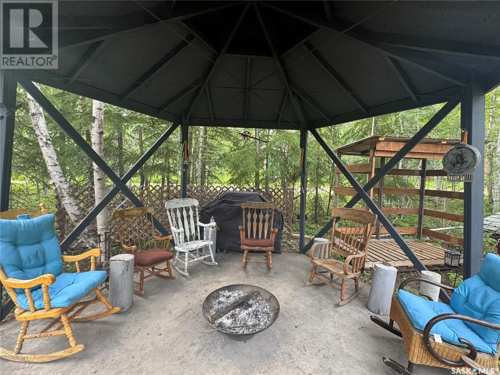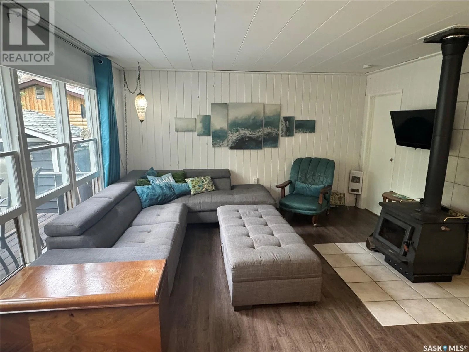 Check out this ADORABLE cabin at Wadin Bay with a bonus Bunkie! This 2 bedroom & 1 bathroom cottage is set up to sleep 10-12 and has been renovated top to bottom in recent years with new kitchen cabinets & countertops, and fresh paint and vinyl plank flooring throughout. The cutest bunkie around is ready to sleep 4 guests with a queen bed below and a queen up in the loft. There is plenty of parking for all of your toys in the massive front driveway and your guests can park right at the bunkhouse for their convenience. The open concept living space has a beachy feel and flows through to a large screen room set up to be your indoor dining space and a sleeping porch to accommodate even more guests. Both of the bedrooms feature built-in bed frames - the kids will love their custom double over double bunkbeds! You can enjoy the sun out on your front deck and or hang out in the shade in the firepit gazebo area and the clothesline is waiting for you to come back from the beach to dry all of your towels and bathing suits. Situated in a great location at Wadin Bay, this large corner lot is only a couple of blocks from both the beach and the boat launch. It will come with most larger furniture items, so you don't have to bring a u-haul of items with you to move in. The cabin could easily be set up for year round enjoyment with the water holding tank in a heated/insulated addition. There is so much to love about this cabin - set up your private viewing right away! (id:27476)