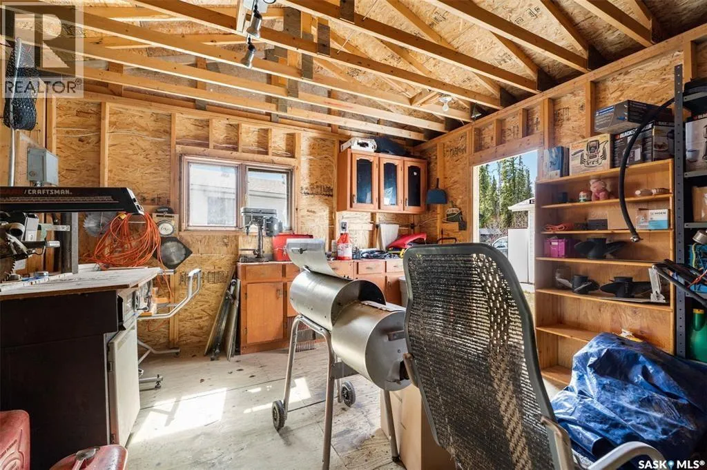 Discover one of the most desirable locations at Ramsey Bay Resort Subdivision, Weyakwin Lake. This oversized pie-shaped lot spans 0.79 acres, backing onto crown land and lakefront at the end of a quiet cul-de-sacâoffering unmatched privacy while still being close to the water. Just far enough from the boat launch and filleting shack, itâs the perfect balance of convenience and seclusion. This year-round 4-season cabin home offers nearly 2,000 sq. ft. of living space, originally built in 1977 with thoughtful additions in 1998 and 2014. Inside, youâll find four bedrooms plus an office and storage room that can easily double as additional sleeping quarters, along with two bathrooms including an ensuite off the primary. Warm pine finishes, vaulted ceilings, and a skylit dining area create a true Northern cabin atmosphere. The property is well set up for lake life and adventure, featuring a 24x26 insulated and heated garage with wood heatâperfect for working on sleds, quads, or boatsâalong with a 14x20 workshop shed built in 2011. A screened-in porch offers the ideal space to enjoy summer evenings, ready for fishing trips and northern lake adventures. Outdoors enthusiasts will love the endless opportunities for fishing, hunting, snowmobiling, and four-season recreation right from the doorstep. Ramsey Bay is a tightly knit, welcoming community where neighbors look out for each other, and properties are often privately held for generationsâmaking this offering a rare opportunity. Heated with propane and electric, with natural gas available in the area, the cabin is ready for your finishing touches and personal style. Enjoy a higher level of water security with a 80' well & 1250 gal septic. If youâve been waiting for a private Northern retreat with space for family, friends, and all your toys, this is your chance to own a true piece of lake country paradise. Extras are includedâcontact for full details. (id:27476)