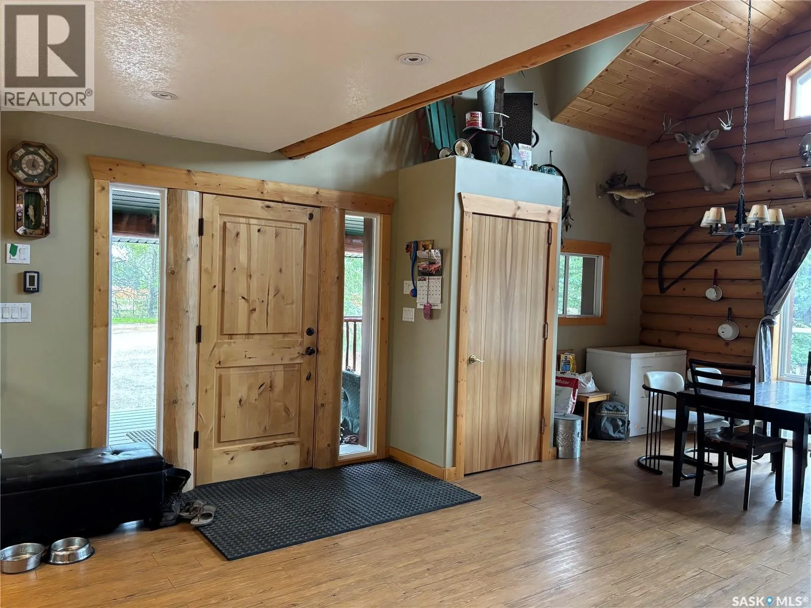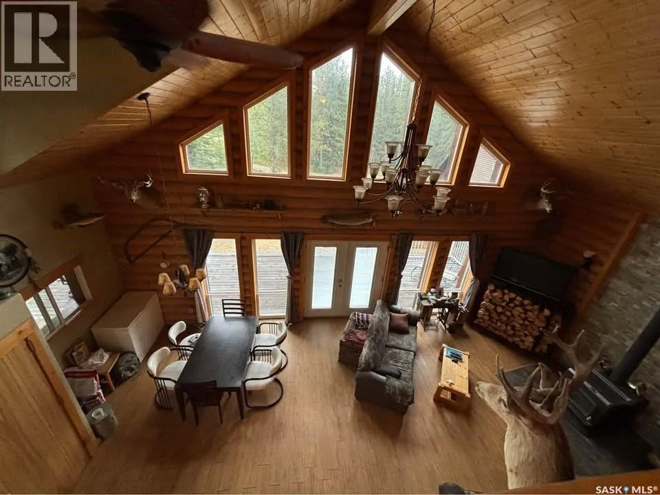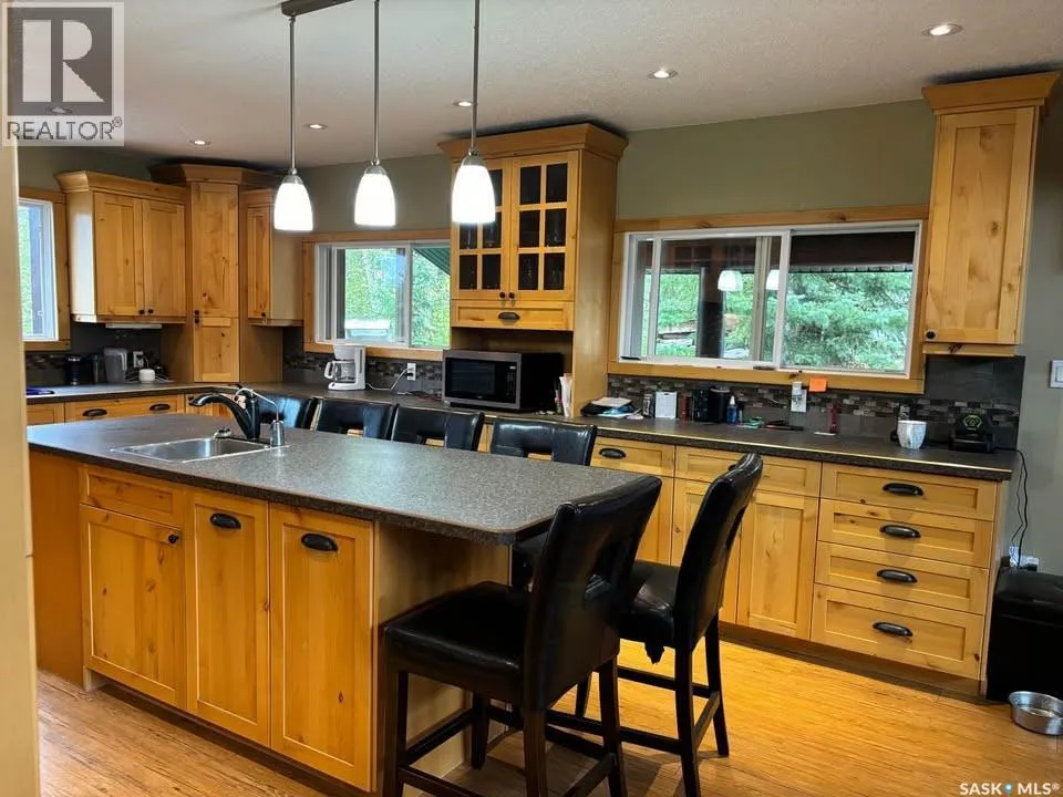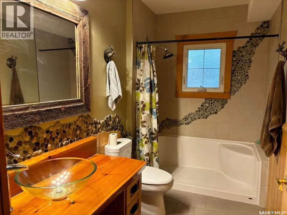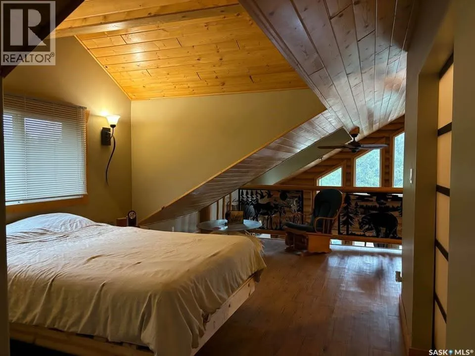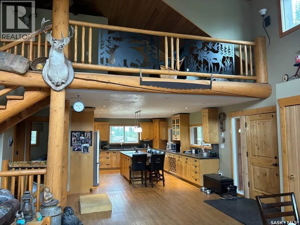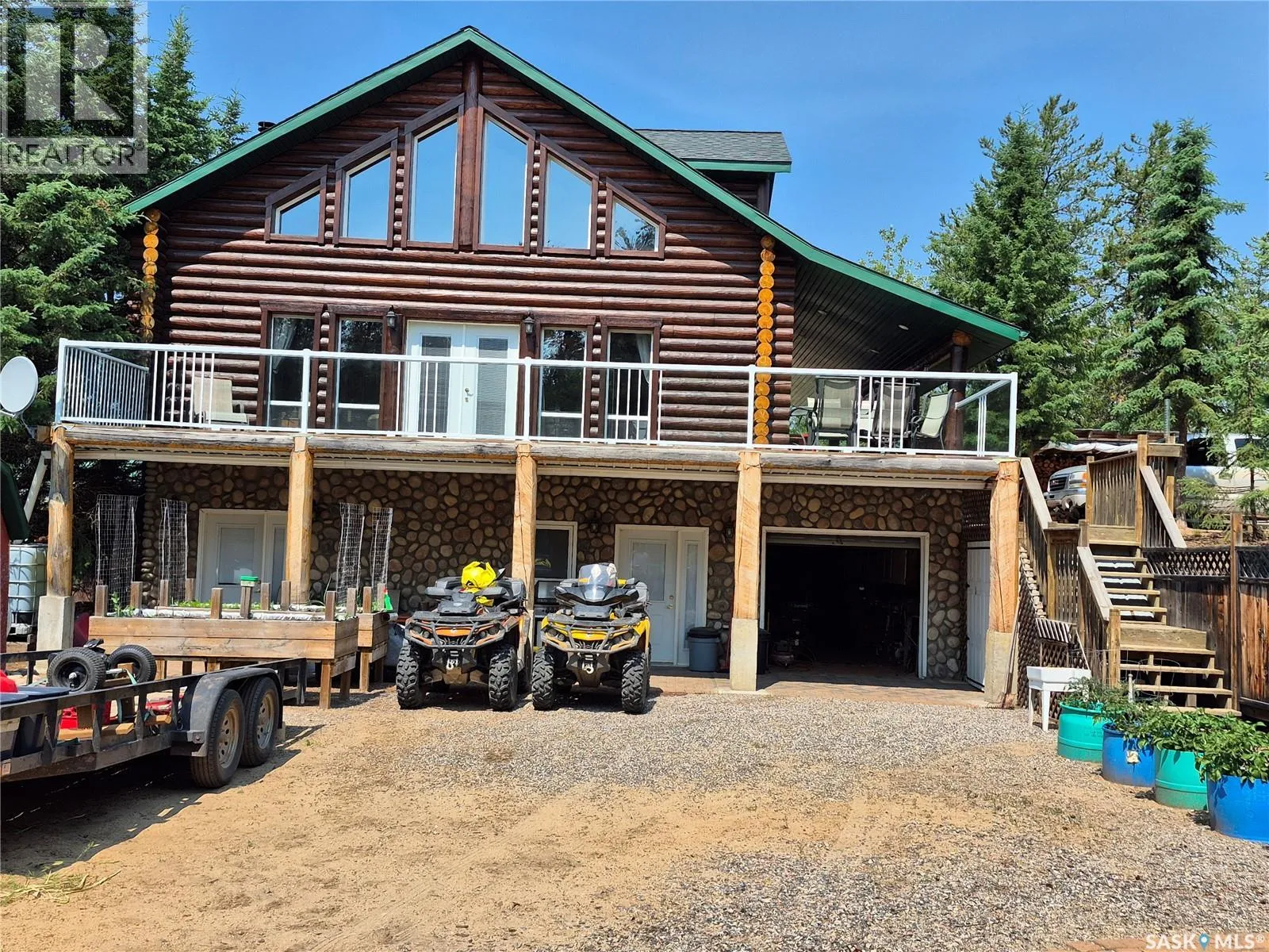 Corner Lot on Cue De Sac, directly across from Government land Charming Year-Round Retreat with Suite at Little Bear Lake Located on a quiet cul-de-sac and backing onto government land, this 1,974 sq ft home with a 900 sq ft walkout basement suite offers the perfect combination of relaxation, recreation, and income potential. Ideal for year-round living or vacation use, the self-contained lower suite is perfect for short-term rentals during peak summer and winter seasons. The property includes a 25' x 25' leased storage lot with two sheds (application and fee required), ideal for ATVs, sleds, and gear. The home features a spacious open-concept layout with a bright living room, dining area, and a large kitchen with island and gas stove. A full eastern wall of windows provides peaceful backyard views and natural light. The main level also includes a bedroom with two double beds and a 3-piece bathroom. Upstairs, the primary retreat boasts a 5-piece ensuite, walk-in closet, and loft-style views over the main floor and yard. The walkout basement suite includes its own kitchen, laundry, two large bedrooms, and space to sleep up to eightâperfect for guests or renters. Additional / other features include : in-floor heating, a wood-burning stove, a newer boiler system, reverse osmosis, a 24 ft sand point well, an 11' x 40' attached garage, extra parking near the walkout, durable log-and-stone siding, 280 gal water holding tank hooked up to a sand point well, 1000 gal septic holding tank, 3 storage sheds in back yard, additional off site storage lot ( needs to be applied for and is a small fee associated with it) - Owner is willing to leave property fully furnished except for his personal belongings and antiques. Little Bear Lake is one of the few Saskatchewan spots where you can ride your ATV directly from your property to the trails. Properties here are rarely availableâthis is a rare chance to own in a sought-after location.-- (id:27476)