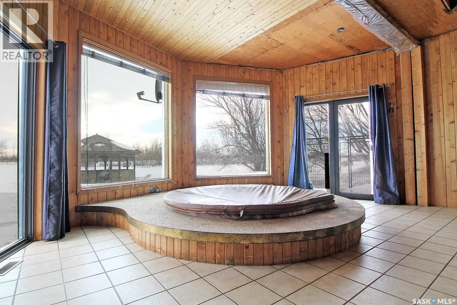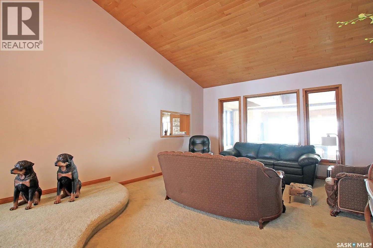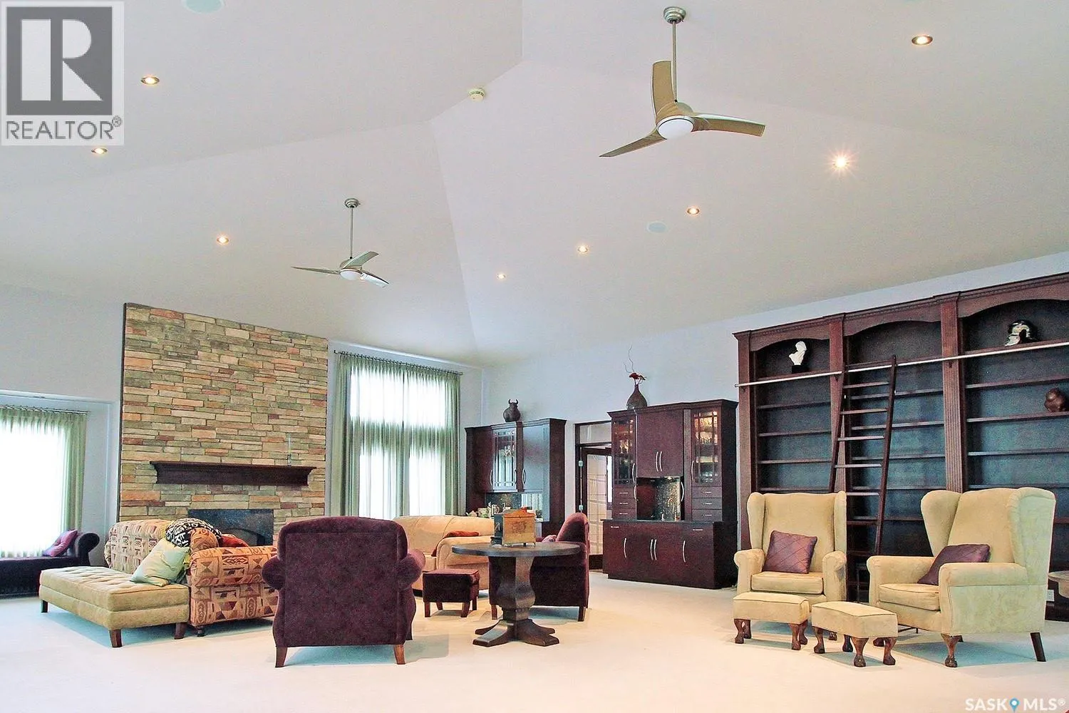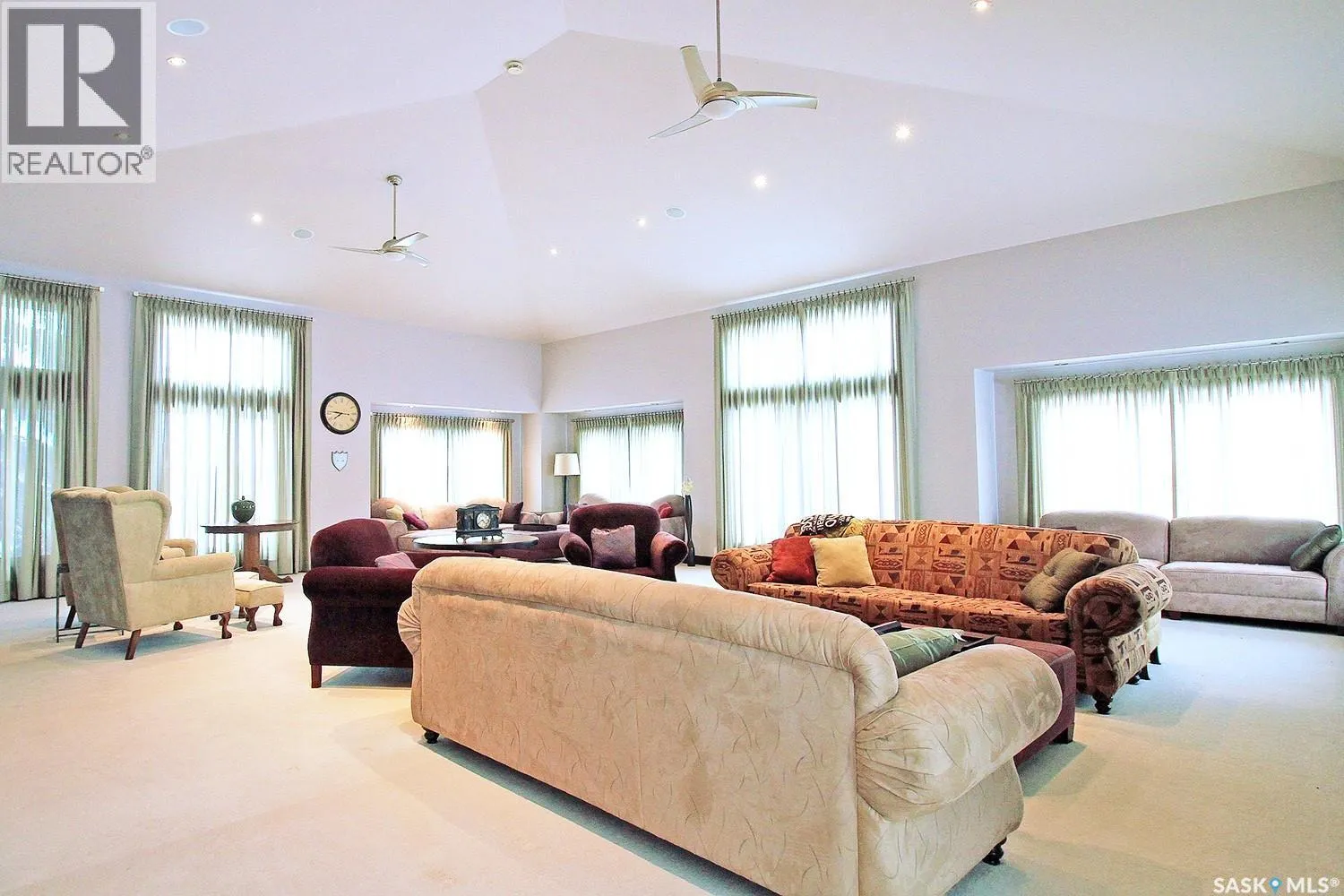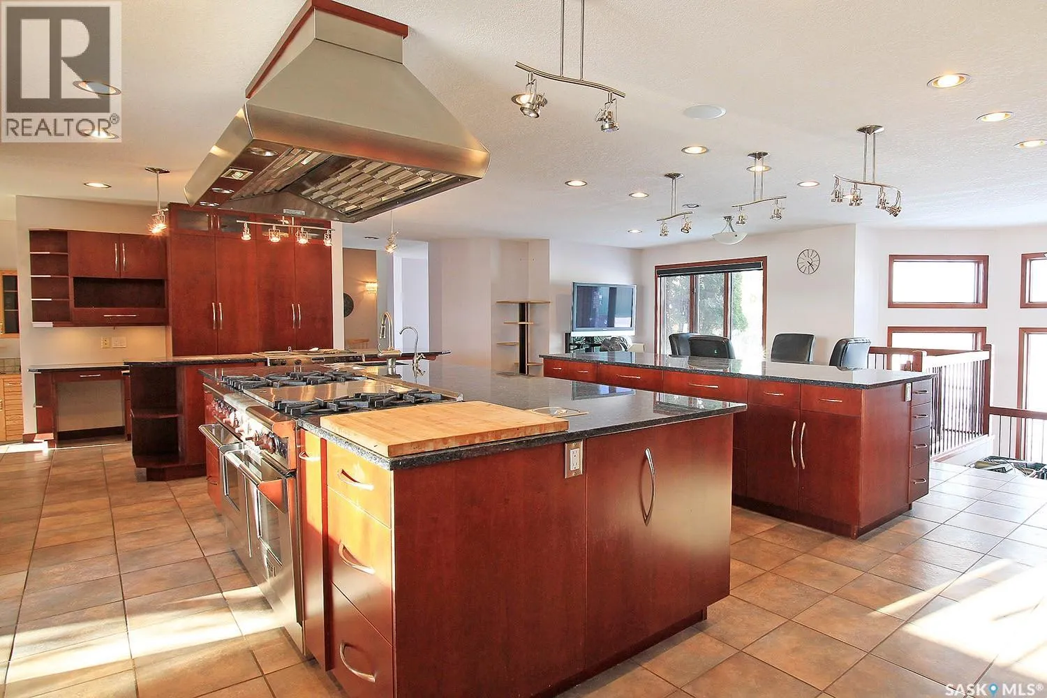 1 1/4 km south of Queen Street on York Lake Road. On the west side Located just 1 ¼ km outside of Yorkton on York Lake Road, this stunning 5,452 sq. ft. bungalow sits on 19 acres of private land. Built in 1988 with a major addition in 2005, this home is truly one of a kind, offering an abundance of space and luxury amenities. The heart of the home is its expansive Great Room, ideal for entertaining on a grand scale. With its soaring ceilings and open concept layout. The chefâs kitchen is equally impressive, featuring both electric and gas ranges, multiple dishwashers, a walk-in cooler, and three separate granite islands. Whether youâre an avid home cook or a professional chef, this kitchen offers everything needed to create incredible meals. This home features five bathrooms, ensuring convenience throughout. The fully developed basement is designed for both entertainment and wellness, featuring a theatre room with a curved full-length screen, projector, and reclining chairs with built-in sound shakers. Designed with comfort in mind, the home is equipped with three furnaces, three air conditioning units, two wood-burning fireplaces, and one gas fireplace. A Generac generator ensures the entire home remains powered when needed. The homeâs infrastructure is built for efficiency and convenience, with three utility rooms housing three electrical panels, two water heaters, a water softener, an iron filtration system, and a commercial reverse osmosis system. For music lovers, speakers are installed inside and outside the home, with touchscreens in the newer addition to control SiriusXM or personal music selections. This remarkable property offers an unparalleled combination of space, luxury, and functionality. Whether youâre looking for a private retreat, an entertainerâs paradise, or a home that can support a business venture, this estate has it all! (id:27476)
