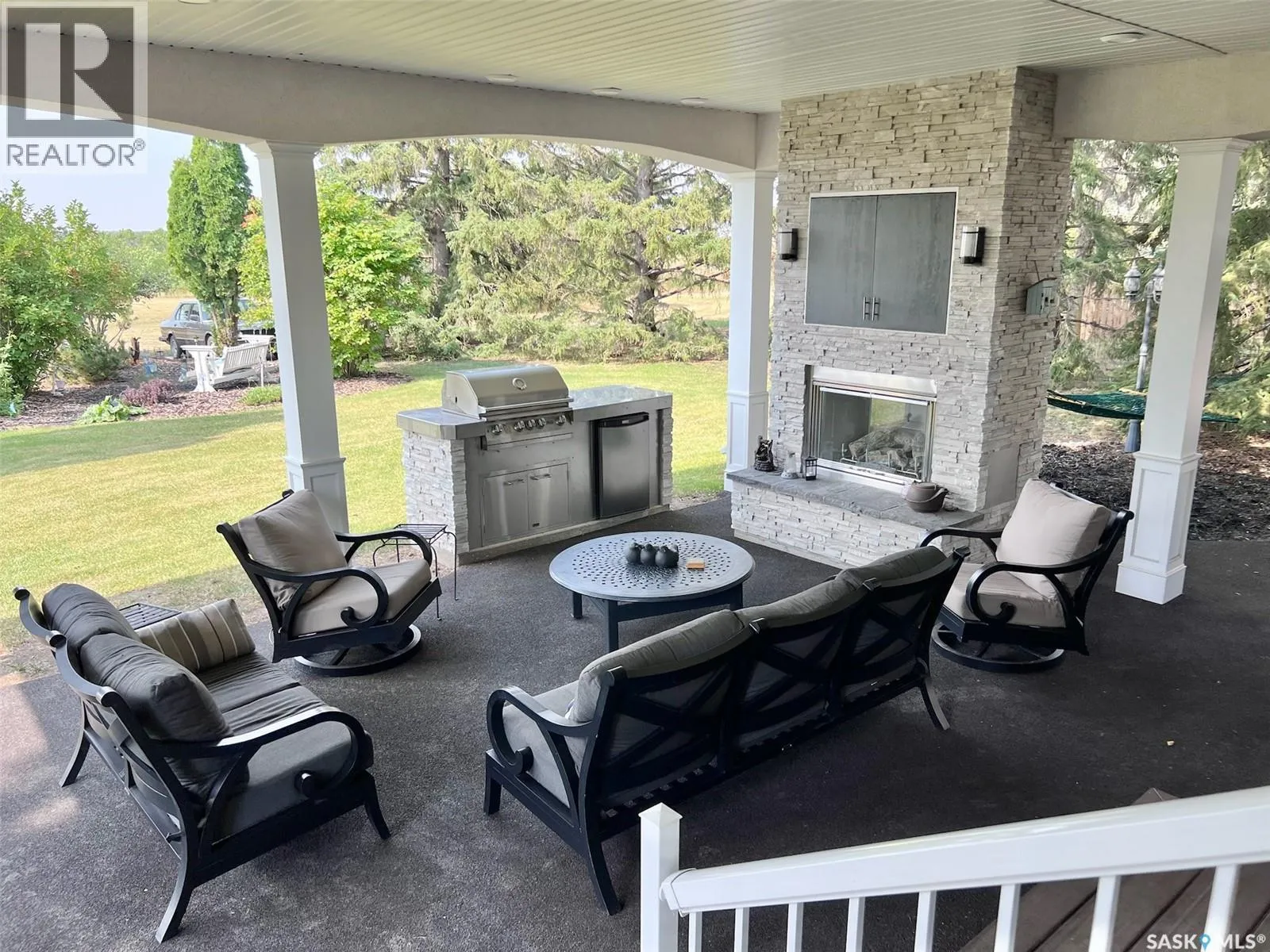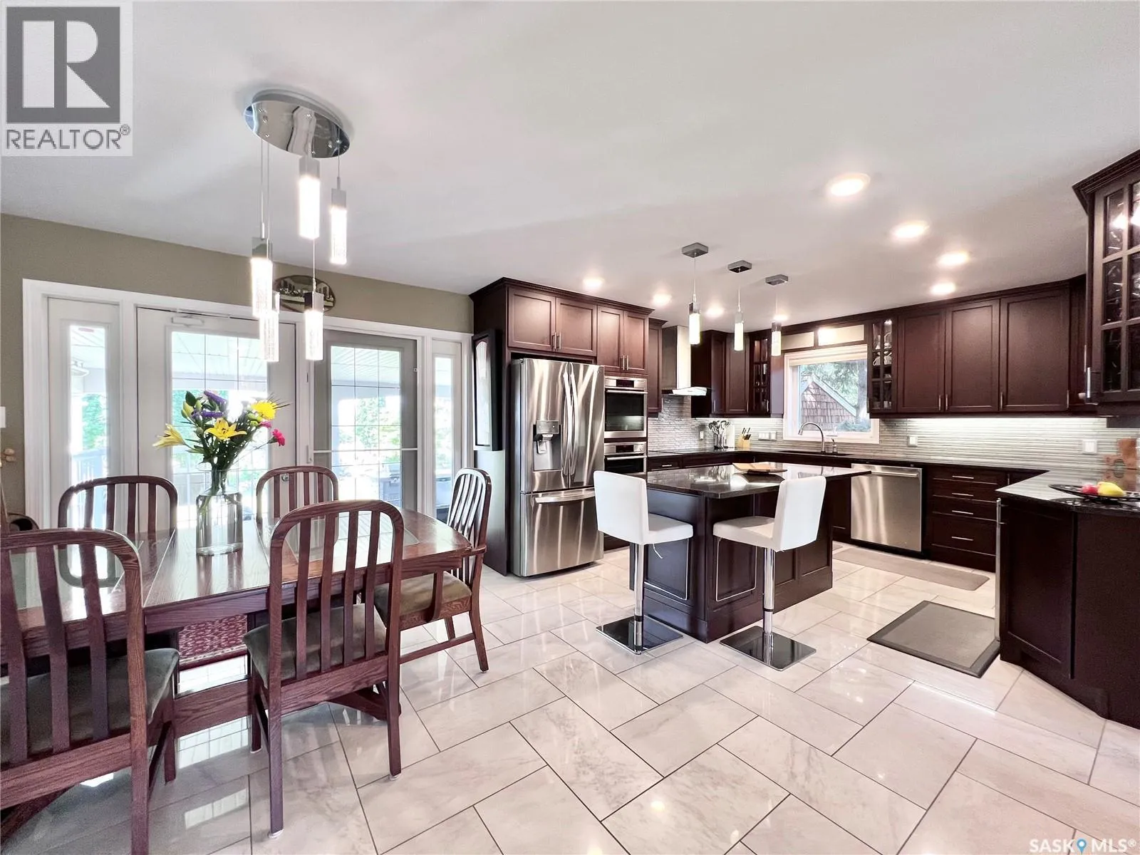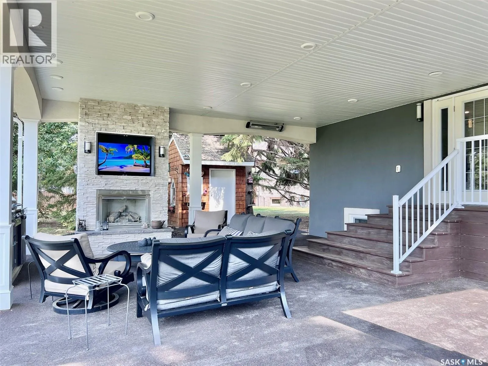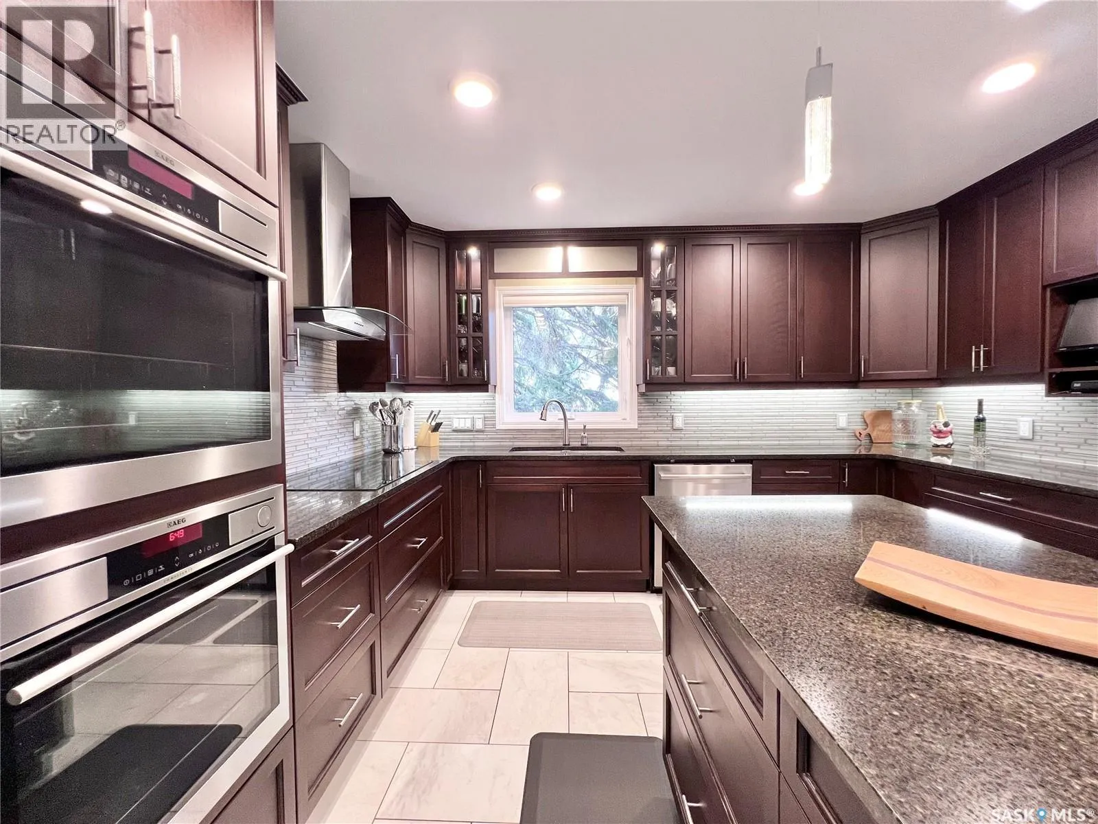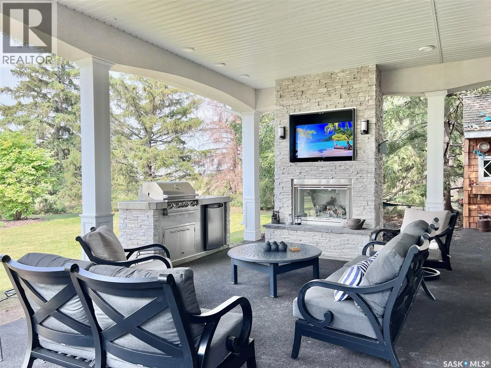 If your looking for WOW Factor this is it! Overlooking the beautiful South Saskatchewan River this home is a dream with completely renovated main level and second level and to maximize those picturesque river views! Enter into the grand foyer with stunning vaulted ceilings and statement chandelier. The kitchen is the perfect work space for any level of home chef with granite countertops, stainless steel appliances, double built-in ovens, huge island and under counter lighting. The office is just steps away with its own gas fireplace, custom built in shelves and glass moving privacy wall; working from home will feel like heaven with the greenspace and riverbank views it offers! The stunning tile floor leads around the corner to the powder room, perfect for guests to pop into and the laundry room with storage. The second level contains two generous sized spare rooms, a large 4 piece bathroom and then into the massive primary suite. In the primary suite you will get not only beautiful river views, but also a stunning 4 piece en-suite, with tub and walk-in shower, his and hers walk-in closets and dressing area. Let your hosting dreams come to life in the amazing covered patio with built-in natural gas BBQ, beer fridge, natural gas fireplace, space heaters, and TV cabinet, perfect for riders game days! Between the easy maintenance of the rubber patio and eye catching stone work, this area will fast become a family favorite hang out spot! The basement offers a large family room with the perfect games/craft room attached! With the added benefit of an extra bedroom and bathroom, this could be a great in-law suite! There is over $400,000 of recent high end upgrades like cedar shakes and lifetime metal shingles, 2 x 6 insulated walls with additional 2' of external insulation, custom woodwork and more! Get a detailed list from us! Just a short 48 minute drive to Saskatoon, 25 minutes to Lake Diefenbaker, this could be everything your family has been waiting for! (id:27476)