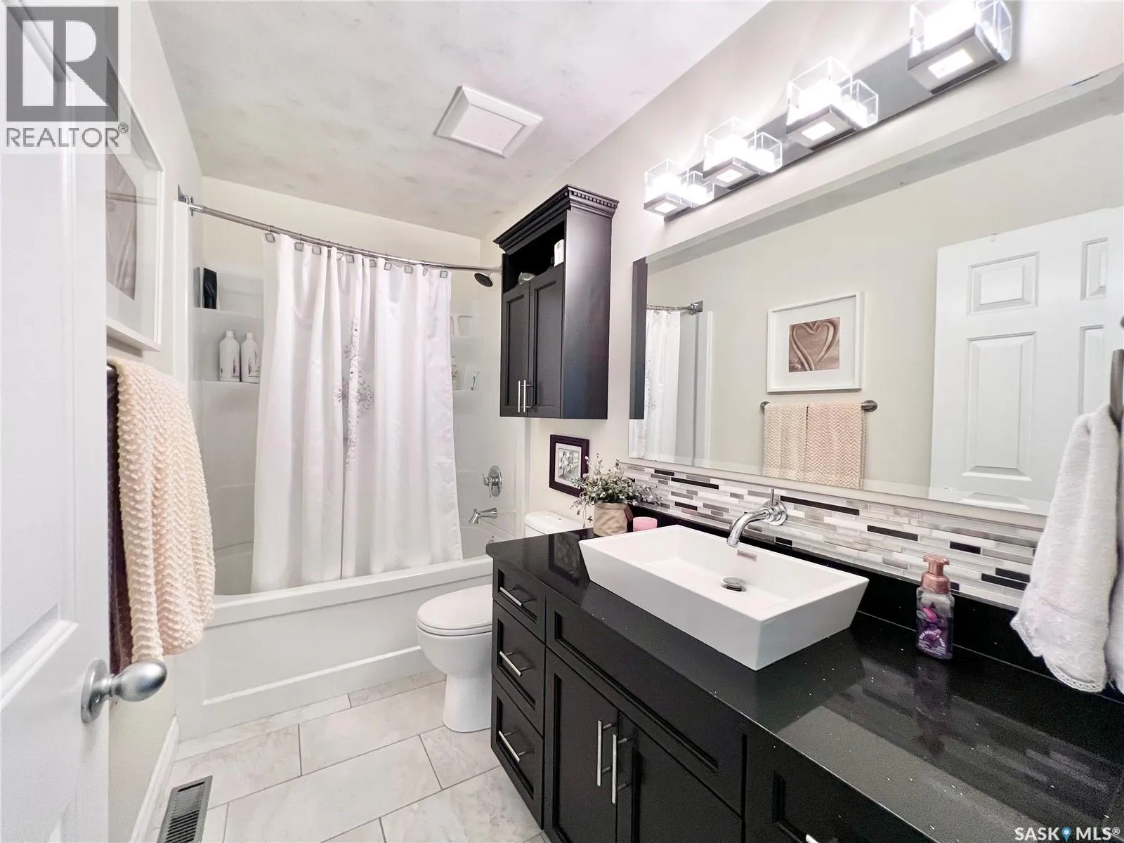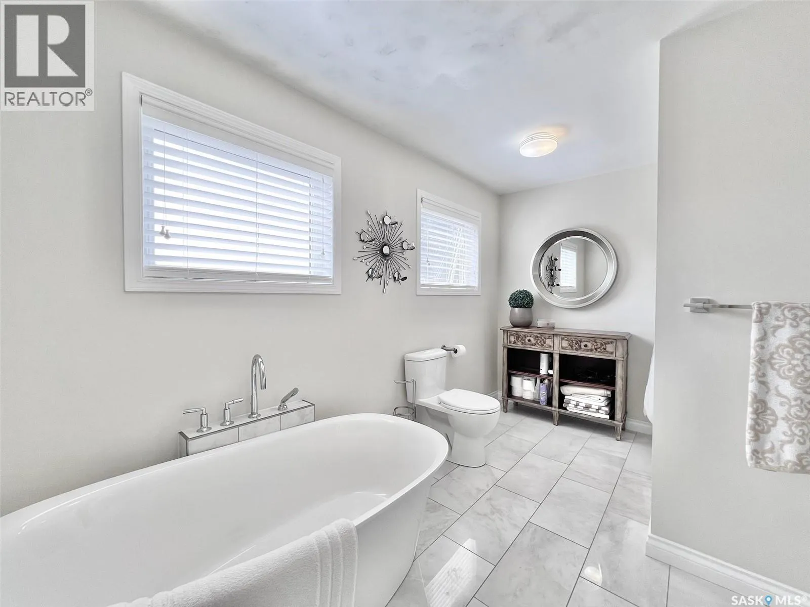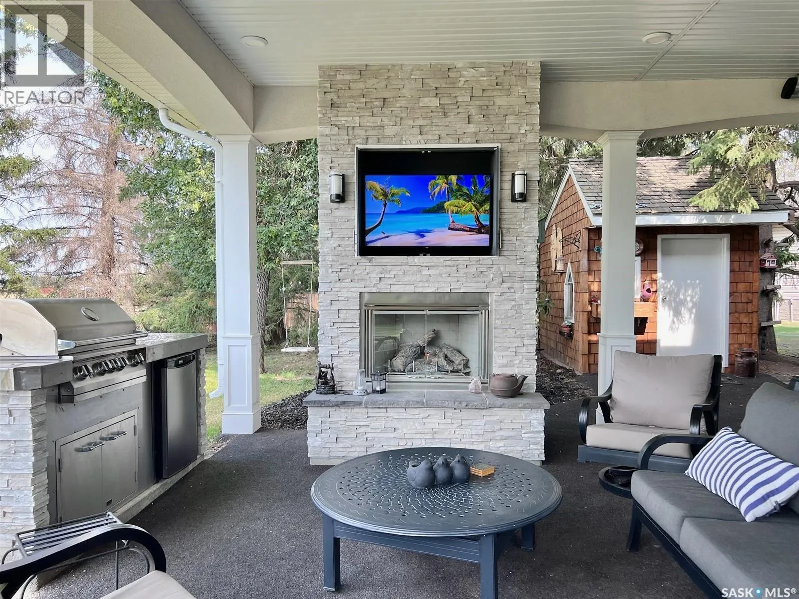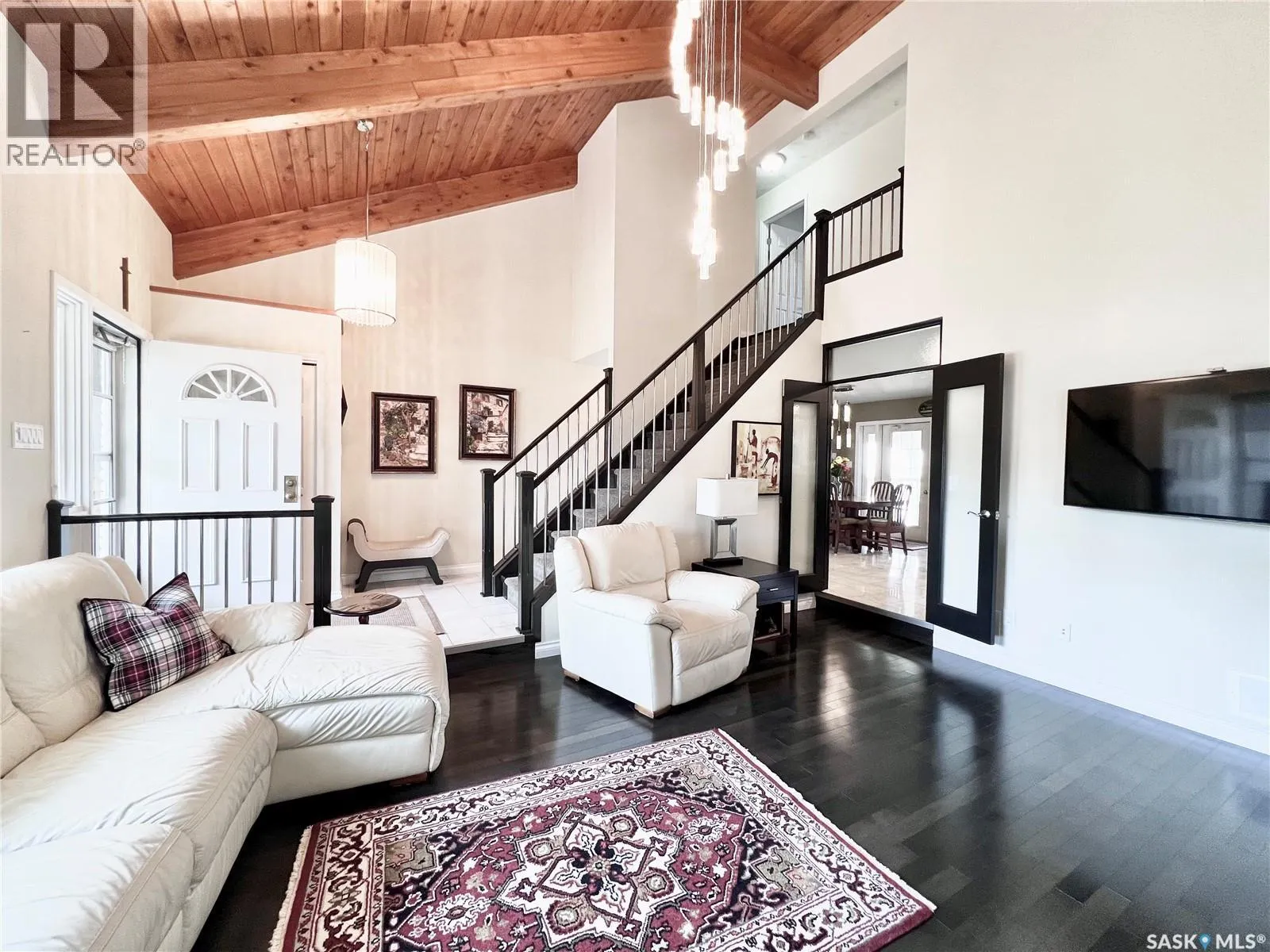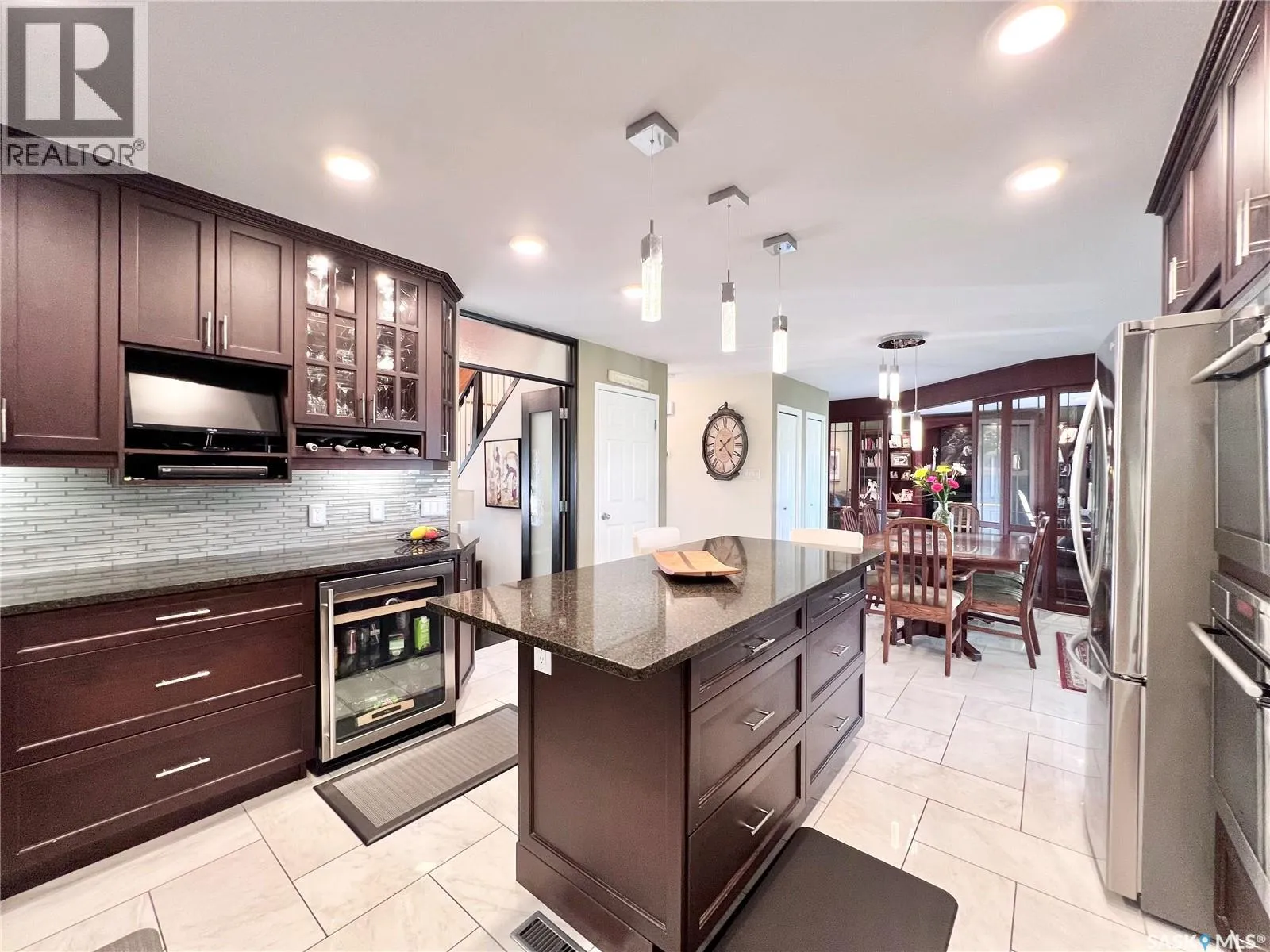 If your looking for WOW Factor this is it! Overlooking the beautiful South Saskatchewan River this home is a dream with completely renovated main level and second level and to maximize those picturesque river views! Enter into the grand foyer with stunning vaulted ceilings and statement chandelier. The kitchen is the perfect work space for any level of home chef with granite countertops, stainless steel appliances, double built-in ovens, huge island and under counter lighting. The office is just steps away with its own gas fireplace, custom built in shelves and glass moving privacy wall; working from home will feel like heaven with the greenspace and riverbank views it offers! The stunning tile floor leads around the corner to the powder room, perfect for guests to pop into and the laundry room with storage. The second level contains two generous sized spare rooms, a large 4 piece bathroom and then into the massive primary suite. In the primary suite you will get not only beautiful river views, but also a stunning 4 piece en-suite, with tub and walk-in shower, his and hers walk-in closets and dressing area. Let your hosting dreams come to life in the amazing covered patio with built-in natural gas BBQ, beer fridge, natural gas fireplace, space heaters, and TV cabinet, perfect for riders game days! Between the easy maintenance of the rubber patio and eye catching stone work, this area will fast become a family favorite hang out spot! The basement offers a large family room with the perfect games/craft room attached! With the added benefit of an extra bedroom and bathroom, this could be a great in-law suite! There is over $400,000 of recent high end upgrades like cedar shakes and lifetime metal shingles, 2 x 6 insulated walls with additional 2' of external insulation, custom woodwork and more! Get a detailed list from us! Just a short 48 minute drive to Saskatoon, 25 minutes to Lake Diefenbaker, this could be everything your family has been waiting for! (id:27476)
