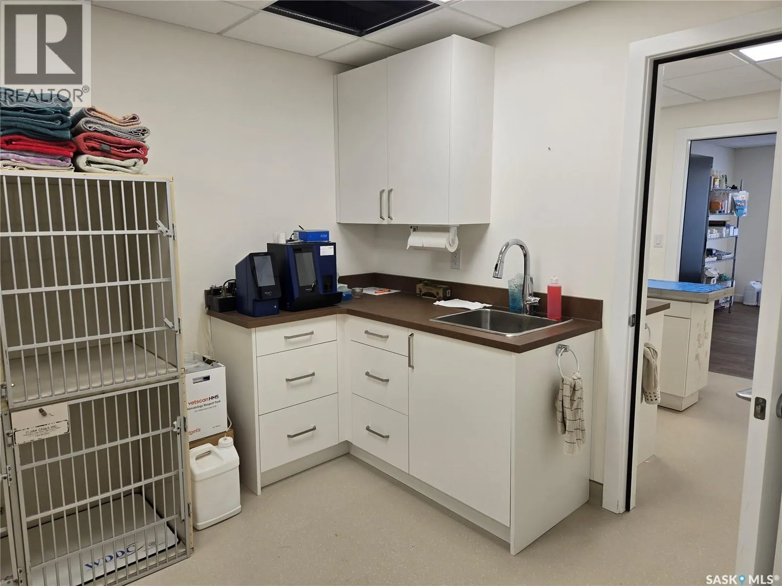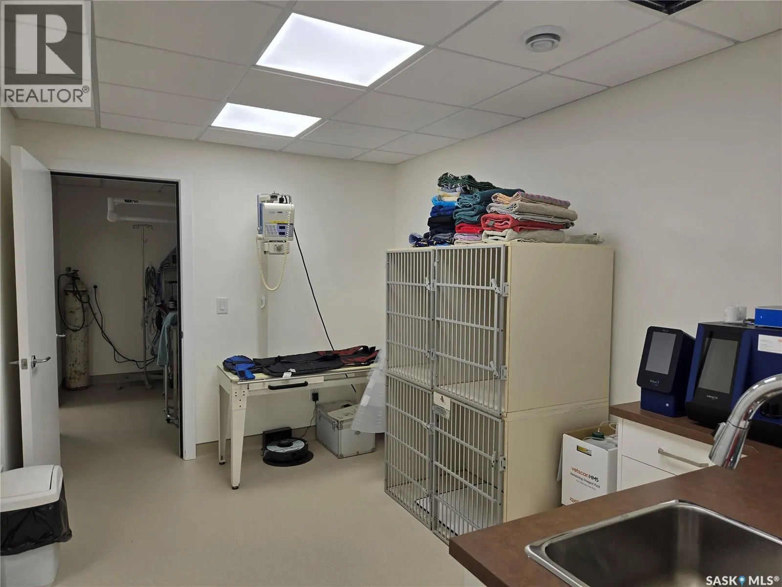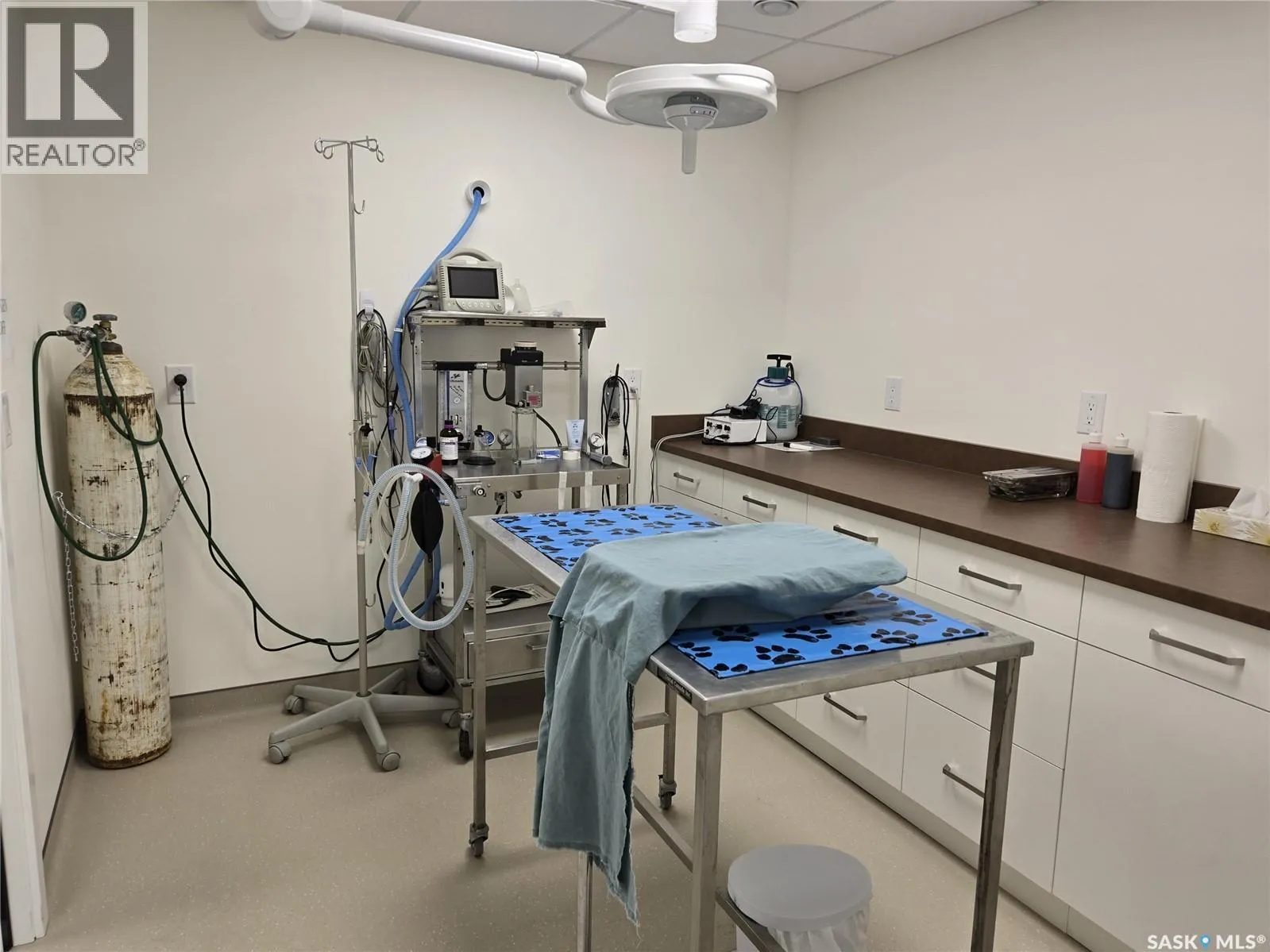 Seize this business opportunity with this fully renovated building! The design on one side of the building was to suit the previous Vet Clinic, which has rooms which have great flexibility for a multiple office space with reception area. There is a shower in the clinic side which adds flexibility to the tenants that it would appeal to along with a garage door to bring in deliveries or other options. The other side of the building offers a potential long term tenant. This building is conveniently located with high visibility, making it an ideal investment. Call today for your own personal tour today. We have a video tour available! (id:27476)