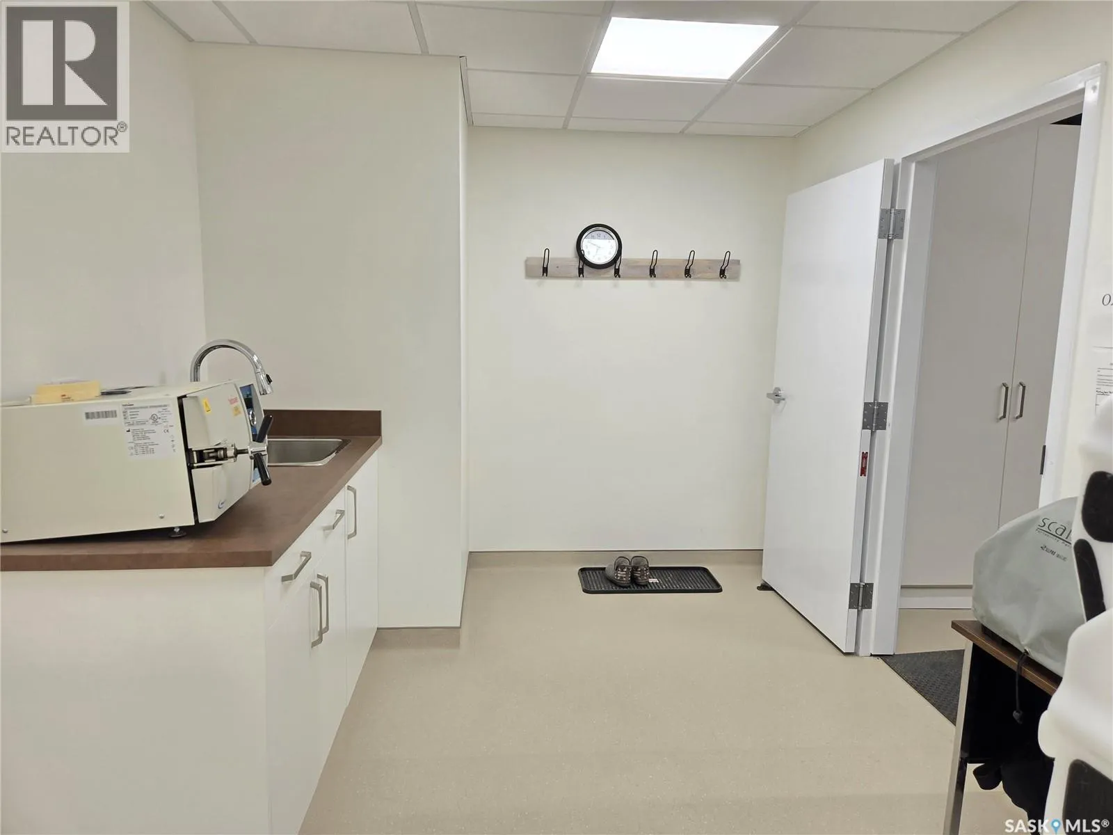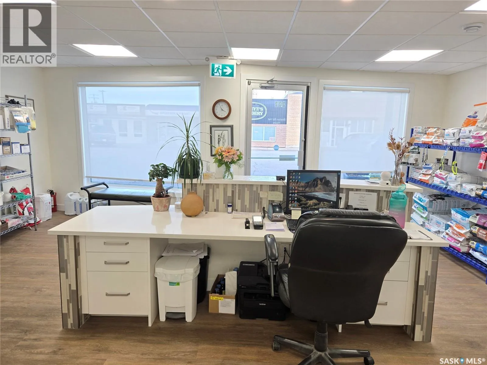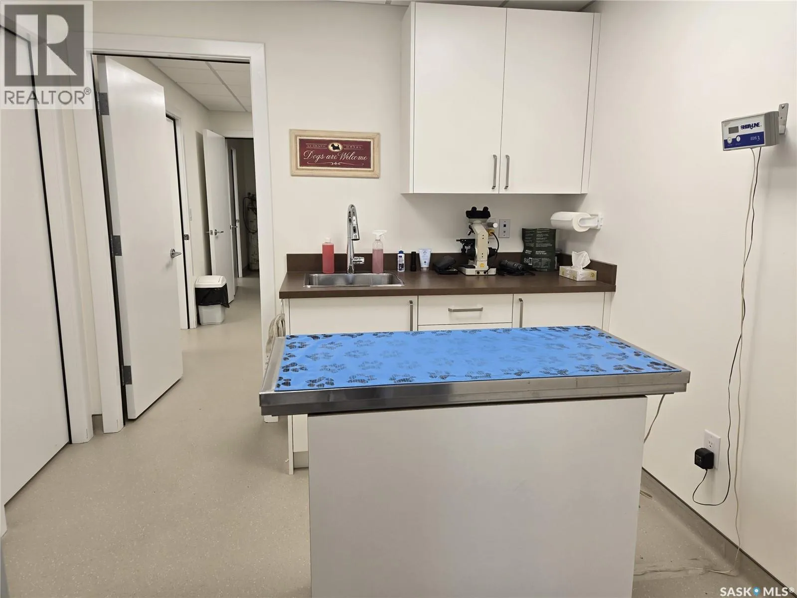 Seize this business opportunity with this fully renovated building! The design on one side of the building was to suit the previous Vet Clinic, which has rooms which have great flexibility for a multiple office space with reception area. There is a shower in the clinic side which adds flexibility to the tenants that it would appeal to along with a garage door to bring in deliveries or other options. The other side of the building offers a potential long term tenant. This building is conveniently located with high visibility, making it an ideal investment. Call today for your own personal tour today. We have a video tour available! (id:27476)