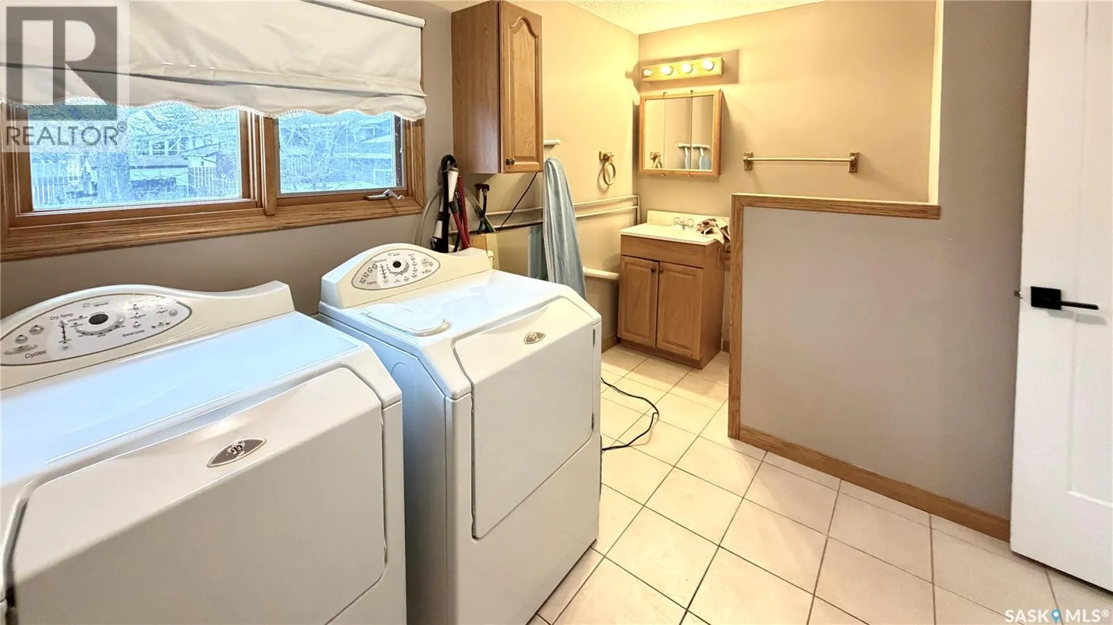 4-Bedroom Bungalow for SALE IN OUTLOOK, Saskatchewan with ATTACHED GARAGE AND RV PARKING Welcome to 56 Tufts Crescent in Outlook. This 1,144 sq ft BUNGALOW sits on a spacious 72 X 120 FT LOT and offers 4 BEDROOMS, 3 bathrooms, and a flexible layout suited to families or buyers looking for additional space. The main floor features a bright EAST FACING LIVING ROOM, dedicated dining area, and kitchen with island offering ample workspace. Two bedrooms are currently located on the main level, along with a 4-piece bathroom and a spacious combined main floor laundry and bath. This laundry/bathroom was originally designed as a bedroom with ensuite and could be converted back to create a third main floor bedroom. The FULL BASEMENT is partially finished and includes TWO ADDITIONAL BEDROOMS, one without a closet, another 4-piece bathroom, storage space, and large open areas ready for development. The lower level provides excellent potential for a family room, games area, or home gym. Outside, the property offers a FULLY INSULATED 16 x 26 ATTACHED GARAGE, concrete driveway, RV PARKING, mature trees, and front and back lawn space. The west-facing enclosed DECK creates a comfortable outdoor area with evening sun and natural shade, ideal for relaxing or entertaining. CONVENIENTLY LOCATED adjacent to the HOSPITAL, REGIONAL PARK AND GOLF COURSE, this home provides excellent access to healthcare services, green space, and walking paths. Offered at $279,000, this property presents a strong opportunity in Outlook, Saskatchewan. (id:27476)