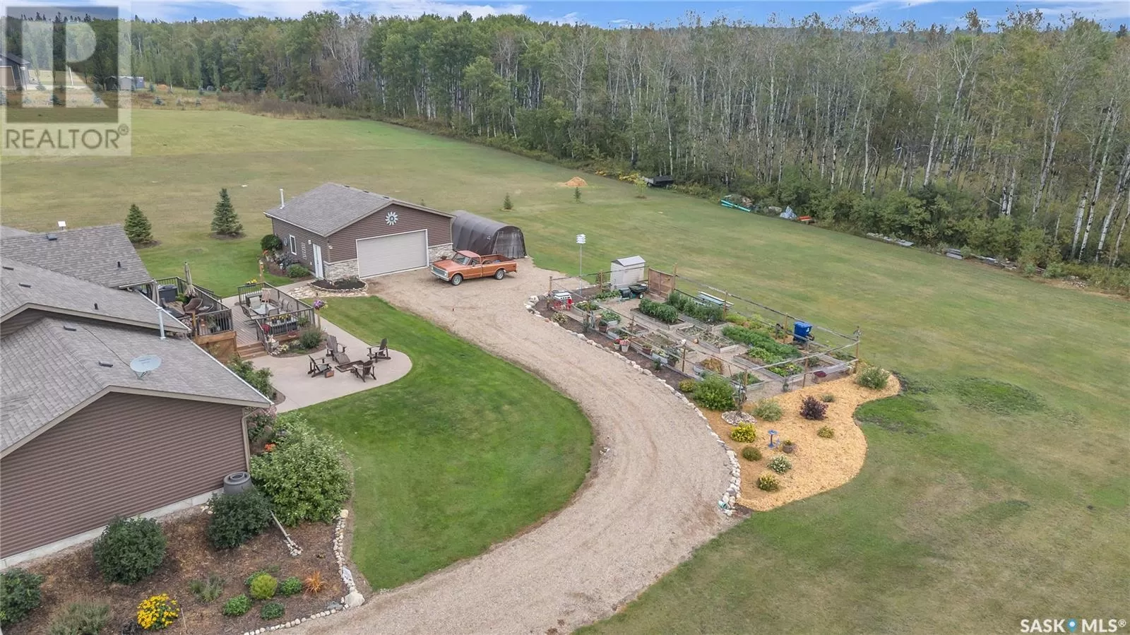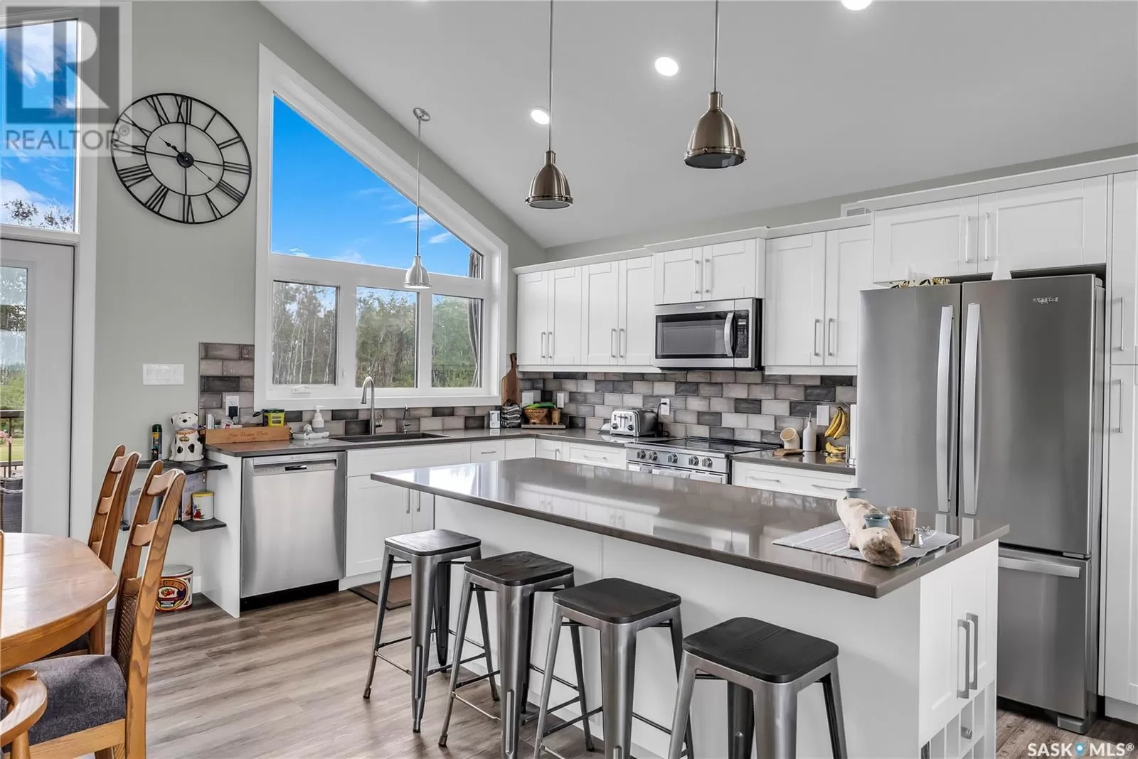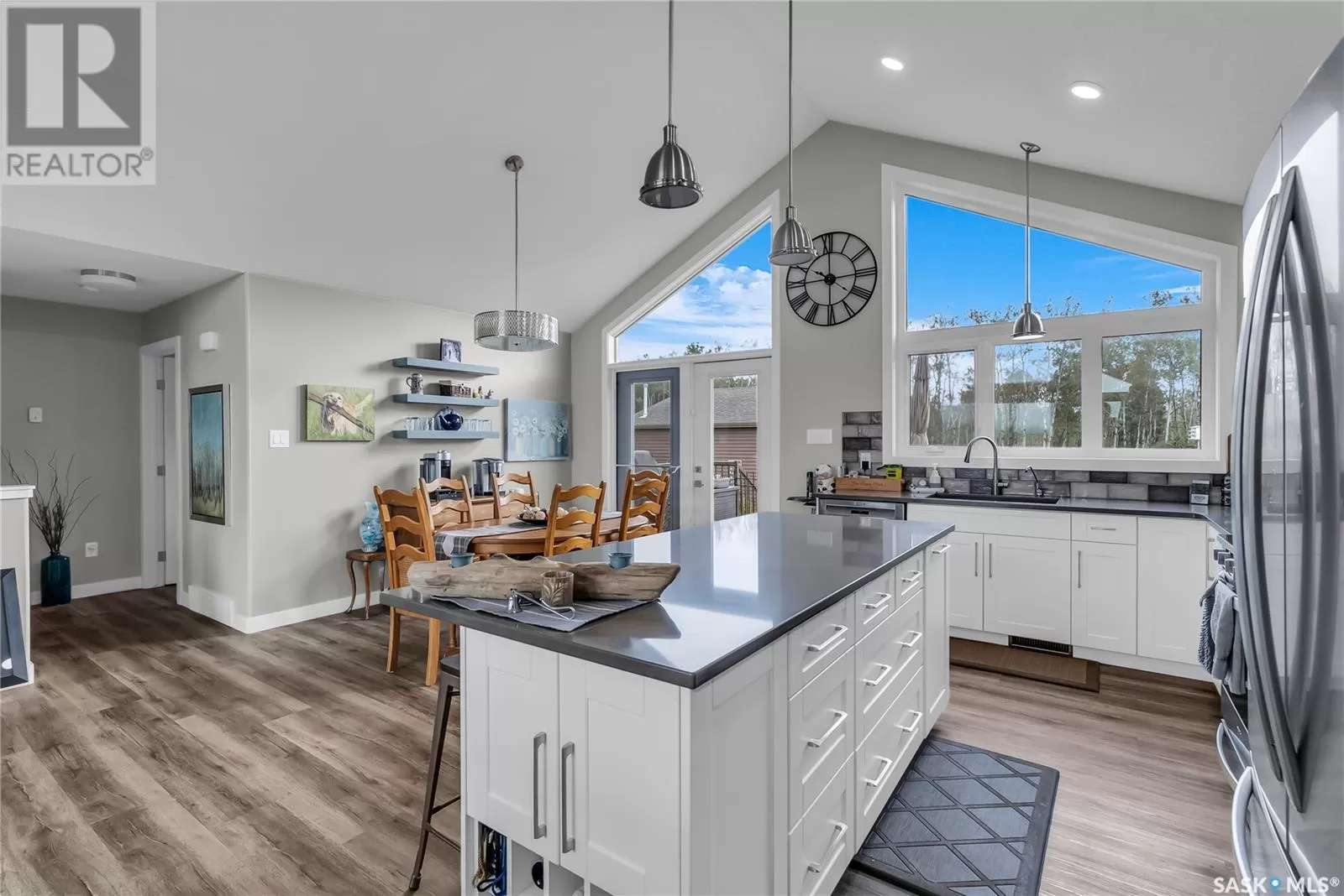 Magnificent Property in a fabulous location! This property is finished with impressive detail that captures the views and delivers cozy, comfortable, private out door space. This 1646 sq ft bungalow enjoys an open airy bright main floor living area with beautiful views. It's vaulted ceilings, upgraded trim, 3 bedroom, 2 bath layout is a perfect home for retirees or young families looking to enjoy indoor and outdoor spaces. 115 South Shore Estates is 1.45 acres of completed yard and site. It is a Well treed, fully landscaped, meticulously trimmed, backing a robust forest. The property enjoys a heated double attached garage and a Heated 26'x28' detached shop. Included features are a private Well with back up reservoir, large septic tank, insulated and accessible crawl space, front and rear decks, patio with firepit and fenced garden area. Of course it has beautiful kitchen with quartz counters, fashionable vinyl plank flooring, maintenance free exterior, RV parking, and most importantly it needs nothing. Move in and enjoy someone else's hard work, attention to detail, and expense. Located off highway 263 the scenic route to the Prince Albert National park and only 2 minutes from Emma lake area. (id:27476)