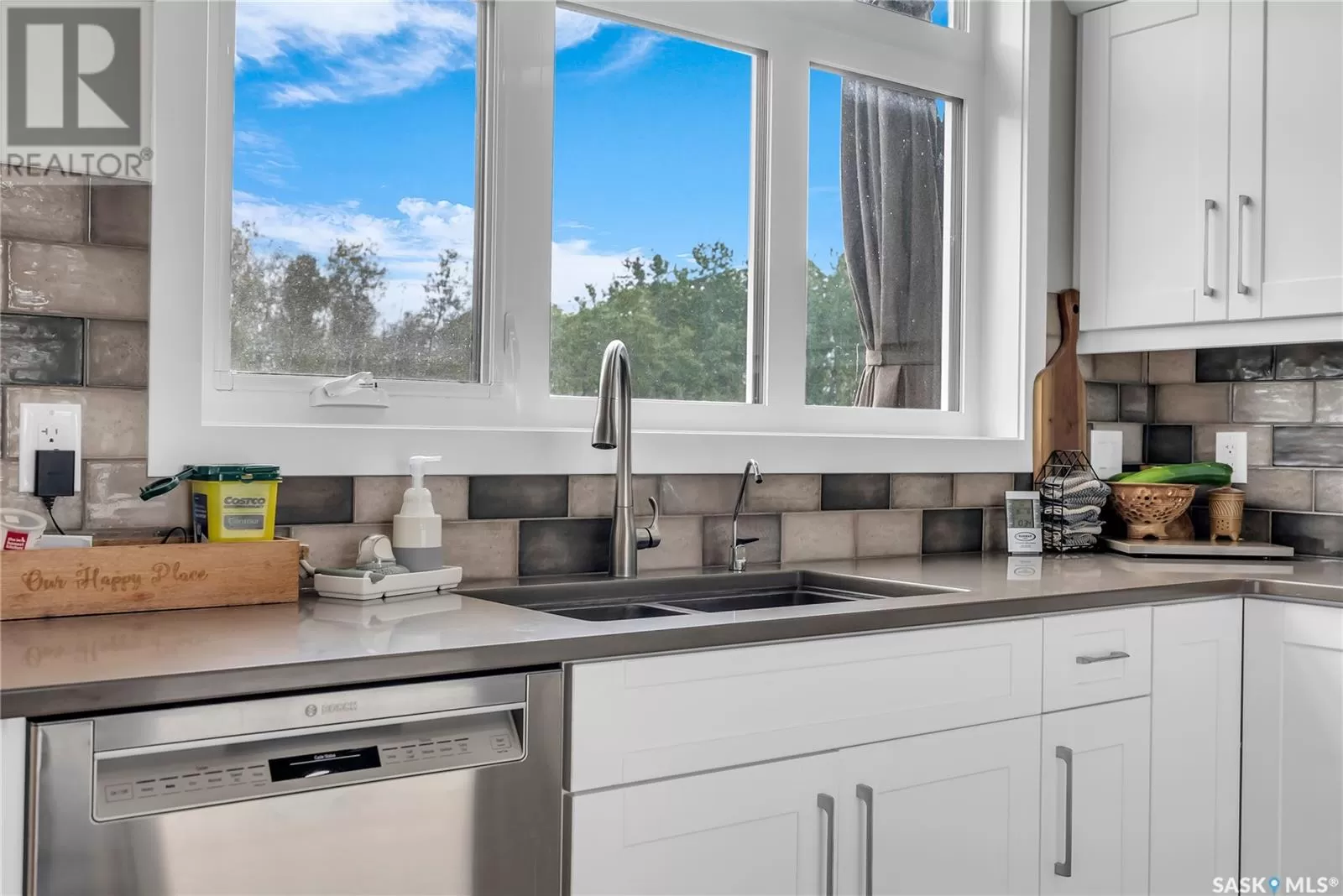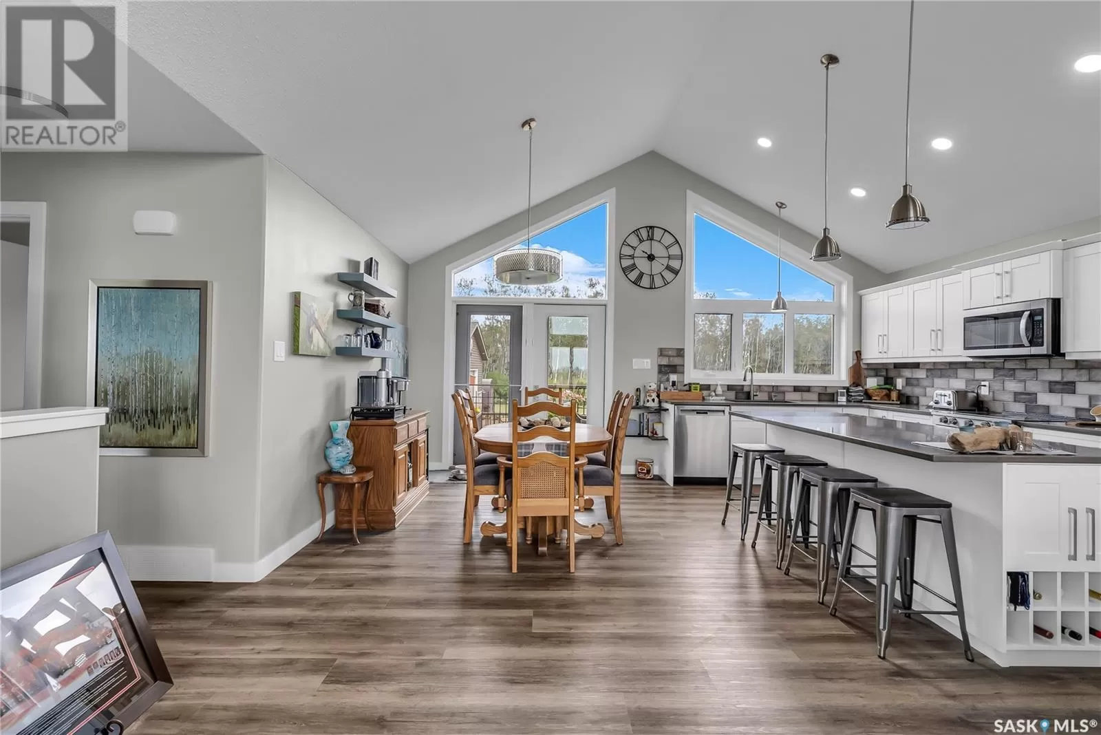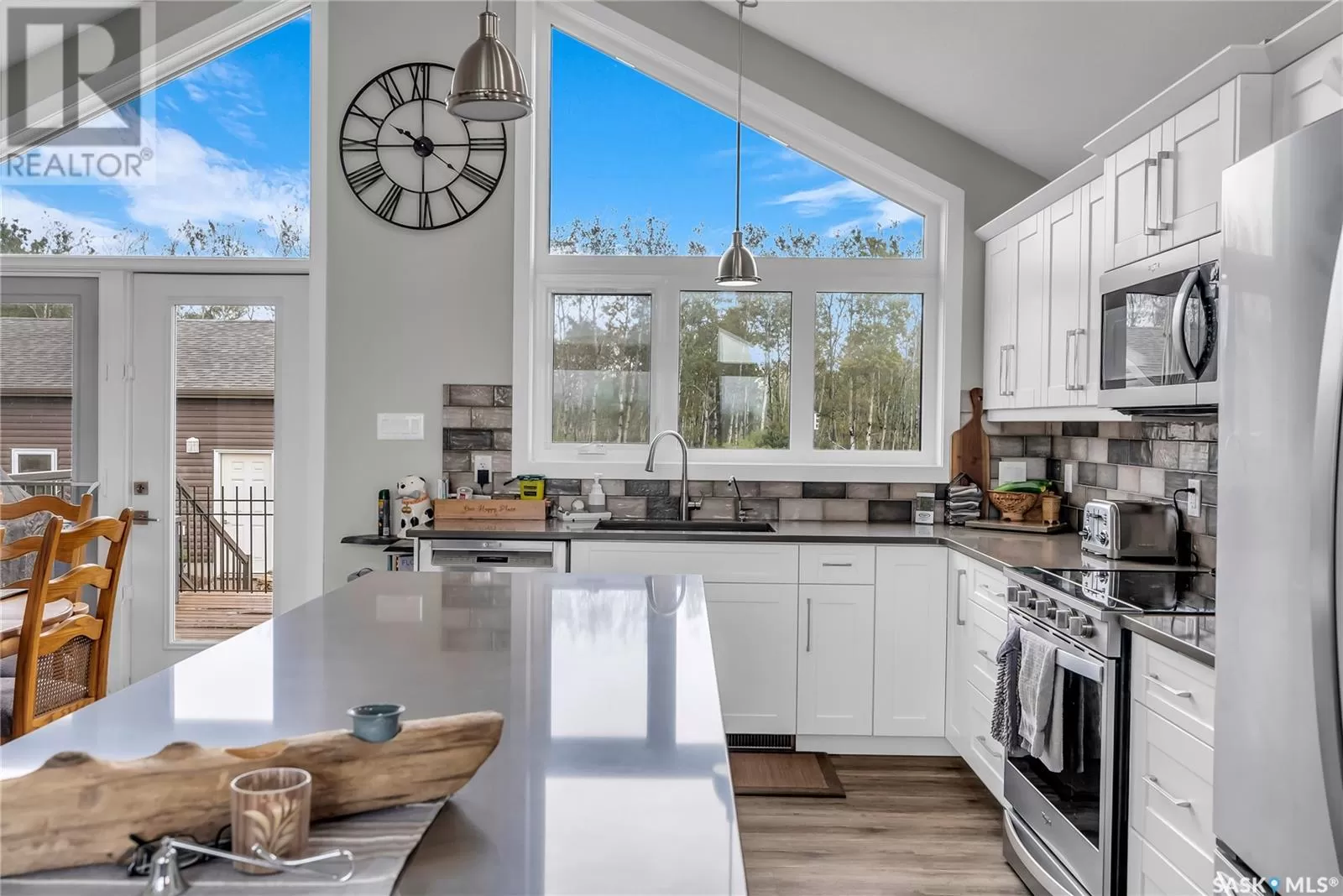 Magnificent Property in a fabulous location! This property is finished with impressive detail that captures the views and delivers cozy, comfortable, private out door space. This 1646 sq ft bungalow enjoys an open airy bright main floor living area with beautiful views. It's vaulted ceilings, upgraded trim, 3 bedroom, 2 bath layout is a perfect home for retirees or young families looking to enjoy indoor and outdoor spaces. 115 South Shore Estates is 1.45 acres of completed yard and site. It is a Well treed, fully landscaped, meticulously trimmed, backing a robust forest. The property enjoys a heated double attached garage and a Heated 26'x28' detached shop. Included features are a private Well with back up reservoir, large septic tank, insulated and accessible crawl space, front and rear decks, patio with firepit and fenced garden area. Of course it has beautiful kitchen with quartz counters, fashionable vinyl plank flooring, maintenance free exterior, RV parking, and most importantly it needs nothing. Move in and enjoy someone else's hard work, attention to detail, and expense. Located off highway 263 the scenic route to the Prince Albert National park and only 2 minutes from Emma lake area. (id:27476)