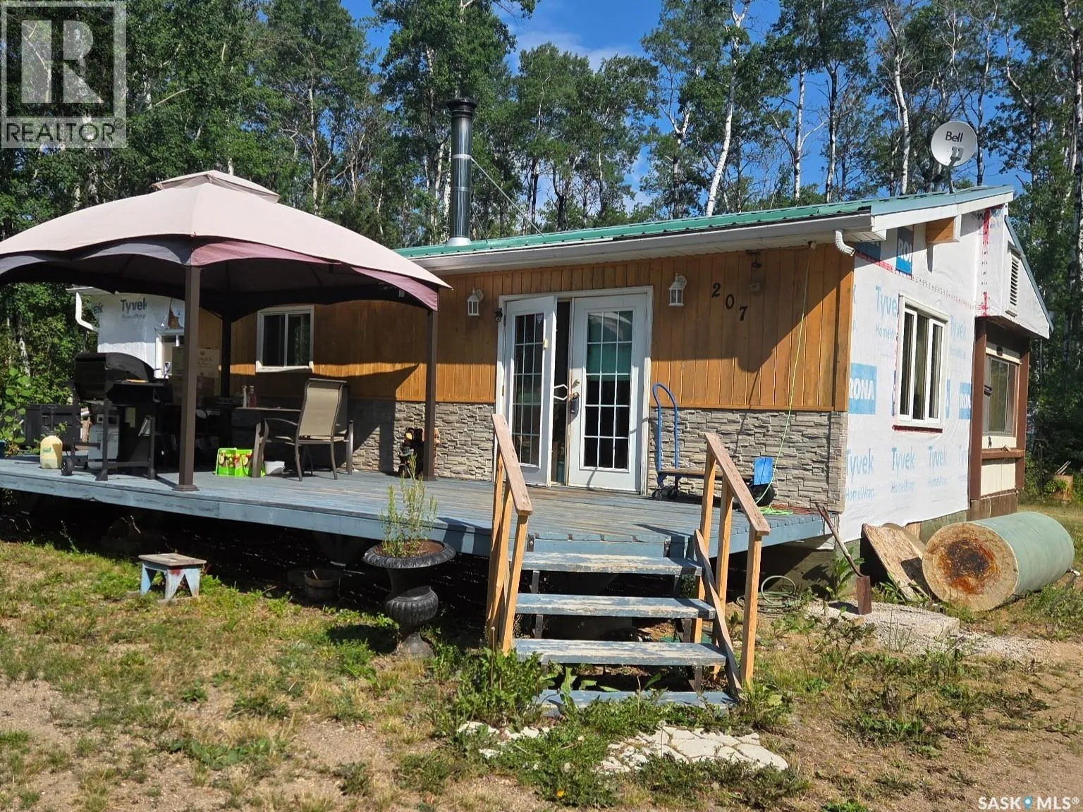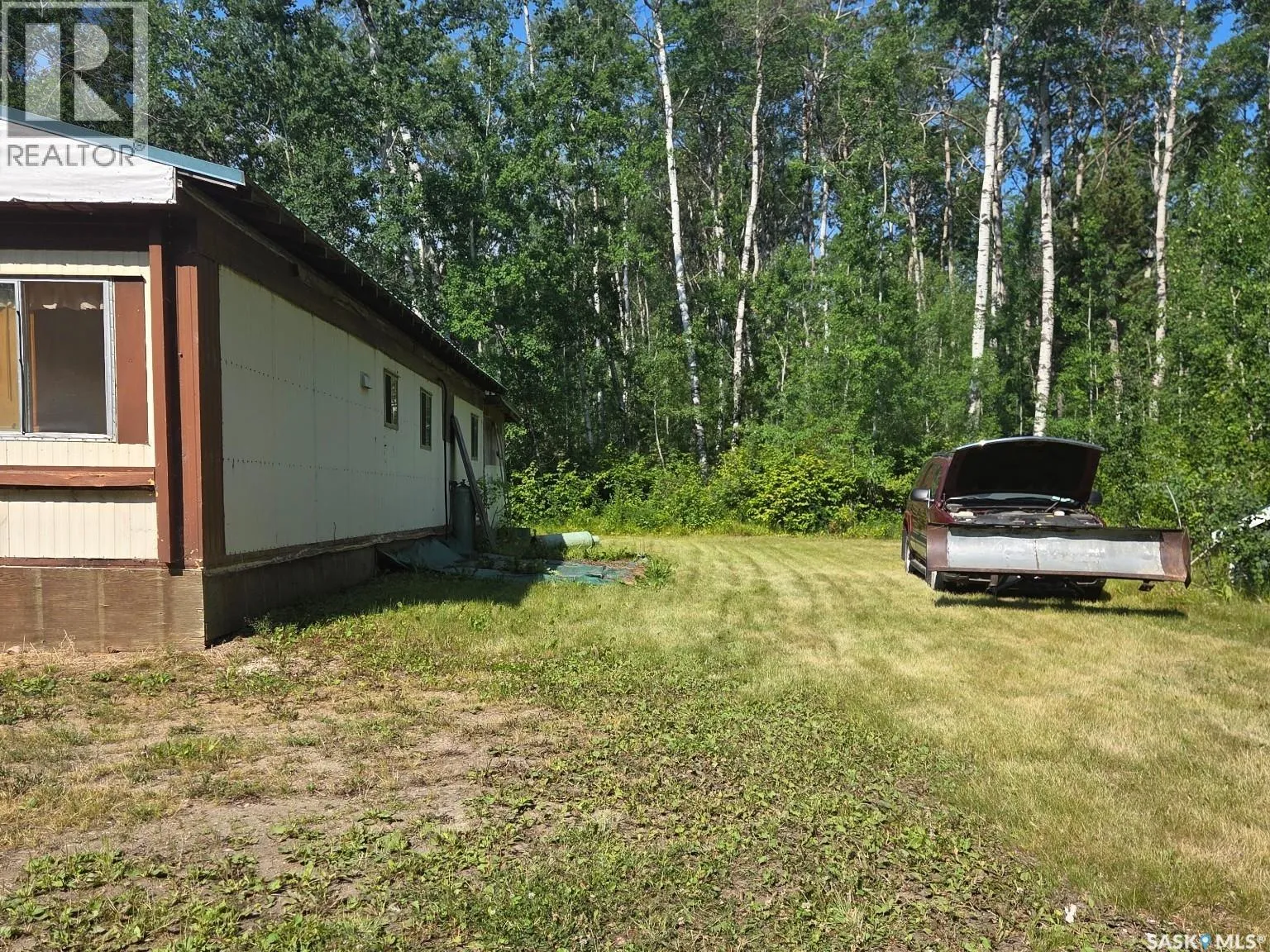 Private 199.86â x 150â nicely treed lot backing onto Crown Land in the Fish Lake area near Emma Lake. Great location just west of the Emma Lake Golf Course and near the entrance to the Prince Albert National Park. There is a 972 square foot, two bedroom home on the property. The original 552 square foot mobile home was built in 1972 with a 420 square foot addition in 2007. The addition does still require finishing. The seller has some of the material for finishing which will be left for the new owner. Large deck with gazebo. This is a perfect location for those looking to enjoy the beautiful lakes, snowmobile and ATV trails that the area has to offer. (id:27476)