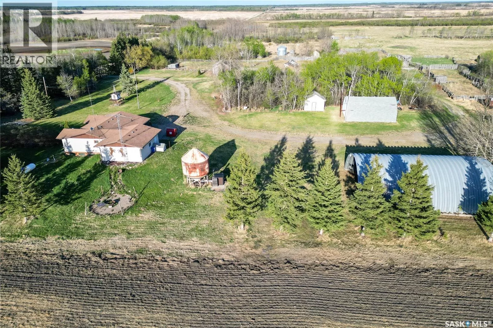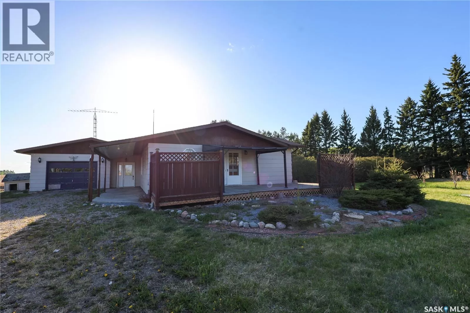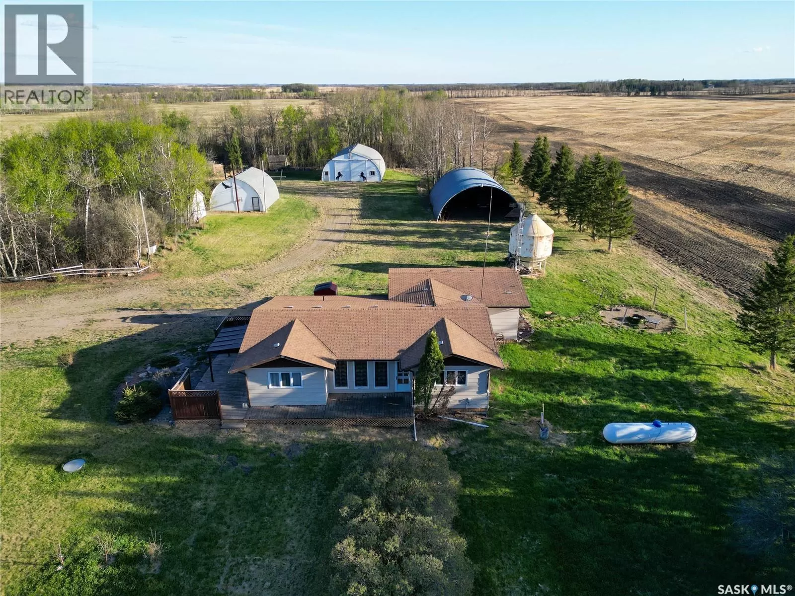Beautiful 158.46 acre acreage tucked away in a private rural setting, offering a spacious home, multiple outbuildings and plenty of room to live, work and play. The main floor features an open concept design highlighted by a spacious kitchen with ample cabinetry, a peninsula with bar seating and an island with a built-in stove top ideal for family meals and entertaining. The cozy dining area has an electric fireplace that opens to a sunken living room filled with natural light from large windows. A well appointed 3 piece bathroom and a generous laundry room with a sink and abundant storage add to the homeâs functionality. The fully finished basement includes a large family room, two good sized bedrooms, a 4 piece bathroom, cold storage and a utility room. Outside, you will find a fully insulated single attached garage, a massive covered deck perfect for relaxing or entertaining and a charming fire pit area. The property also features a 60 x 40 ft metal quonset, a 38 x 55 ft shop with a mezzanine and a 36 x 28 ft shop, providing incredible potential for projects, business or storage. This property features 60 cultivated acres and an additional 45 acres of native grassland with potential for future cultivation. The farmable land has a J soil class rating and the assessed value of the land is $152,300, according to SAMA. Surrounded by mature trees and natural beauty, this acreage is a rare opportunity to enjoy a peaceful country living with endless possibilities. Call today to take the next step! (id:27476)