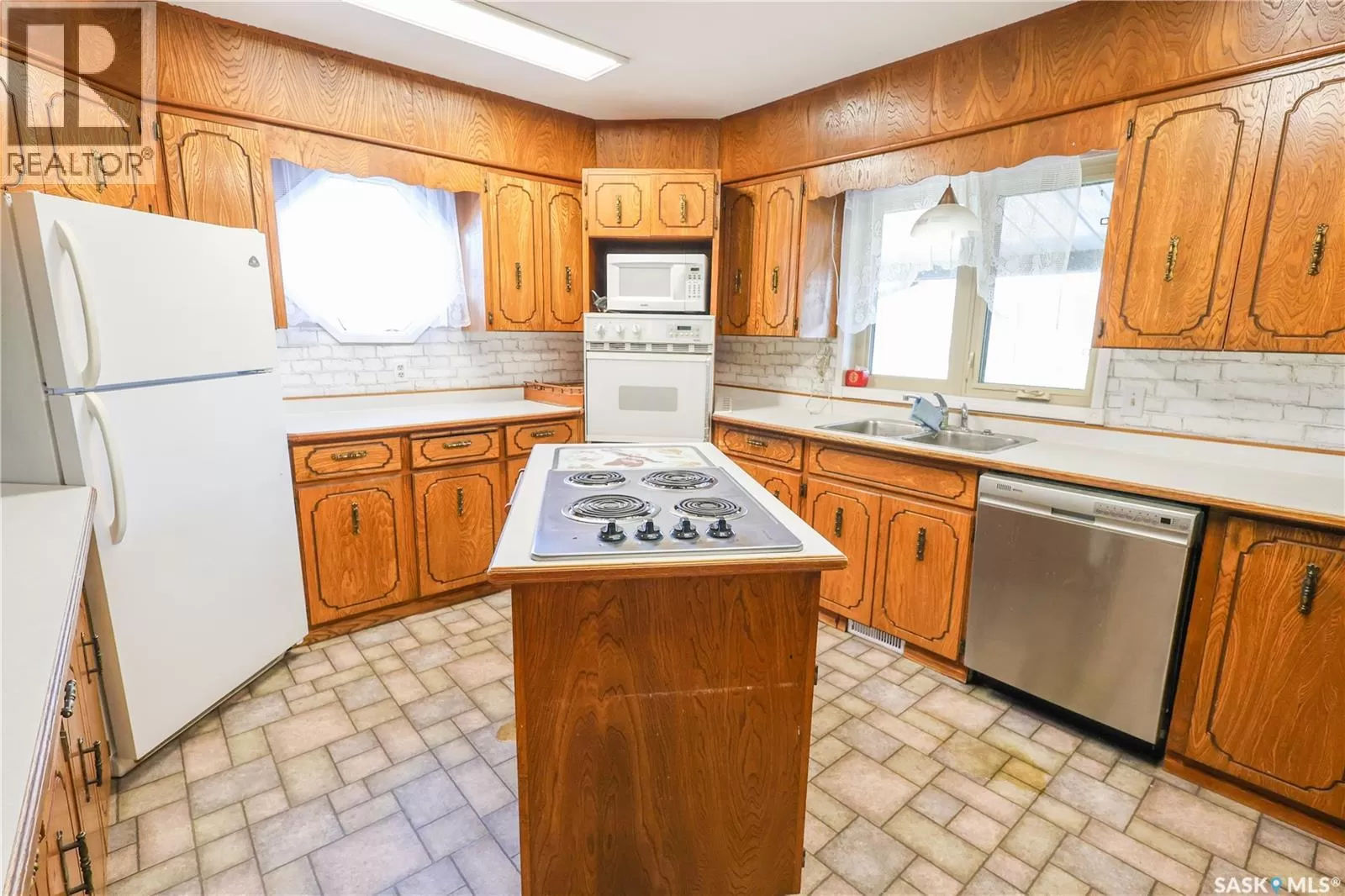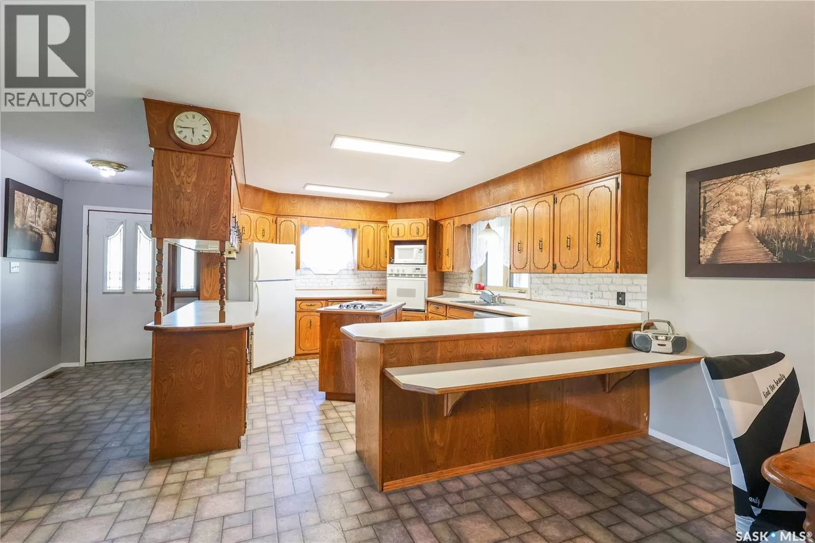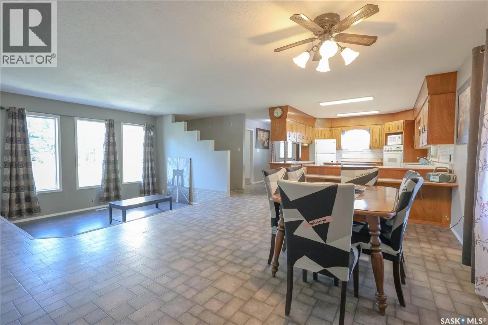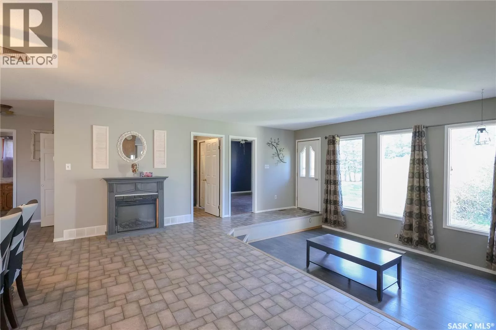 Beautiful 158.46 acre acreage tucked away in a private rural setting, offering a spacious home, multiple outbuildings and plenty of room to live, work and play. The main floor features an open concept design highlighted by a spacious kitchen with ample cabinetry, a peninsula with bar seating and an island with a built-in stove top ideal for family meals and entertaining. The cozy dining area has an electric fireplace that opens to a sunken living room filled with natural light from large windows. A well appointed 3 piece bathroom and a generous laundry room with a sink and abundant storage add to the homeâs functionality. The fully finished basement includes a large family room, two good sized bedrooms, a 4 piece bathroom, cold storage and a utility room. Outside, you will find a fully insulated single attached garage, a massive covered deck perfect for relaxing or entertaining and a charming fire pit area. The property also features a 60 x 40 ft metal quonset, a 38 x 55 ft shop with a mezzanine and a 36 x 28 ft shop, providing incredible potential for projects, business or storage. This property features 60 cultivated acres and an additional 45 acres of native grassland with potential for future cultivation. The farmable land has a J soil class rating and the assessed value of the land is $152,300, according to SAMA. Surrounded by mature trees and natural beauty, this acreage is a rare opportunity to enjoy a peaceful country living with endless possibilities. Call today to take the next step! (id:27476)