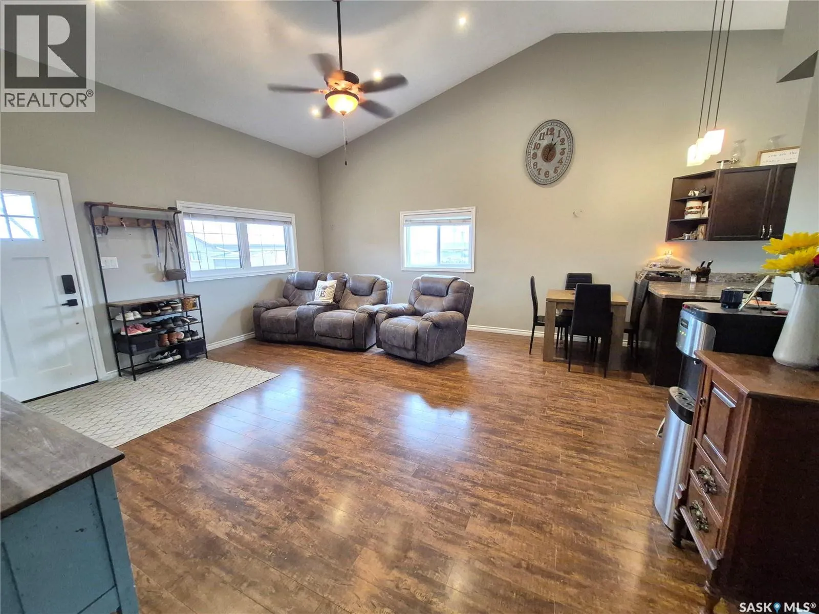 Welcome to 712 Railway Ave in the bustling country town of Pangman! This 1248 square foot, 2014 built home features vaulted ceilings, large living spaces, and beautiful kitchen with stainless steel appliance package. The bedrooms are very nicely sized, with the Master boasting a huge walk in closet, and full 4 piece bath. The mudroom/laundry room could also double as an office area, play room or a great storage area. The double car attached garage includes a ton of storage space with built in racks above the doors, and a mezzanine next to the door. The 30 x 40 shop at the rear of the property is fully insulated, and heated and boasts 2 roll up doors, 220 volt plugs, and 12' ceilings. It is an ideal place to work on projects, park vehicles, and has lots of storage space. Set back on the lot, this location offers a ton of privacy, and lots of space for parking. The fully fenced backyard offers a deck, firepit area and plenty of room for the kids to run and play! A/C installed just a couple of years ago, the shop has spray foam insulation throughout, as well as the ceiling in the house is spray foam insulation. Pangman offers a grocery store, gas station and hardware, library, insurance, cafe, unique museum and ice cream shoppe, as well as a K-12 School and daycare. This property is at the very edge of town, with prairie views, but all of the amenities of town living. (id:27476)