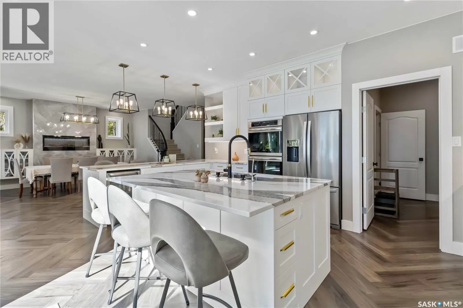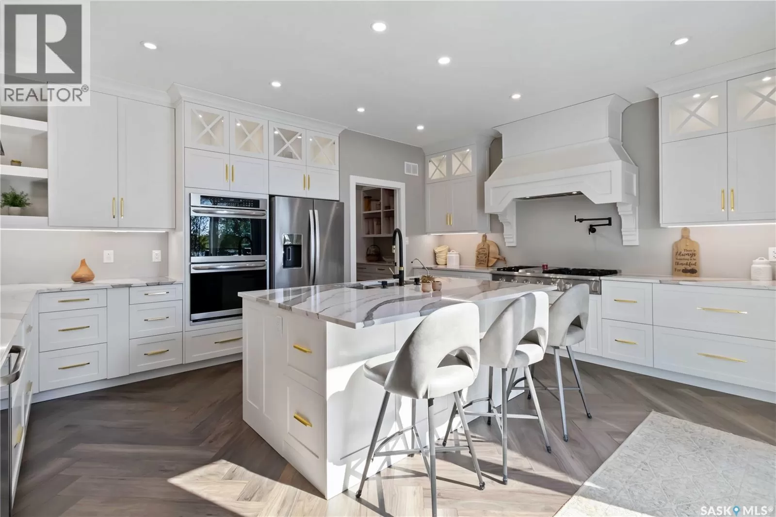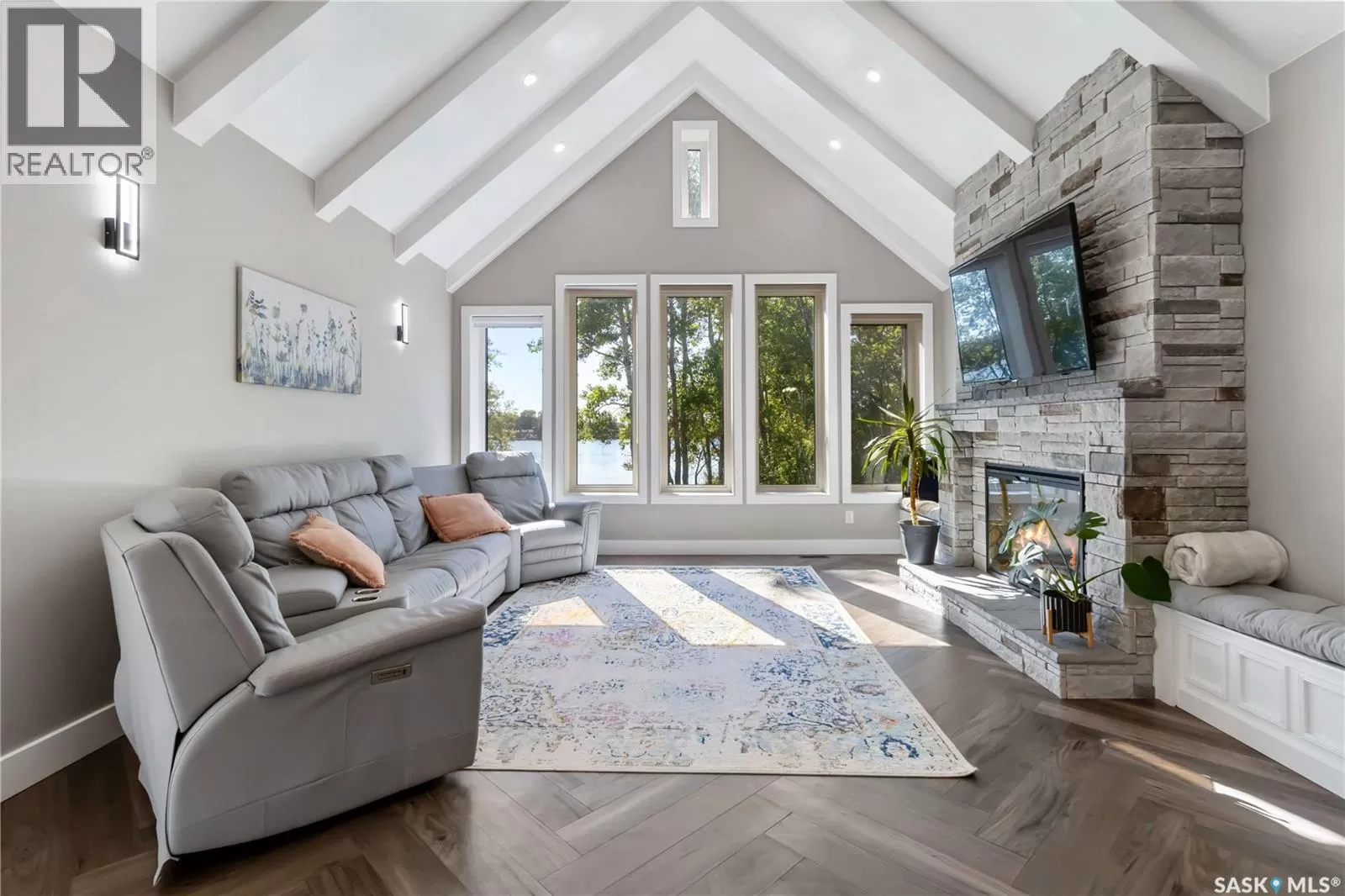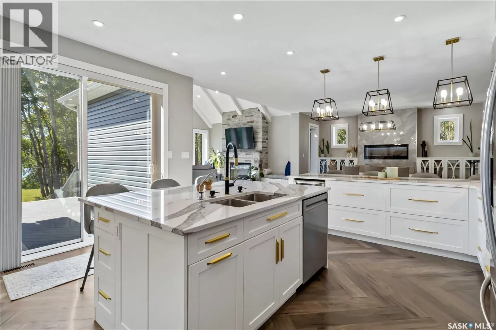 North Shore of Little Loon Lake Your private sanctuary awaits on the shores of Little Loon Lake. This four-season, waterfront haven, on 5.05 acres and built in 2022, offers peaceful tranquility and upscale comfort, making it perfect for multi-generational living, corporate retreats, or a luxurious city escape. Step inside this stunning home and indulge in the high-end finishes and open-concept design. The gourmet kitchen features a quartz island and a walk-in butlerâs pantry. The living room boasts a vaulted ceiling, a magnificent stone fireplace, and expansive windows with breathtaking views of nature and diverse wildlife. The remainder of the home features five bedrooms, four bathrooms, a dedicated gym and office, ample space for living and entertaining family and guests, and a spacious mudroom. Beyond the walls, the property offers endless opportunities for year-round recreation. Little Loon Lake is an outdoor enthusiast's paradise offering boating, fishing, and water sports in summer. In winter, the lake becomes a playground for ice fishing, skating, and snowmobiling. The property itself boasts a private sand beach ideal for sunbathing or docking your boat. Just a stone's throw away, Little Loon Regional Park offers amenities including a 9-hole golf course, a restaurant, campground, and mini golf. Just 5 minutes away, Glaslyn offers essential services including a grocery store, gas station, bank, and K-12 school. It's also centrally located to major cities: Edmonton (under 4 hrs), Saskatoon (2 hrs), North Battleford (under 1 hr), and Prince Albert (under 2 hrs). This property provides an exclusive retreat feel reminiscent of popular resort areas like Turtle Lake, Jackfish Lake, Emma Lake, and Waskesiu, but without the congestion. Combining the prestige of a custom-built home, unparalleled craftsmanship, and a prime location with the idyllic lifestyle of lakeside living, this turnkey property is truly a rare find. Contact an Agent for a private showing and discover your new lakefront haven. (id:27476)