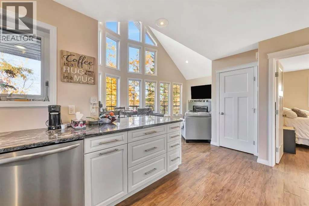Experience lakefront living in this stunning Modern Retreat at Perch Lake SK! This four seasons home offers incredible potential for those looking for their own dream lakefront escape. Situated on a large .89 acre private lot you will find the main house as well as the 4 car garage with living quarters above and ample storage and parking options for vehicles, boats, trailers and RVs. The main house features one bedroom with a 2-piece en-suite as well as laundry area and full 4 pc bath on the main floor. The open-concept living space boasts vaulted ceilings and an electric fireplace with modern surround accent, creating a welcoming atmosphere. Seamless access to the vinyl covered Duradeck makes it perfect for entertaining or soaking in the beautiful views. Moving upstairs the spacious open loft adds even more possibilities. Currently setup with a sleeping area, family room as well as a third bathroom with steam shower. Other standout features include, triple pane windows, granite kitchen counters, stainless steel appliances and more. The garage offers plenty of different parking arrangements from the standard 20â x 19â two car portion to the large 40â x 14â side with 14â tall x 11â wide doors, built to accommodate motorhomes, RVâs and boats. The garage is fully insulated and is complete with in floor heat. Additionally, you will find another 750 sqft living space above the garage, including kitchen, living area, 4 pc bath and 2 bedrooms. This cozy suite has its very own deck area offering scenic lake views. Both the Main house and garage/suite are on their own separate cisterns and septic tanks. With so much to offer this property will not disappoint. Furniture and everything to keep the property maintained and running are negotiable and can be included. (id:27476)