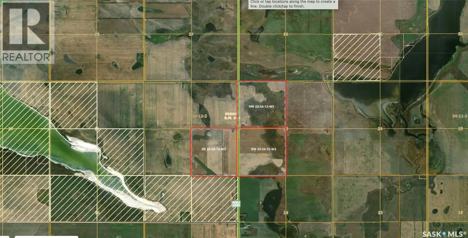 RM of Perdue Farmland - 475.82 Acres | Mixed Farm | 3 Quarters Productive 475.82 acres of MIXED FARMLAND for sale in the RM of Perdue No. 346, located approximately 18 km south of Perdue along Hwy 655 and about 50 minutes west of Saskatoon. This LAND-ONLY offering consists of three quarters: SE 22-34-12-W3 assessed at $360,000; SW 23-34-12-W3 assessed at 251,800; and NW 23-34-12-W3 assessed at $180,500. The land features a strong mix of cultivated cropland and pasture/native grass, suitable for grain, mixed, or cattle operations. SE 22 is the premium CULTIVATED QUARTER, SW 23 offers a balanced CROPLAND/PASTURE MIX, and NW 23 is primarily pasture-based. Flat topography with some bush and sloughs typical of the area. Detailed information package available. Mineral rights not included. Possession TBD. DIRECTIONS: 18 KM south of Perdue on HWY 655; OR 21 KM north of Harris on HWY 655 (id:27476)