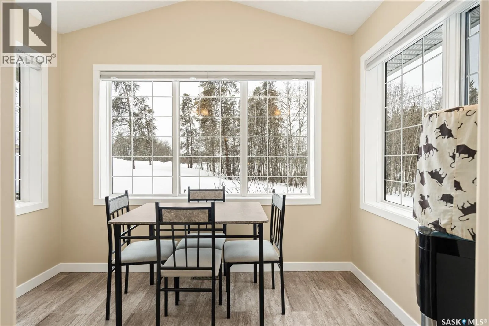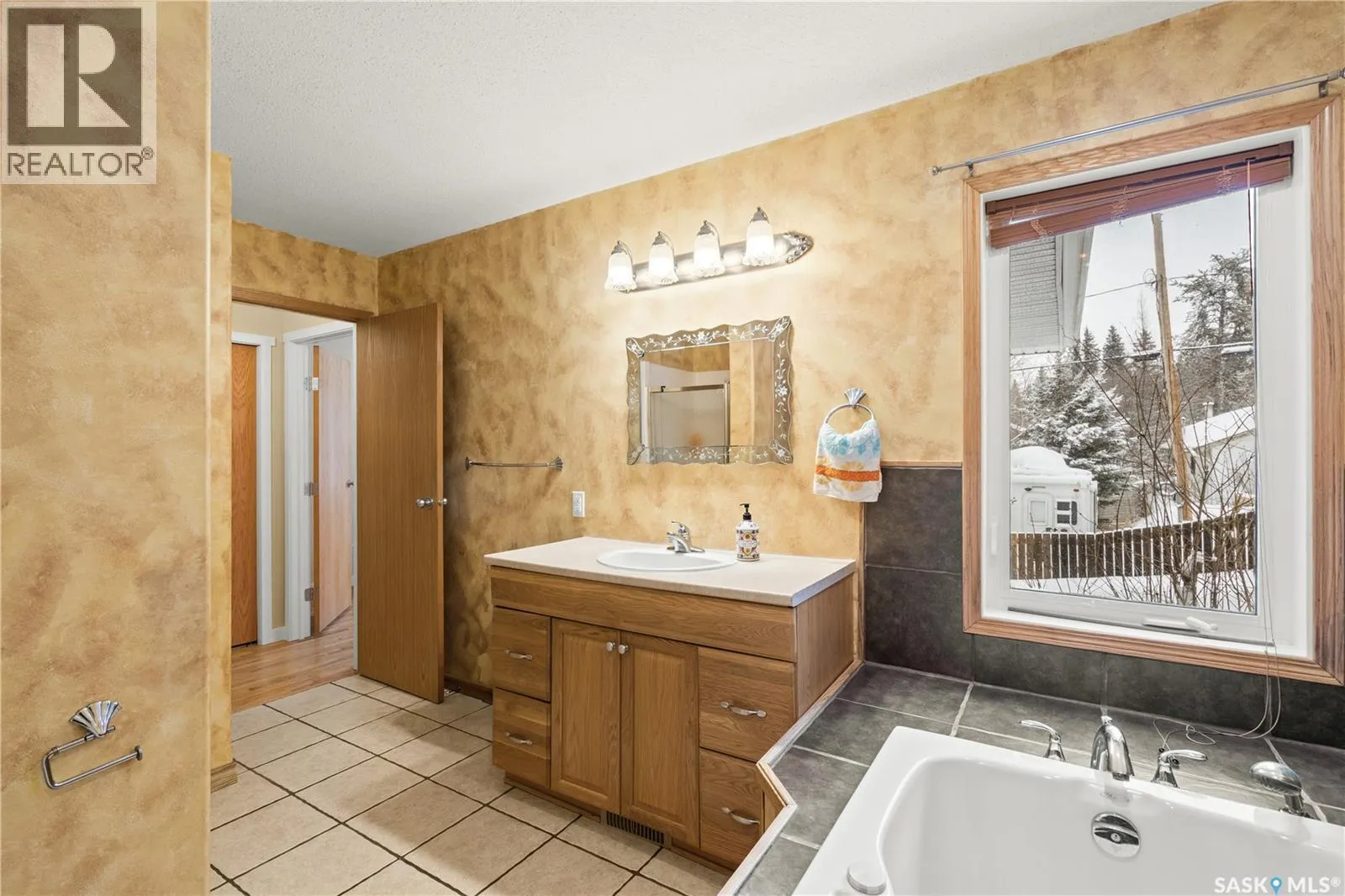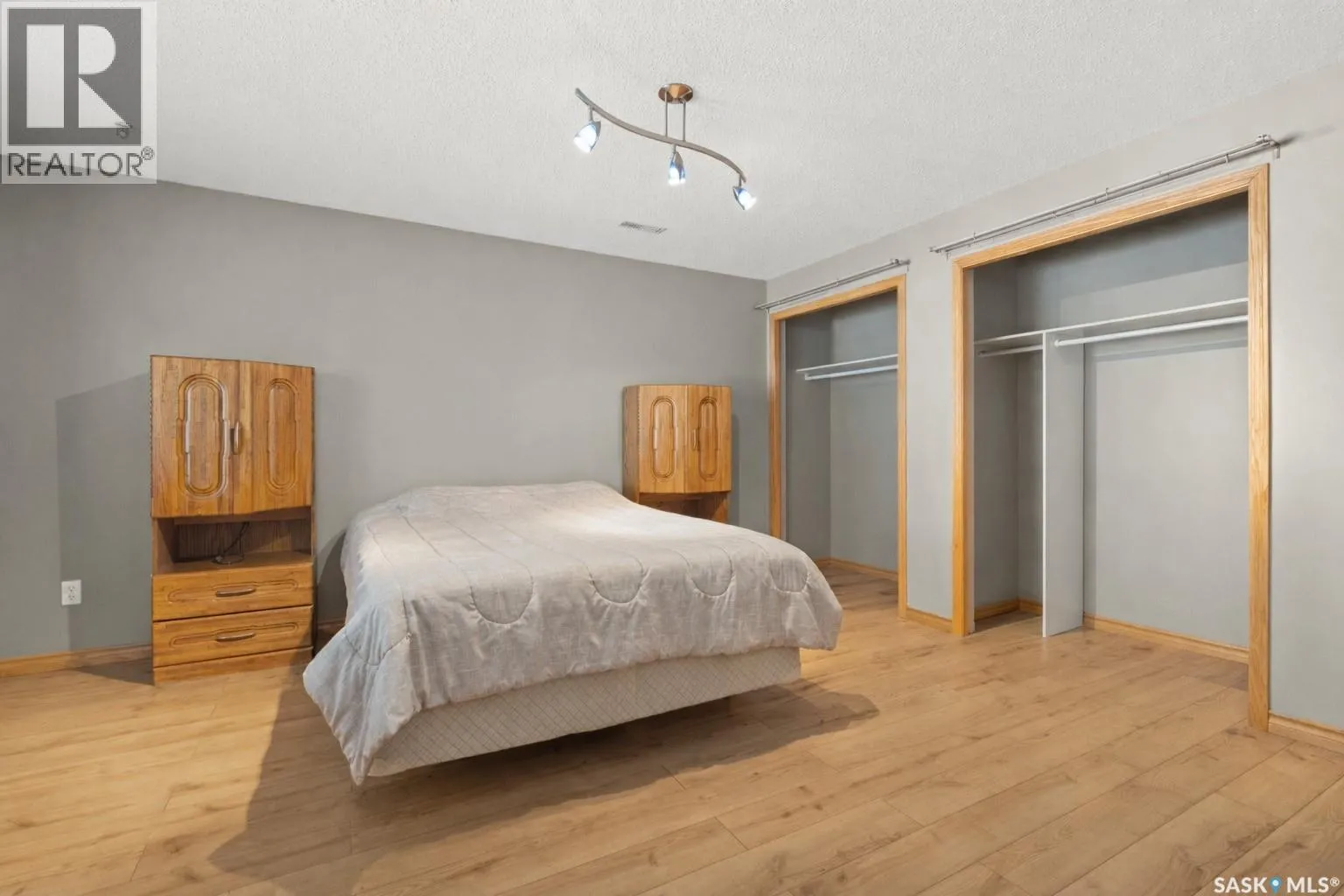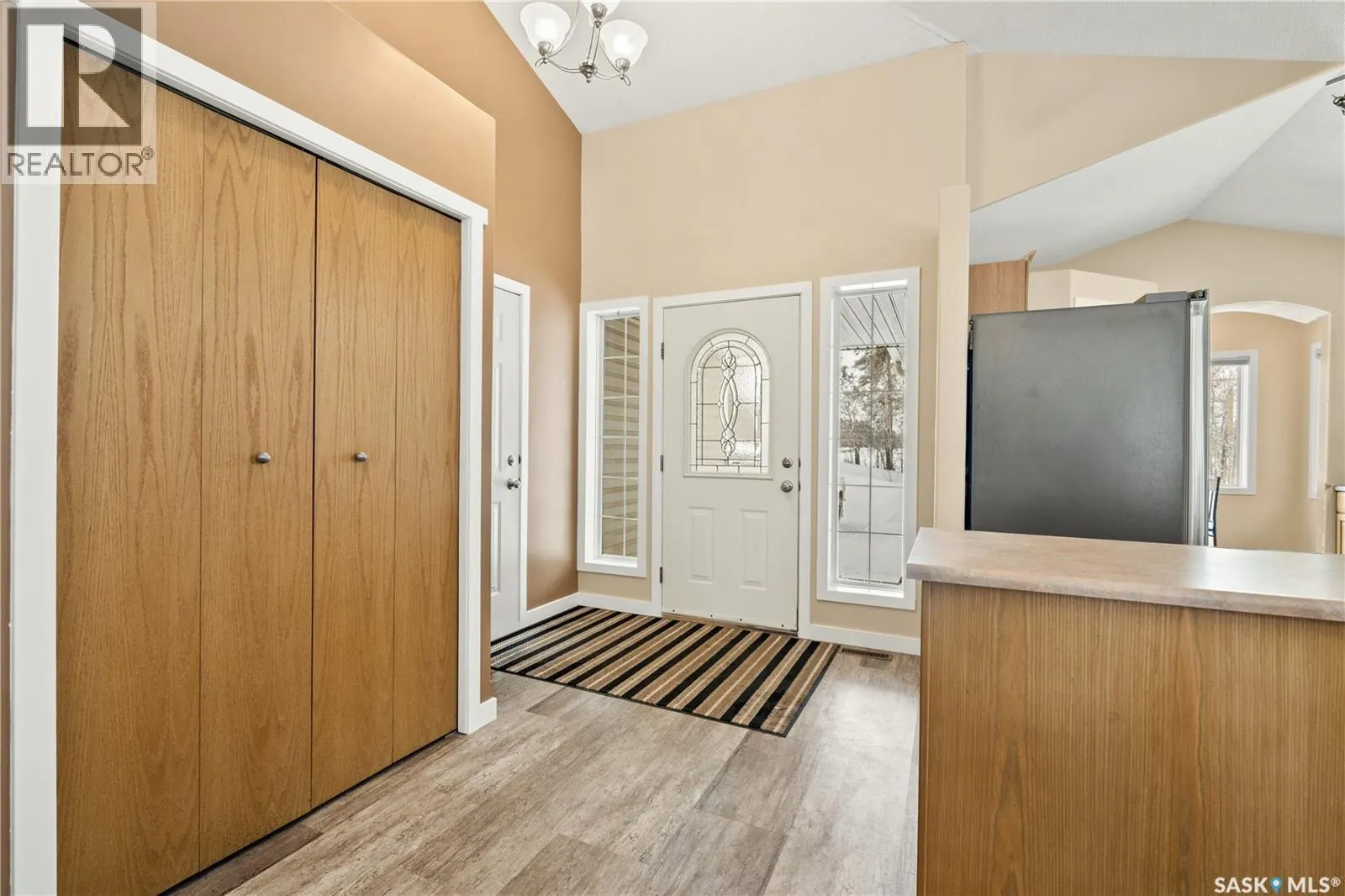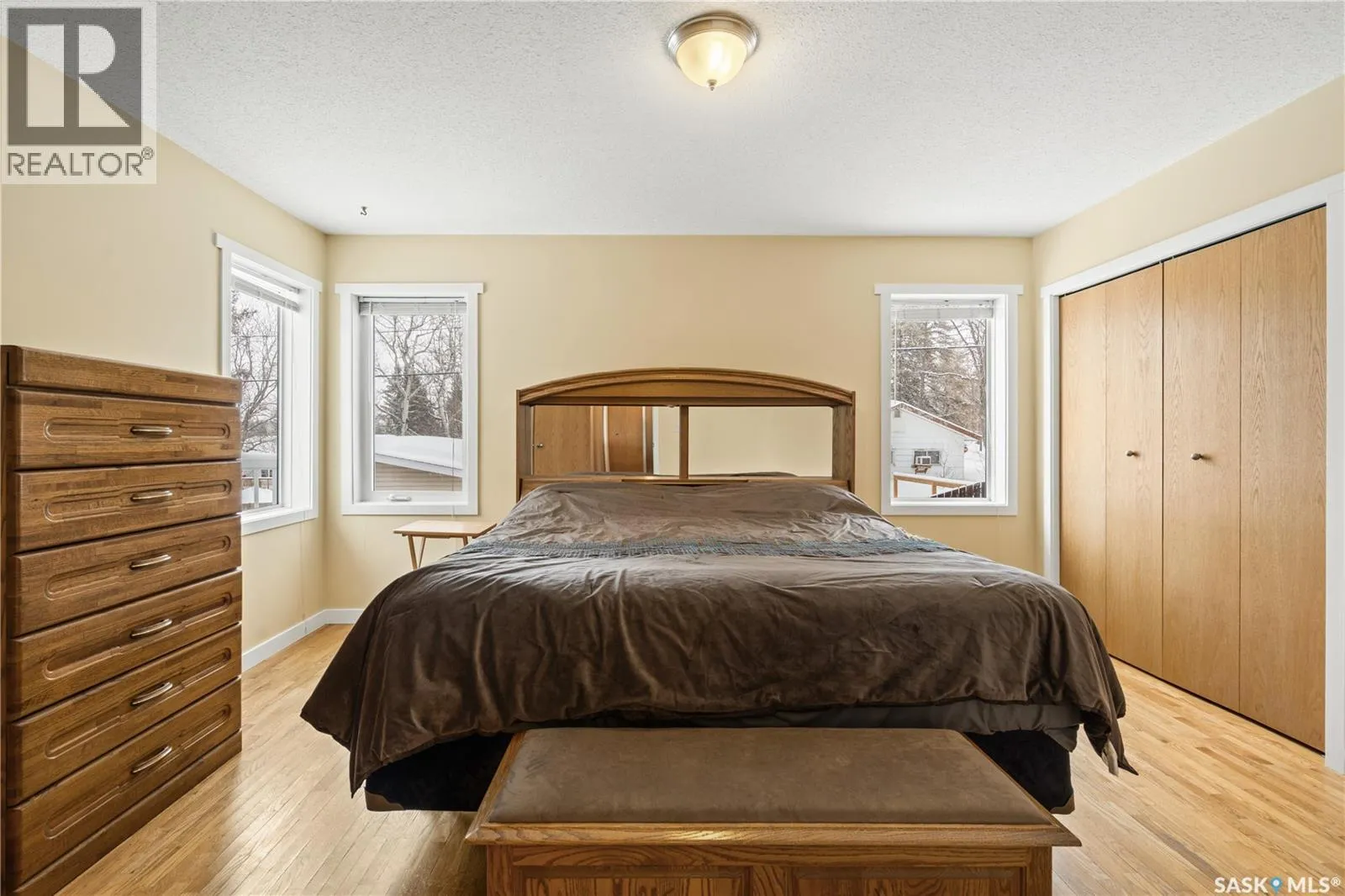 Pride of ownership is evident in this well-maintained home situated on three lots, offering four bedrooms and two bathrooms. With high vaulted ceilings and plenty of windows it fills the space with natural light and creating a bright, inviting atmosphere throughout the open-concept floor plan. The kitchen has new appliances, lots of counter space and a cozy breakfast nook. The main floor includes the primary bedroom, a second bedroom, the main bathroom, and laundry. Hardwood floors and a wood stove add warmth and character with doors that lead out to the large wraparound deck. The fully developed walkout basement provides additional living space with direct access to the backyard. Downstairs youâll find two more bedrooms, a bathroom with dual shower heads, a large rec area, and in-floor heat. The home is also equipped with hot water on demand and secondary laundry hook ups. The double attached garage is heated and includes 220V power. Outside, youâll find a garden area and a cozy fire pit area, perfect for evenings with family and friends. The property also includes a 12x18 shed, perfect size for lawn equipment and tools. This well-cared-for property offers space, comfort, and small-town living in a peaceful setting, conveniently located across from the Kâ12 school. (id:27476)