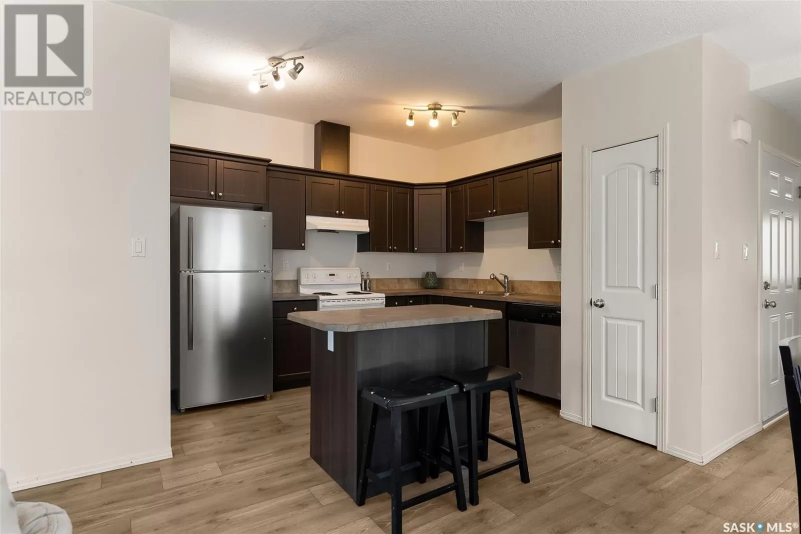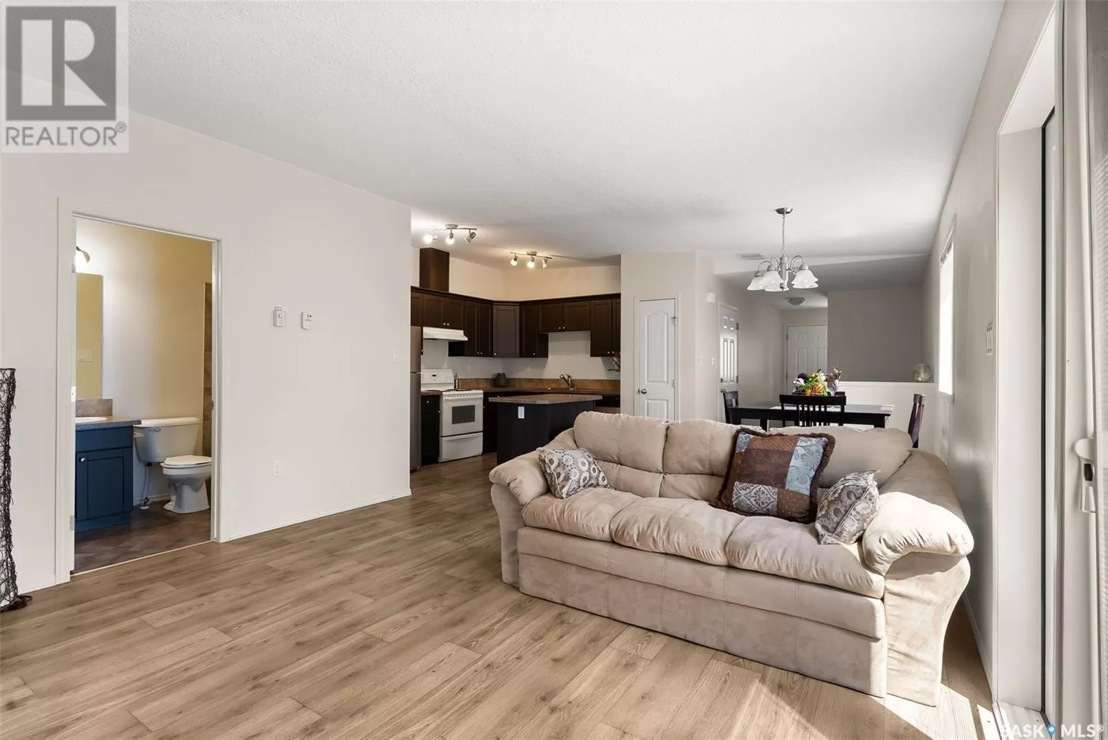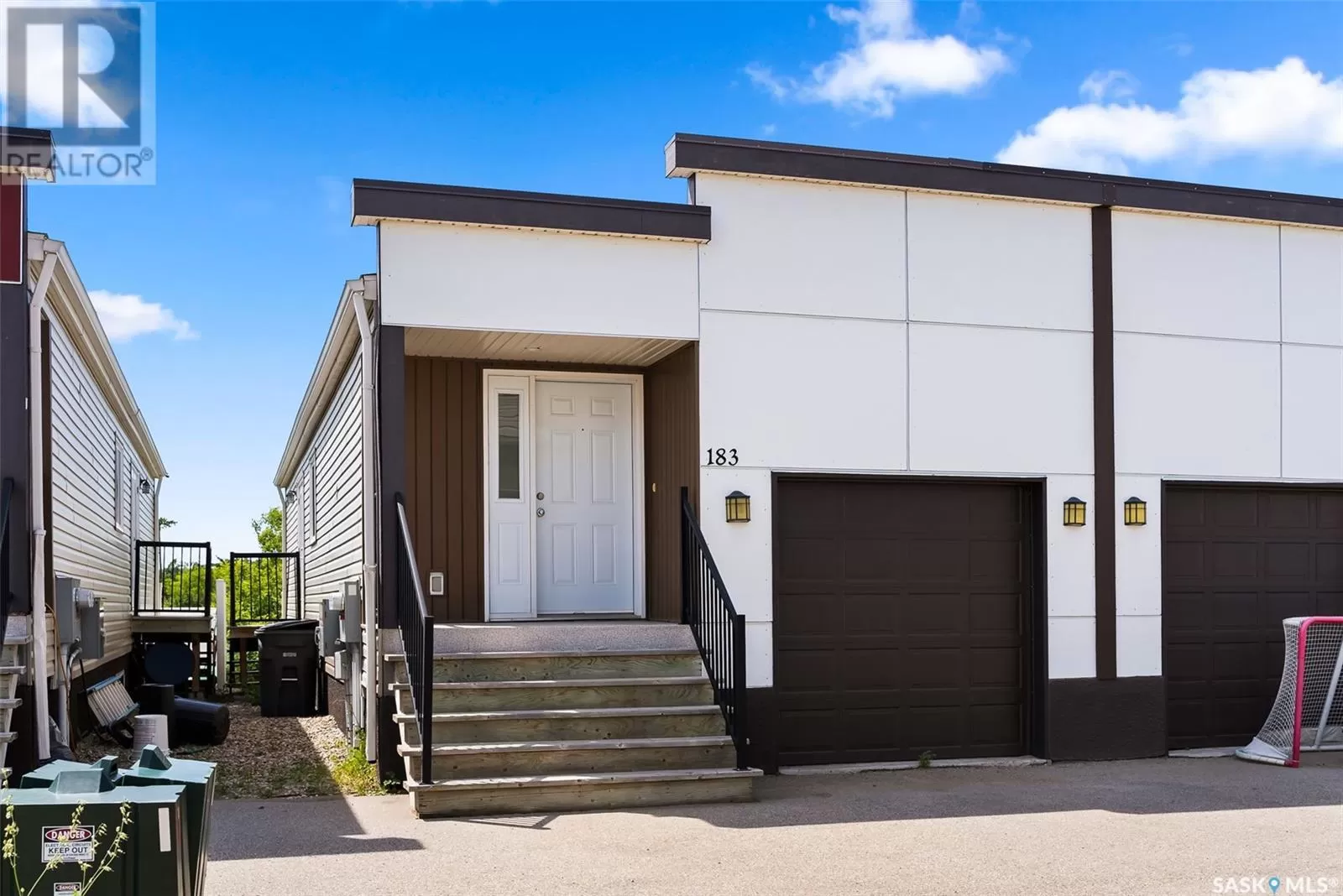 Welcome to 183 Chateau Crescent, a well-maintained semi-detached condo located in the family-friendly community of Pilot Butte. This 892 sqft raised bungalow offers a bright, functional layout with stylish finishes and the convenience of condo livingâall at an affordable price point. The home features a spacious open-concept main living area with neutral tones throughout. Large windows and glass doors flood the space with natural light. The kitchen is designed for everyday function and casual dining, with espresso-toned cabinetry, a central island with seating and a full appliance package including a stainless steel fridge, stove and built-in dishwasher. Adjacent to the kitchen is a cozy dining area and a comfortable living room that makes great use of space. There are two generously sized bedrooms, including a primary with views of mature trees behind the home. The main 4-piece bathroom is clean and functional, while the in-suite laundry offers added convenience with a stacked washer and dryer tucked neatly behind closet doors. Unit includes a convenient attached garage. The basement is open for development, offering future potential for added living space or equity growth. This condo is part of the well-managed Chateau Ridge complex. Located just minutes from east Regina amenities, schools, and parks, this home is perfect for first-time buyers, downsizers, or investors. Enjoy the peace of small-town living with all the benefits of city convenience! (id:27476)