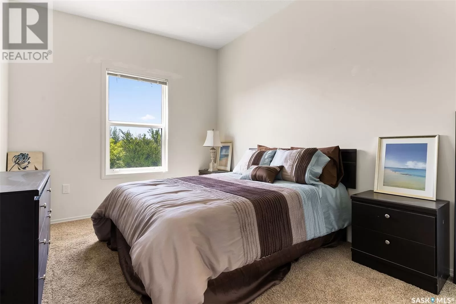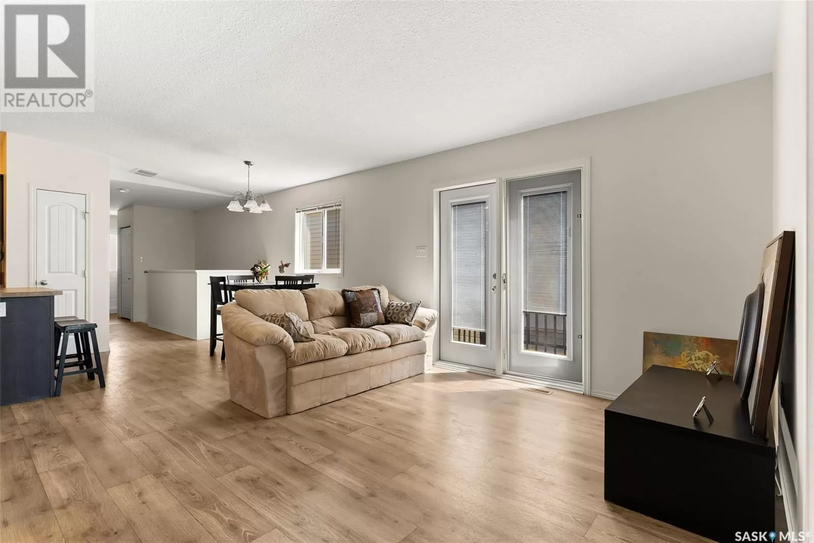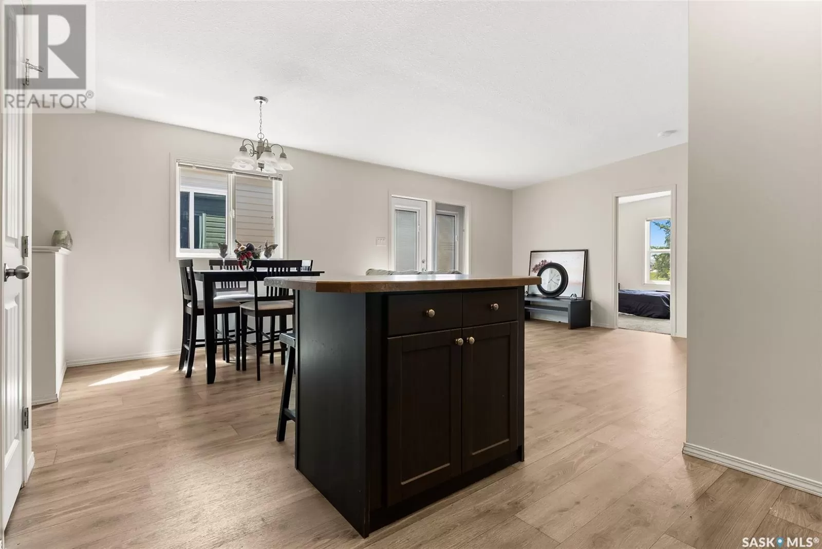 Welcome to 183 Chateau Crescent, a well-maintained semi-detached condo located in the family-friendly community of Pilot Butte. This 892 sqft raised bungalow offers a bright, functional layout with stylish finishes and the convenience of condo livingâall at an affordable price point. The home features a spacious open-concept main living area with neutral tones throughout. Large windows and glass doors flood the space with natural light. The kitchen is designed for everyday function and casual dining, with espresso-toned cabinetry, a central island with seating and a full appliance package including a stainless steel fridge, stove and built-in dishwasher. Adjacent to the kitchen is a cozy dining area and a comfortable living room that makes great use of space. There are two generously sized bedrooms, including a primary with views of mature trees behind the home. The main 4-piece bathroom is clean and functional, while the in-suite laundry offers added convenience with a stacked washer and dryer tucked neatly behind closet doors. Unit includes a convenient attached garage. The basement is open for development, offering future potential for added living space or equity growth. This condo is part of the well-managed Chateau Ridge complex. Located just minutes from east Regina amenities, schools, and parks, this home is perfect for first-time buyers, downsizers, or investors. Enjoy the peace of small-town living with all the benefits of city convenience! (id:27476)